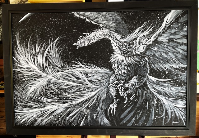 現代水墨画家 絵師白道 「白鳳凰」 直筆作品 真筆証明書付 高級額装 /Hakudouroom. ART 絵 絵画 朱雀 鳳凰 送料無料♪