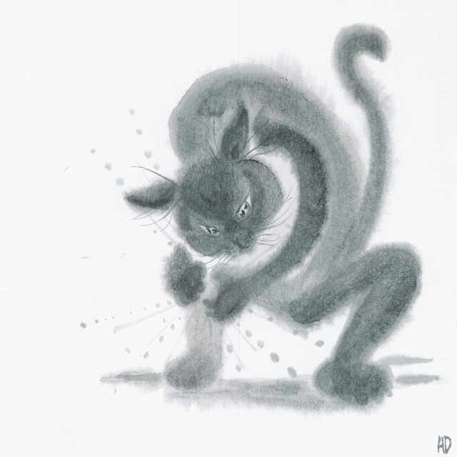 現代水墨画家 絵師白道 「106 ミサイル」(水墨画) 直筆作品 証明書カード付 猫 絵 絵画 現代アート