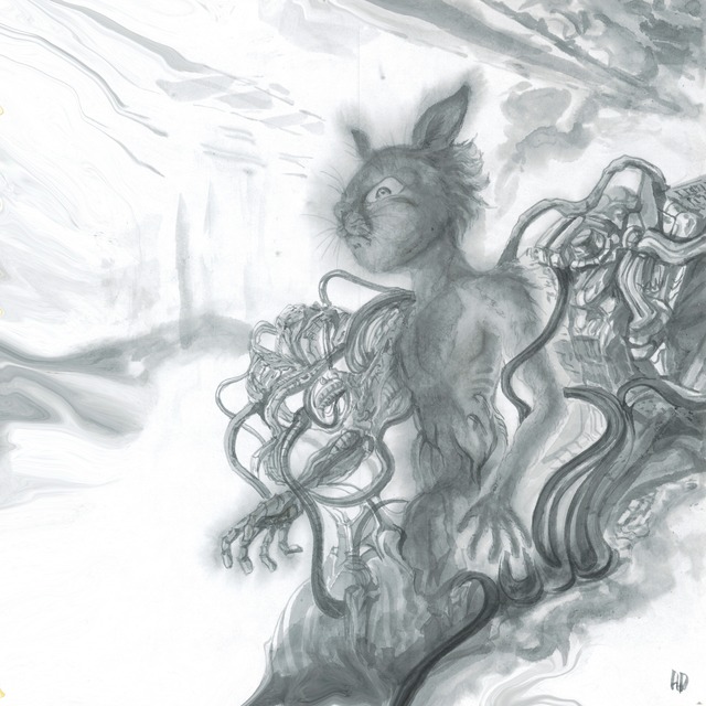 現代水墨画家 絵師白道 「106計画 うさぎねこ 左手」水墨画 直筆作品 証明書カード付 うさぎ ねこ 掛軸 絵 絵画 現代アート