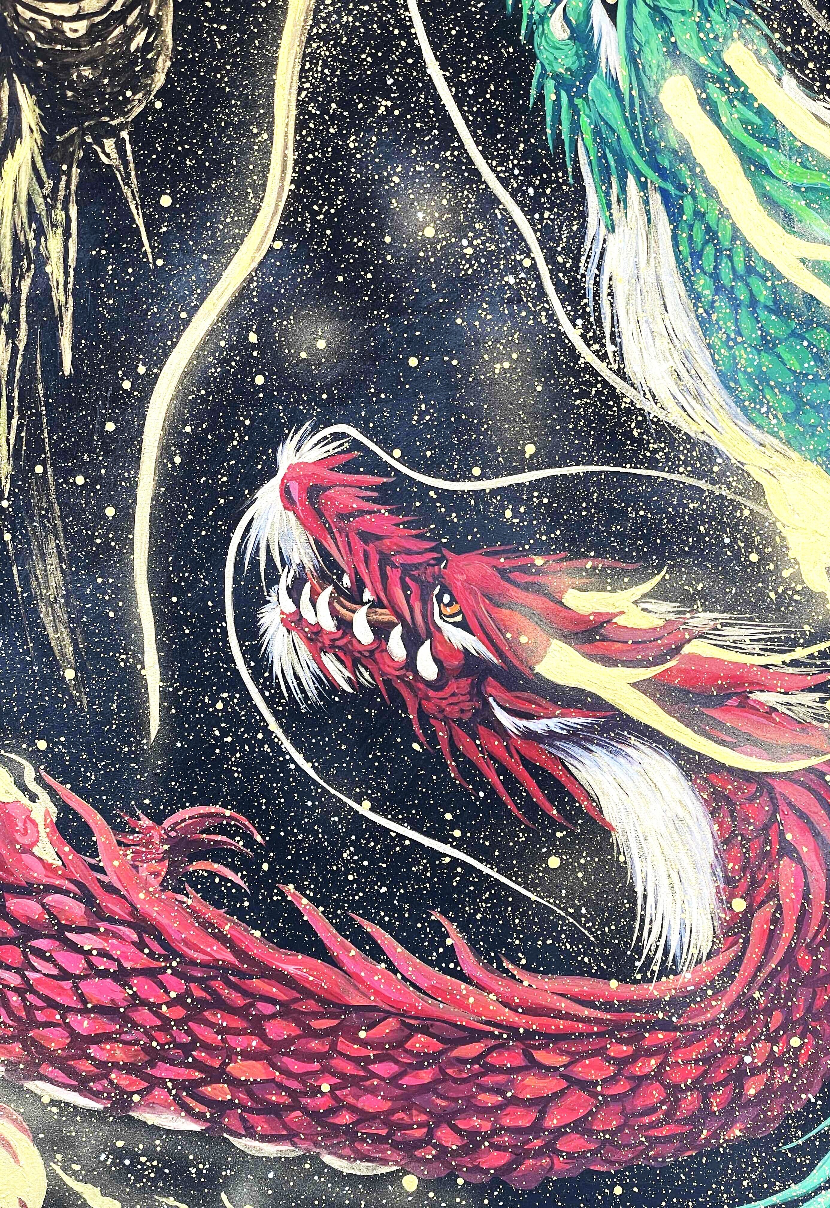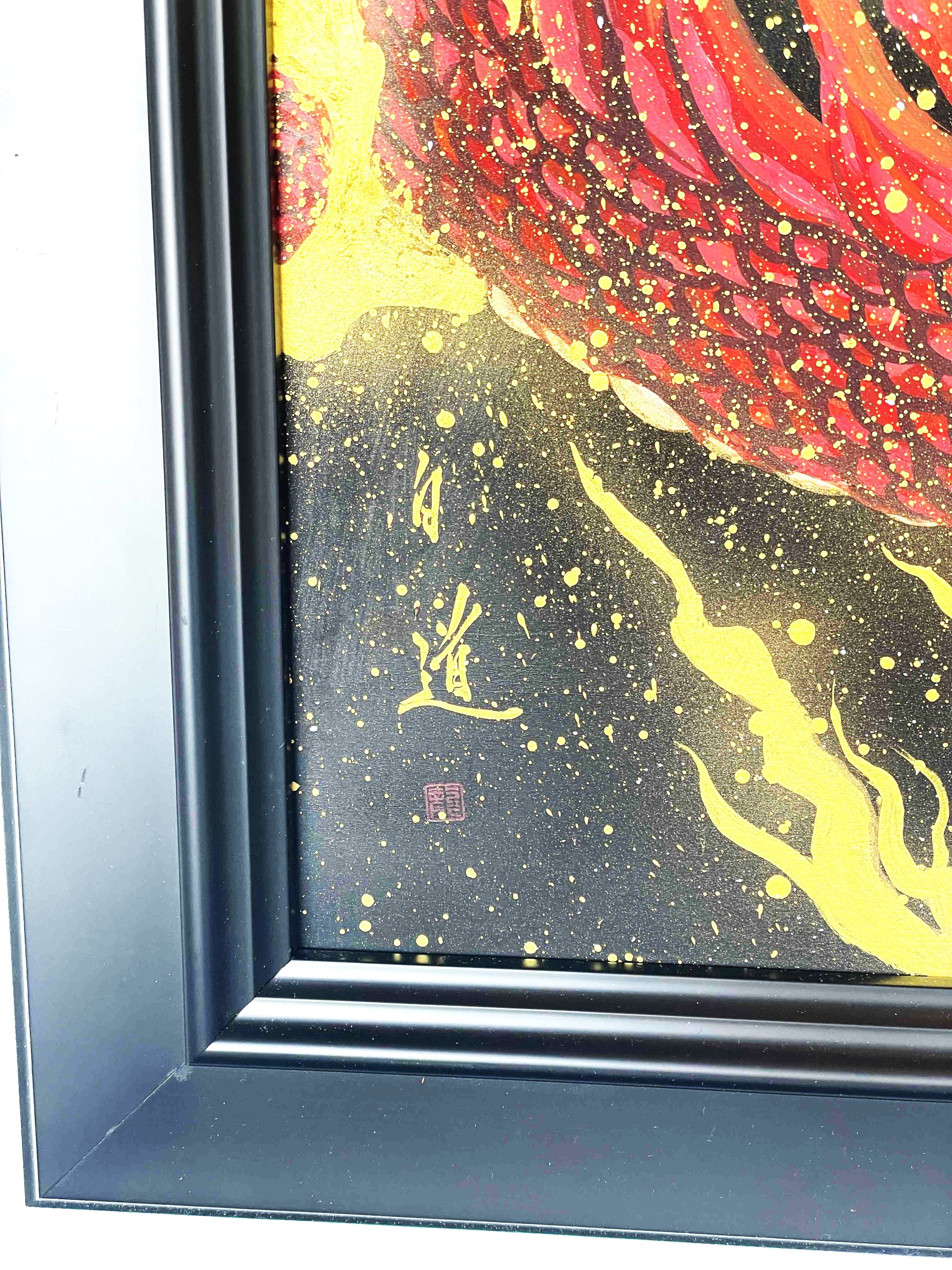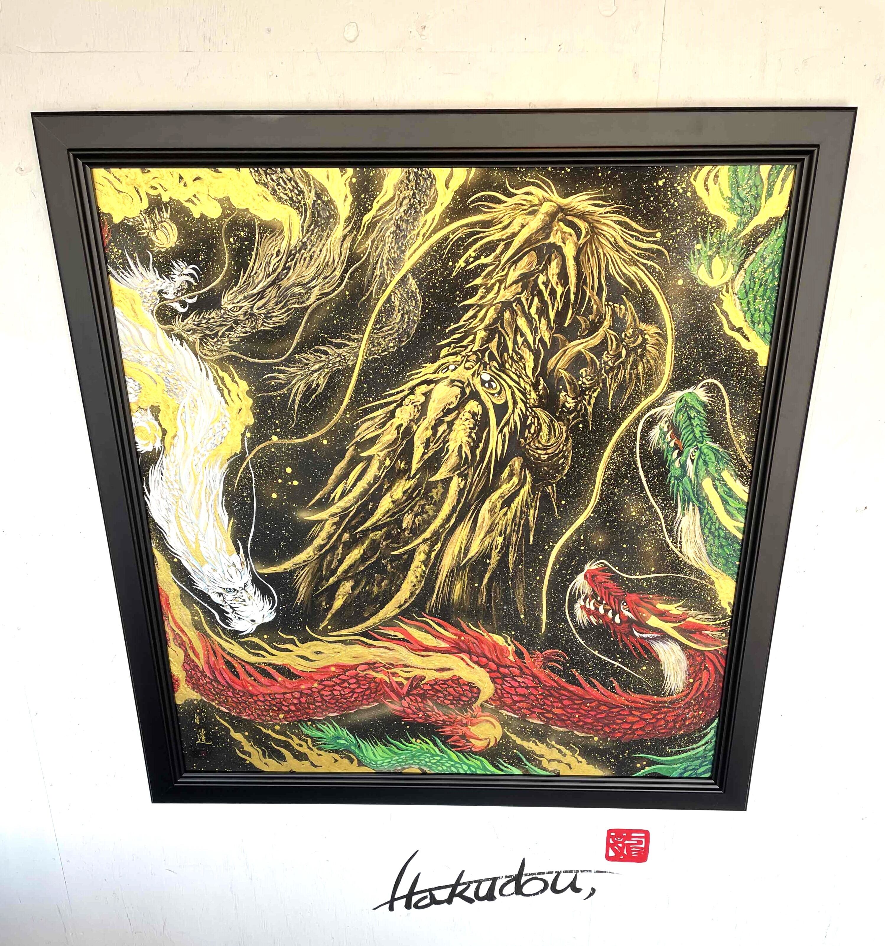 現代水墨画家 絵師白道 「五大龍王神」 直筆作品 証明書カード付 龍 現代アート