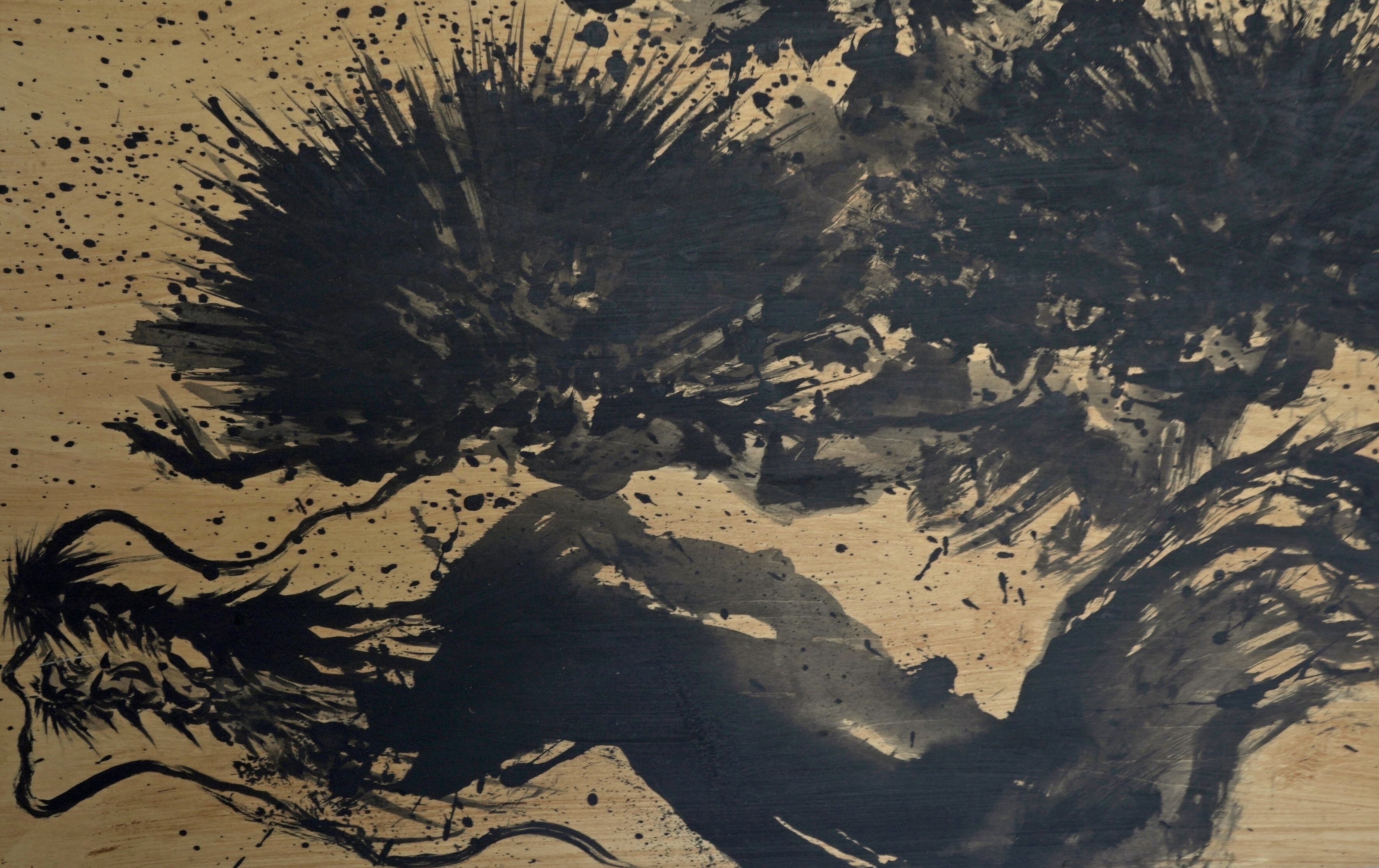 また素材は木に描いていくことで墨の味わいの奥深さを追求した作品になっております。