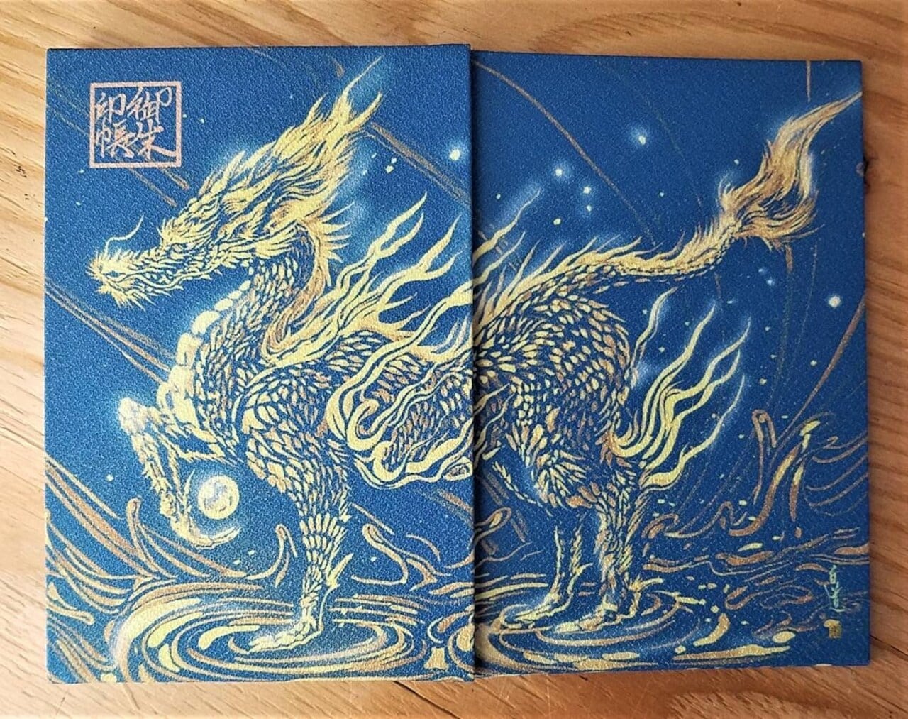 ☆「御朱印帳 金の麒麟」 麒麟 龍 御朱印帳 絵画 直筆白道札付き ビニールカバー付き!☆Hakudouroom☆絵師白道 !送料無料!!