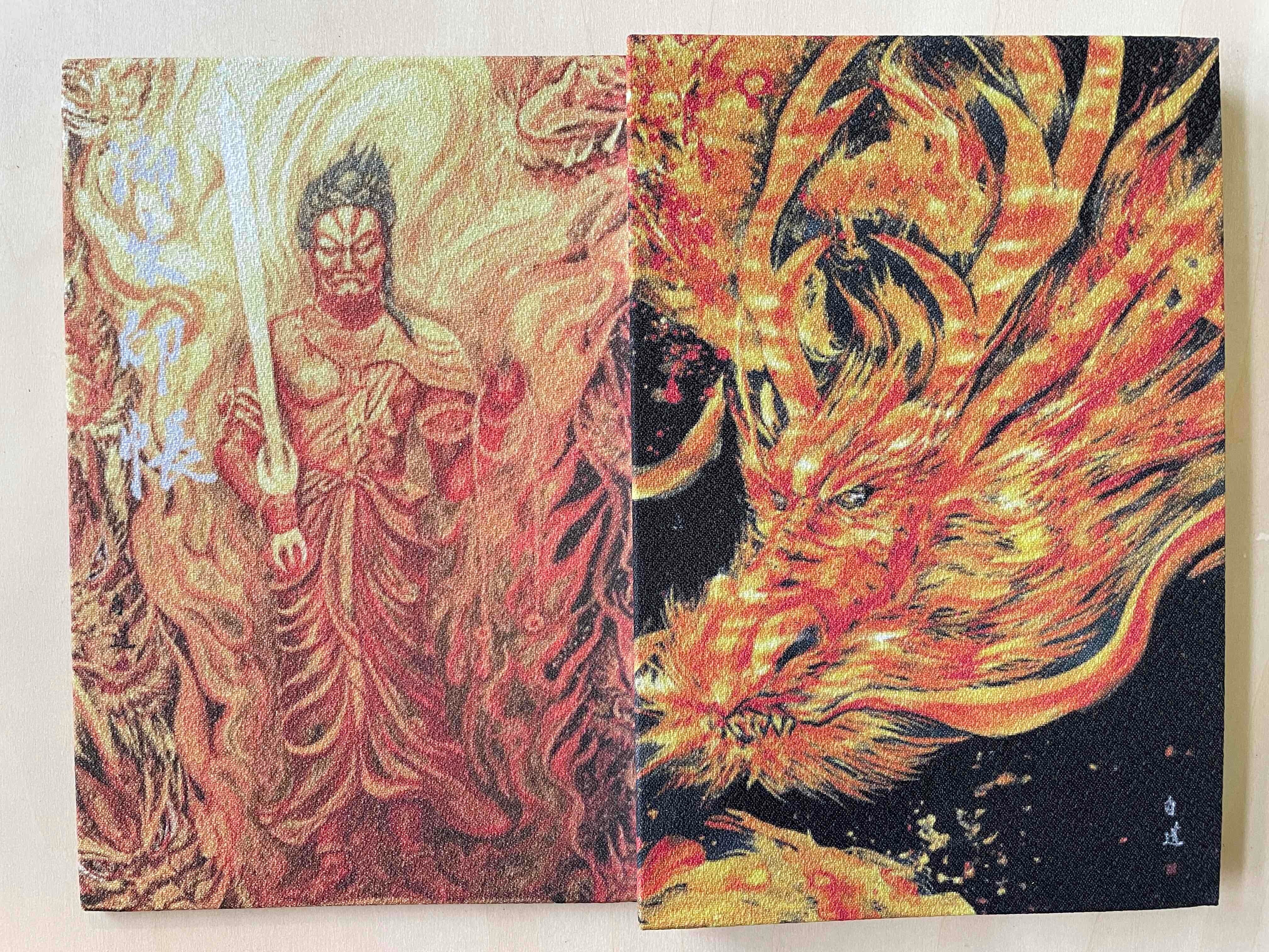 現代水墨画家 絵師白道 御朱印帳 「不動明王と八大竜王」  直筆御朱印付き ちりめん ビニールカバー付き 龍 絵 絵画 現代アート