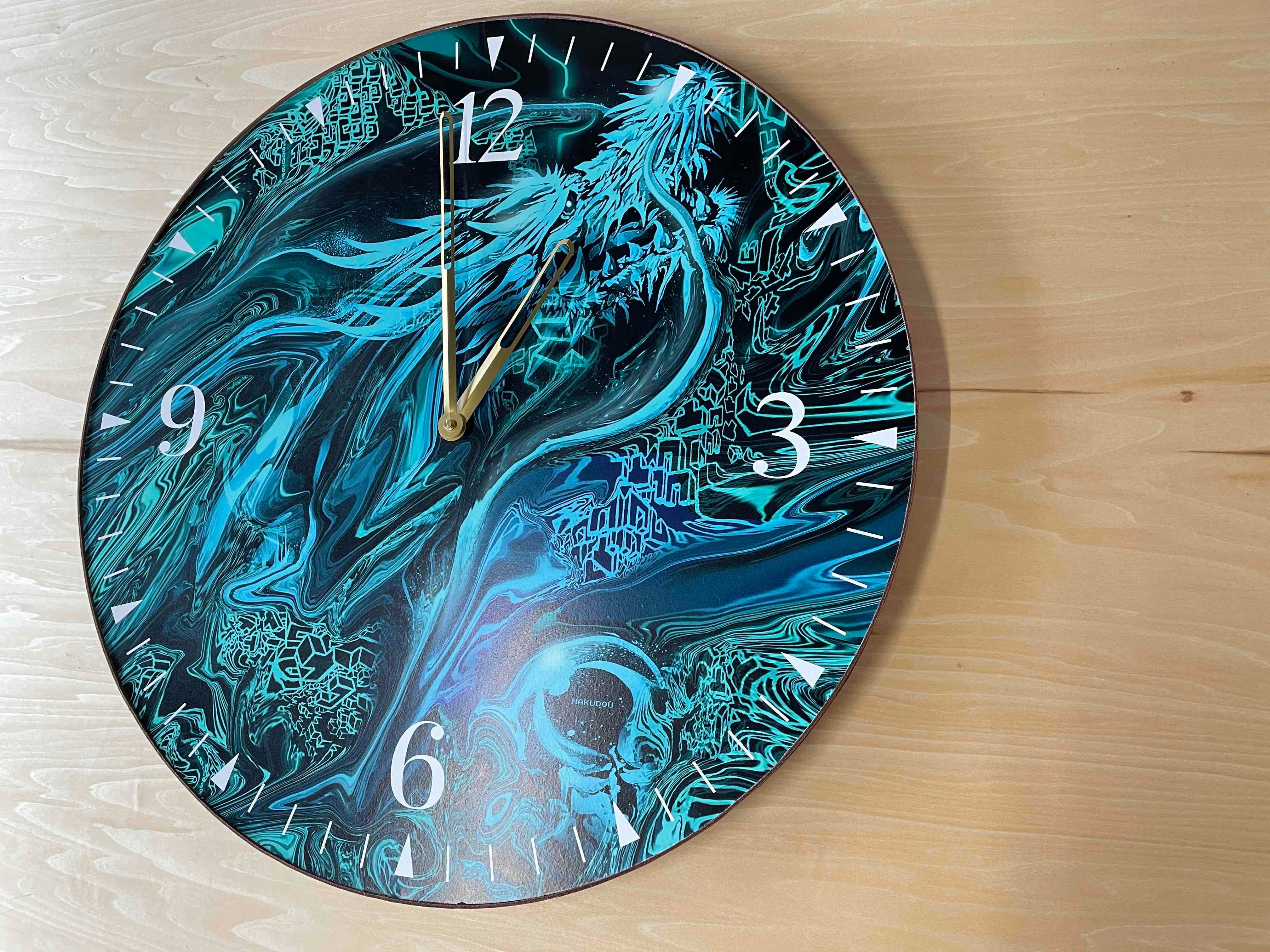 現代水墨画家 絵師白道 「ARTclock BuleDragon 」時計 現代アート グッズ インテリア