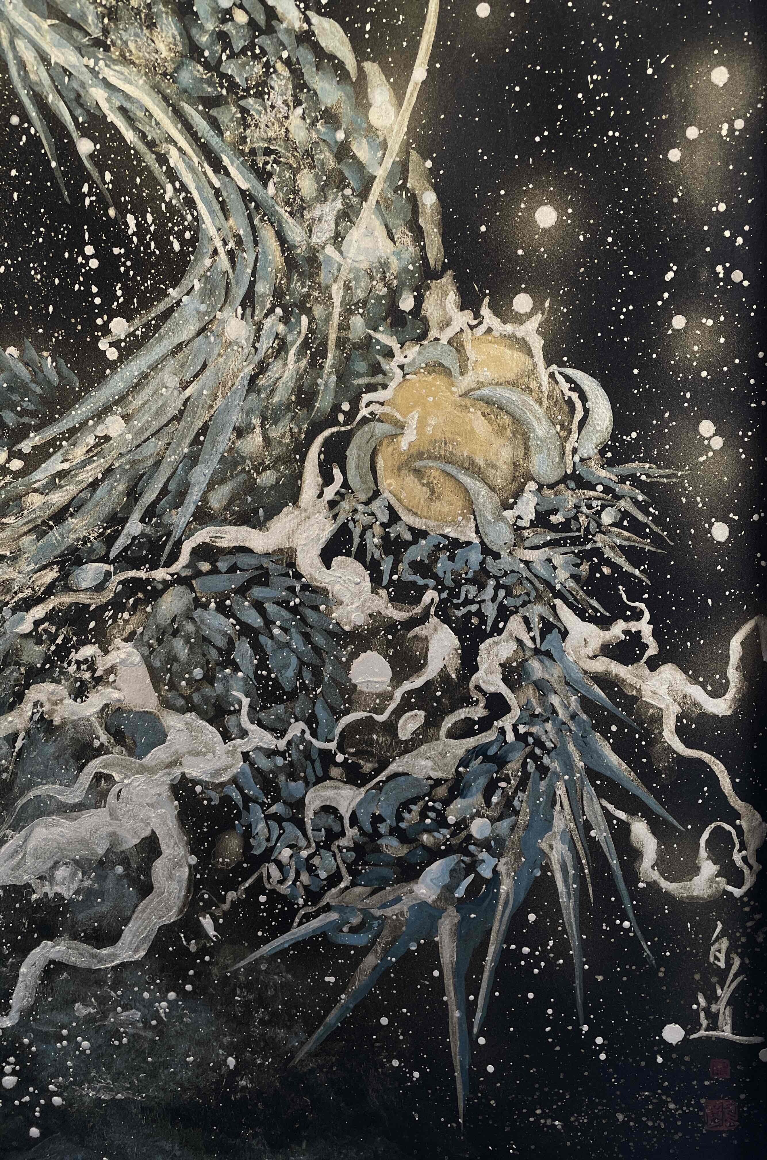 現代水墨画家 絵師白道 「昇天水龍」 直筆作品 証明書カード付 龍 絵 絵画 現代アート
