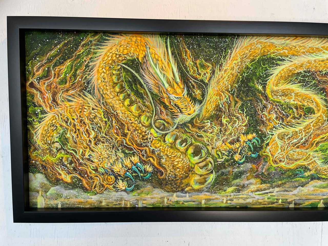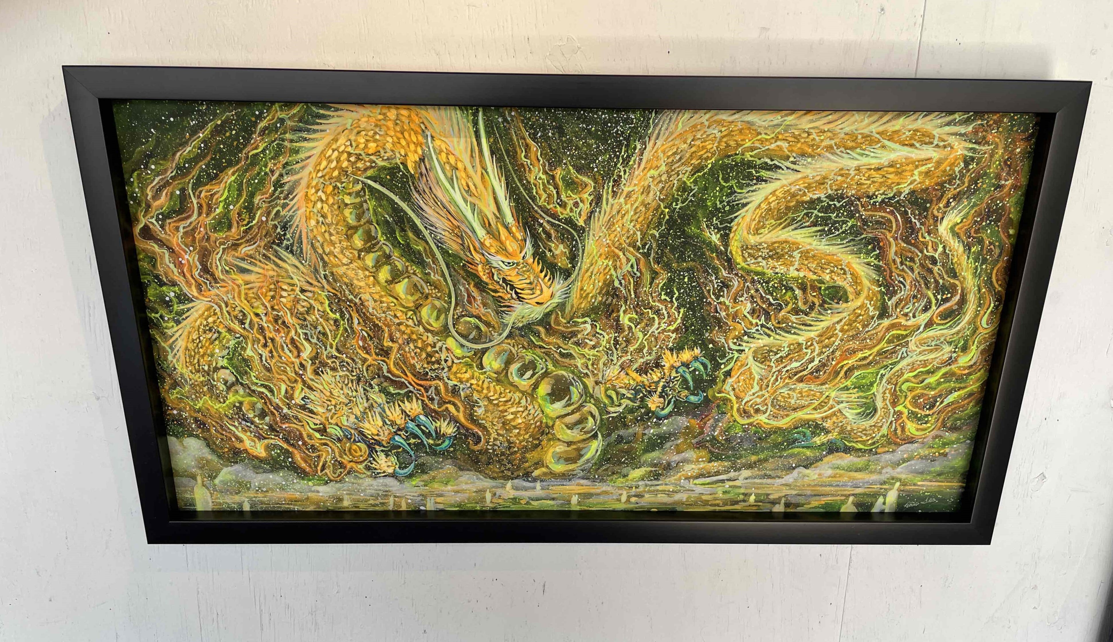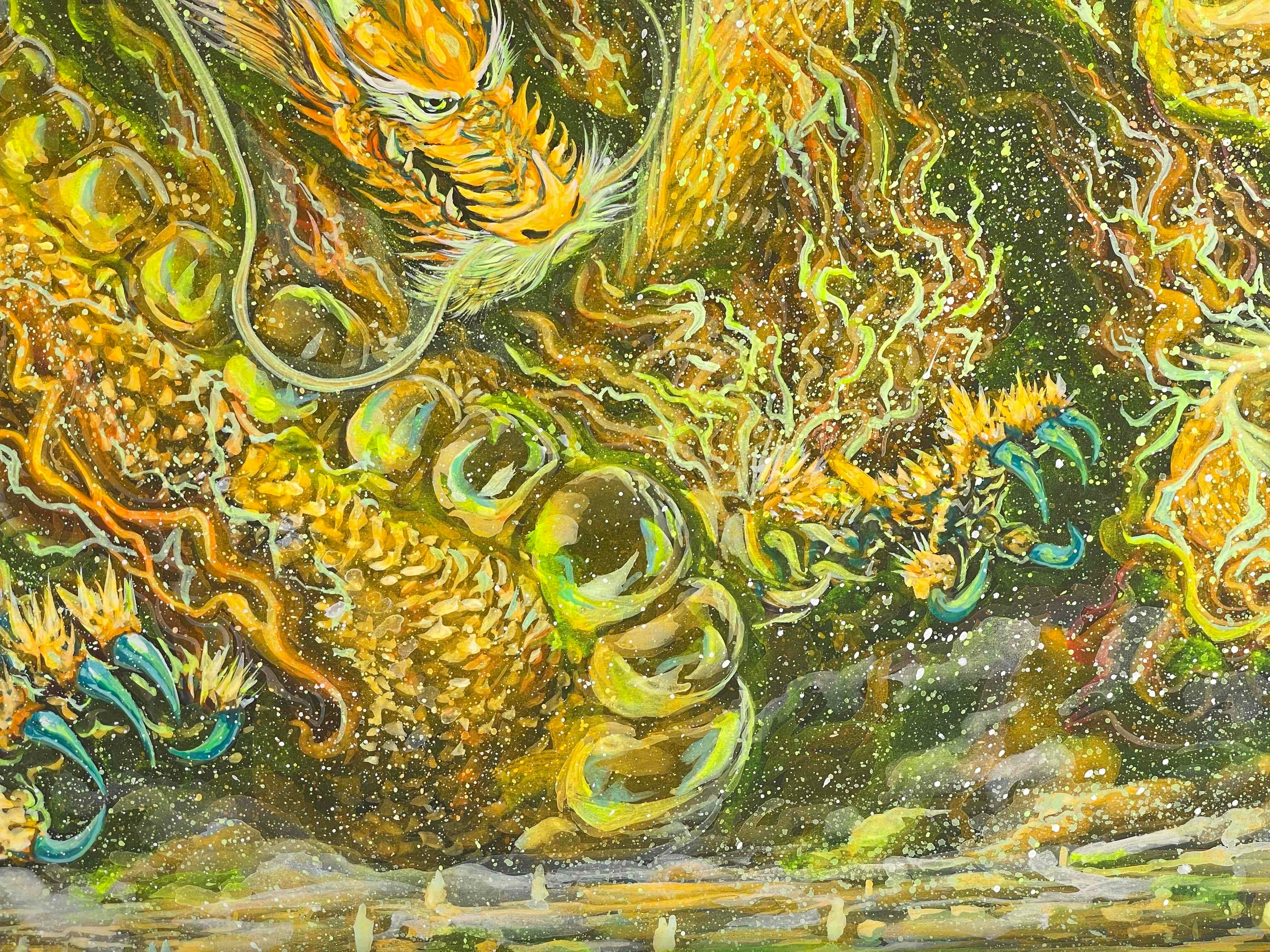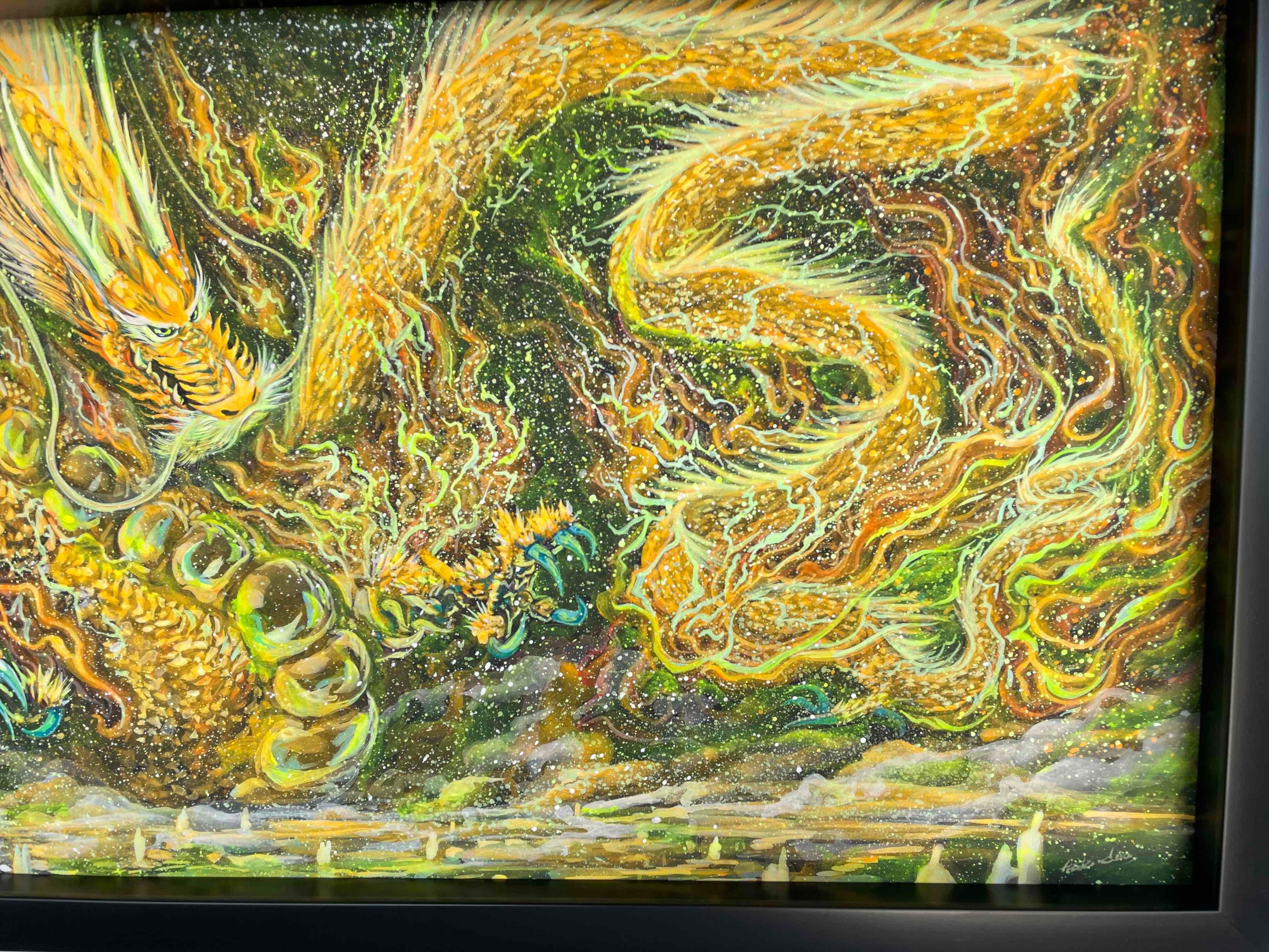 現代水墨画家 絵師白道 「大宇宙の長 朱龍」 直筆作品 証明書カード付 龍 絵 絵画 現代アート