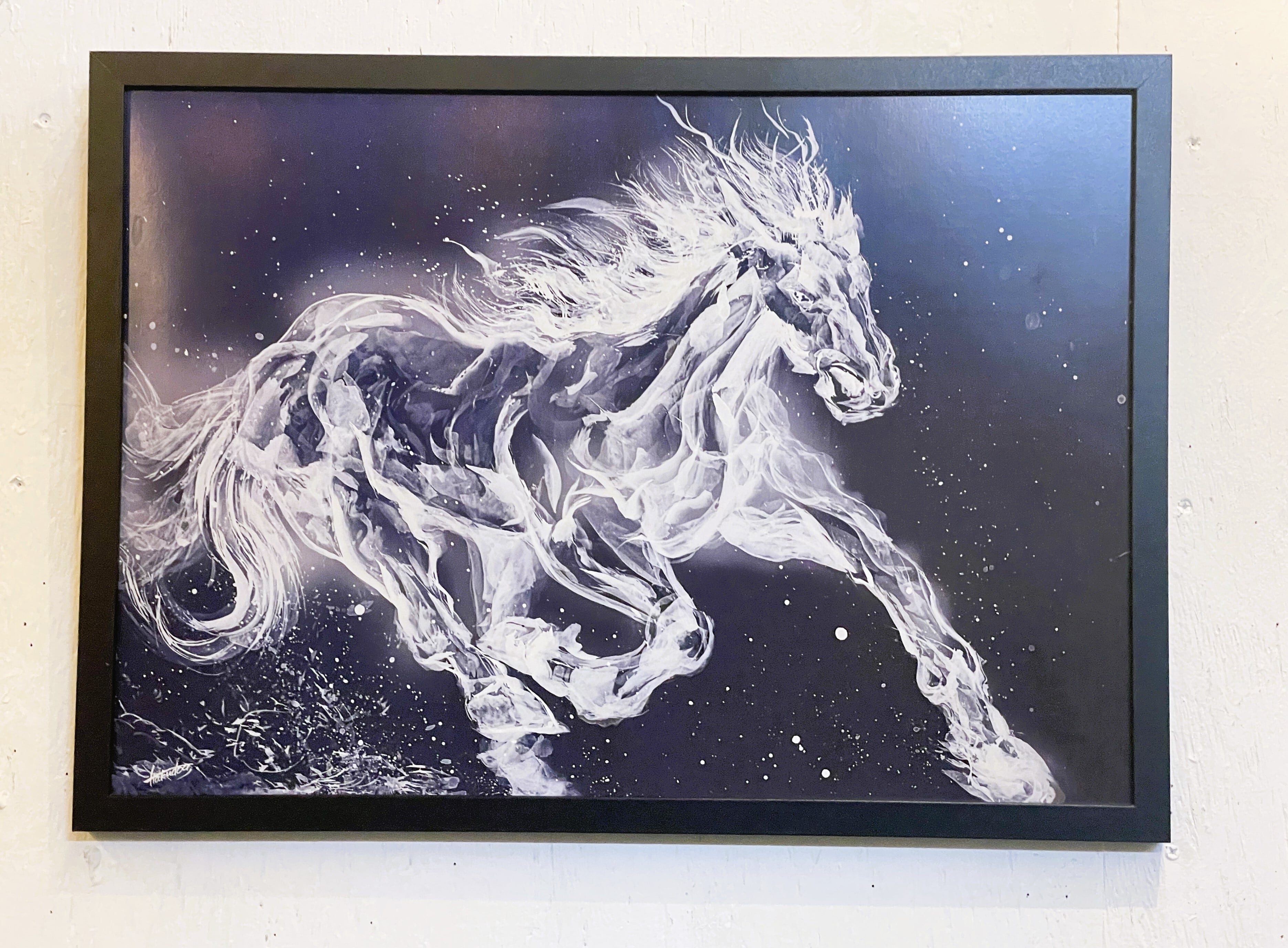 現代水墨画家 絵師白道 「龍馬」(白光) (複製画)馬 絵 絵画 伝統芸術 現代芸術 融合