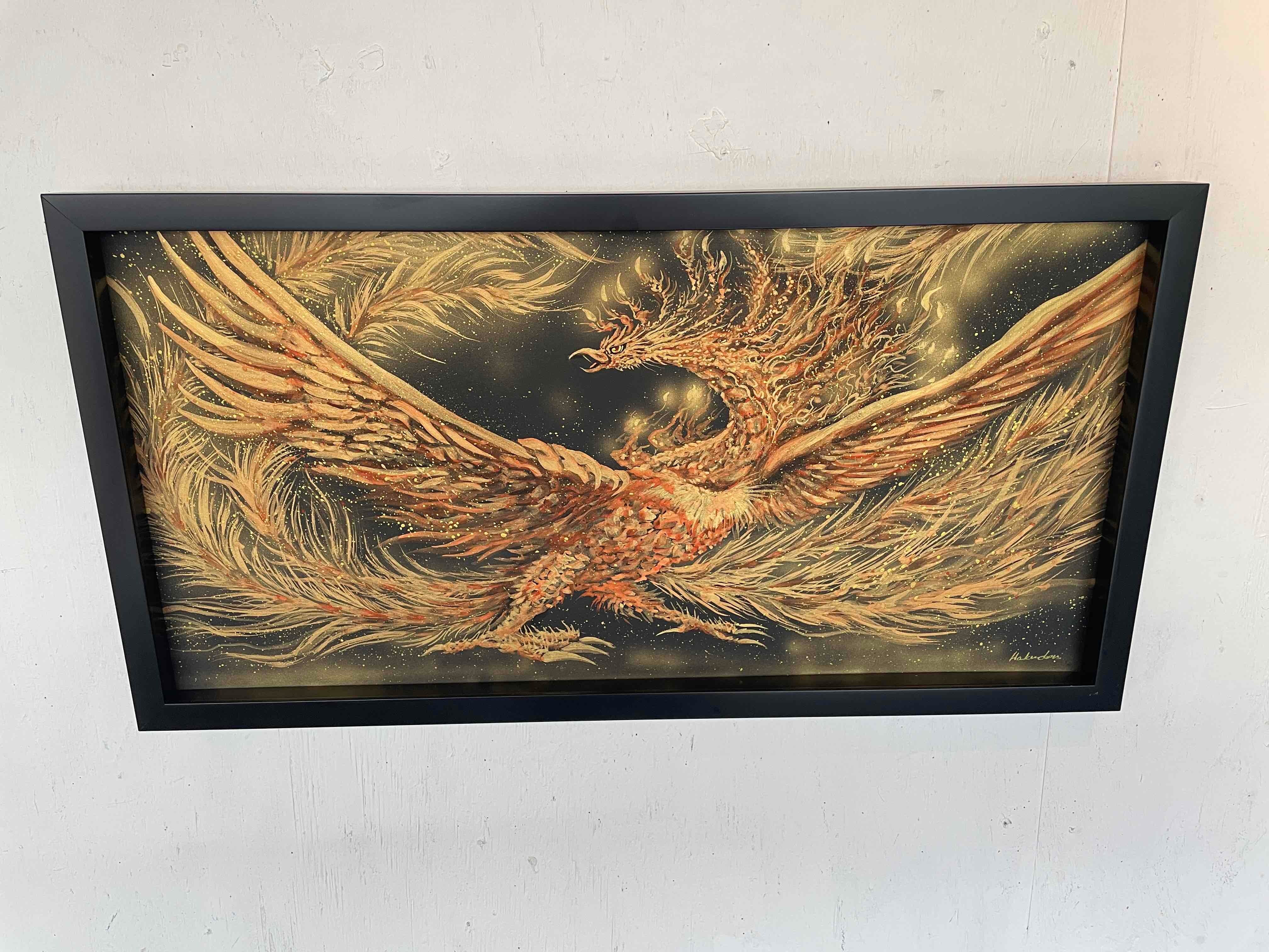 現代芸術家 絵師白道 「新生の朱雀」直筆作品 真筆証明書付 高級額装 箱あり / Hakudouroom. ART 絵 絵画 朱雀 鳳凰