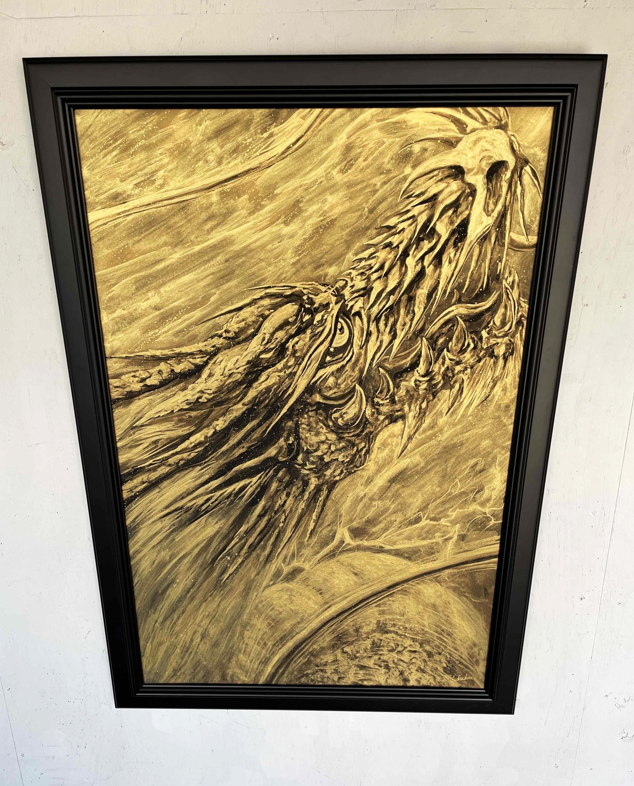 現代水墨画家 絵師白道「金龍 GOLDEN DRAGON」(直筆作品){直筆証明書付} ART☆Hakudouroom☆絵師白道 龍 絵 絵画