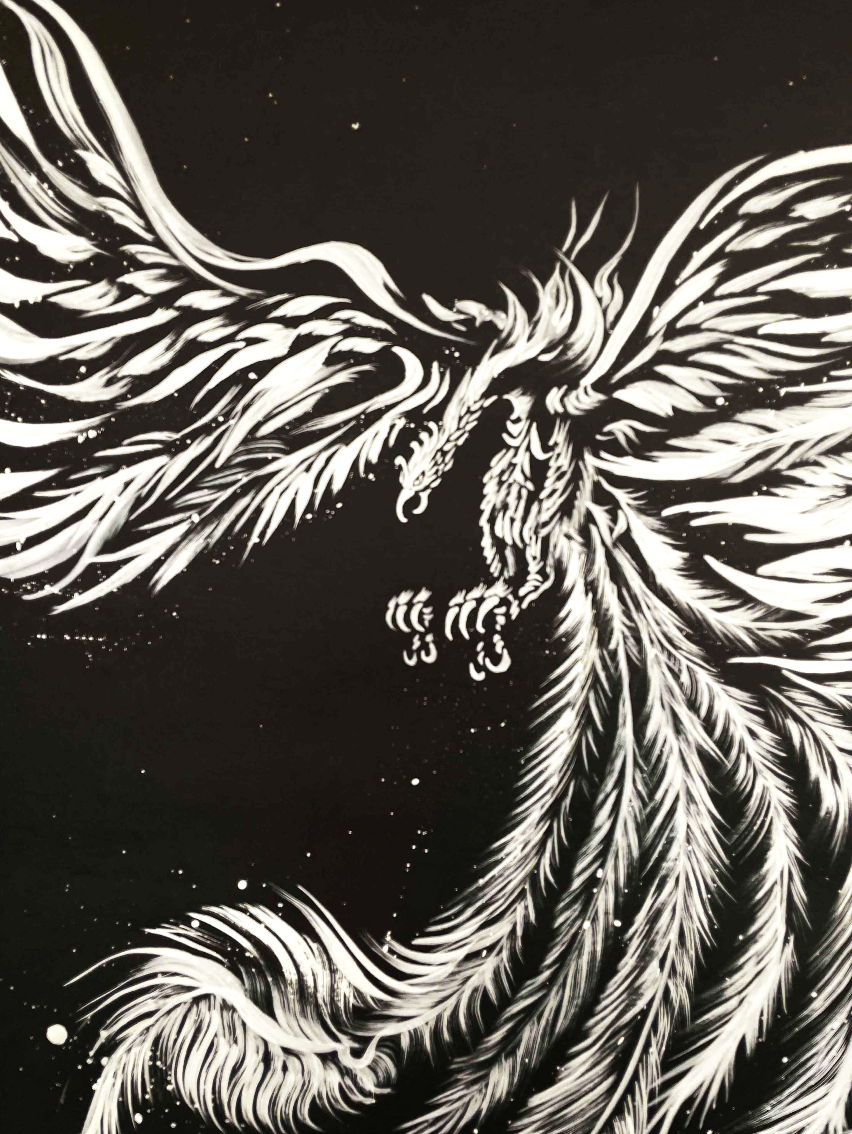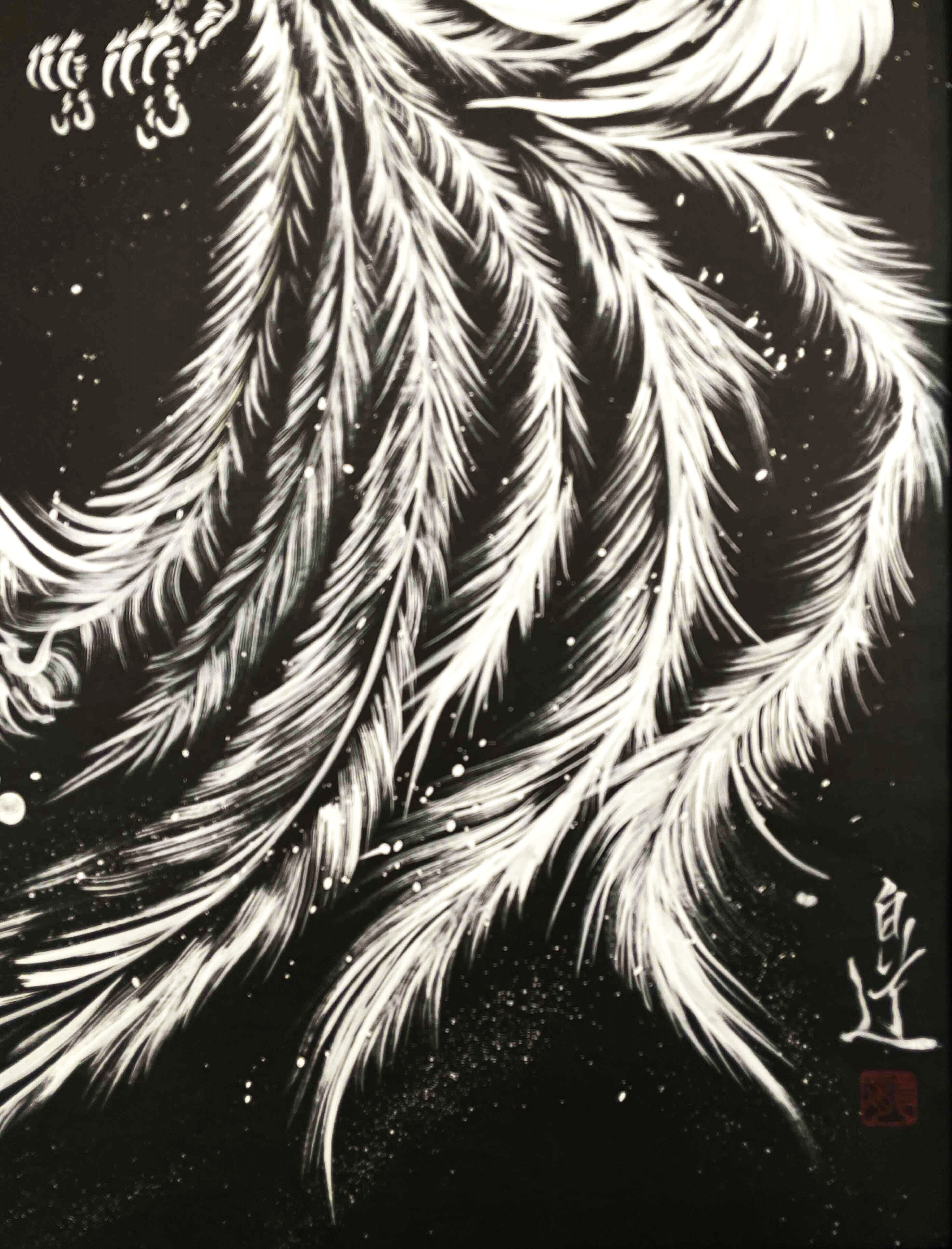 現代水墨画家 絵師白道 「白鳳凰」 直筆作品 証明書カード付 鳥 鳳凰 朱雀 フェニックス 不死鳥 絵 絵画 現代アート