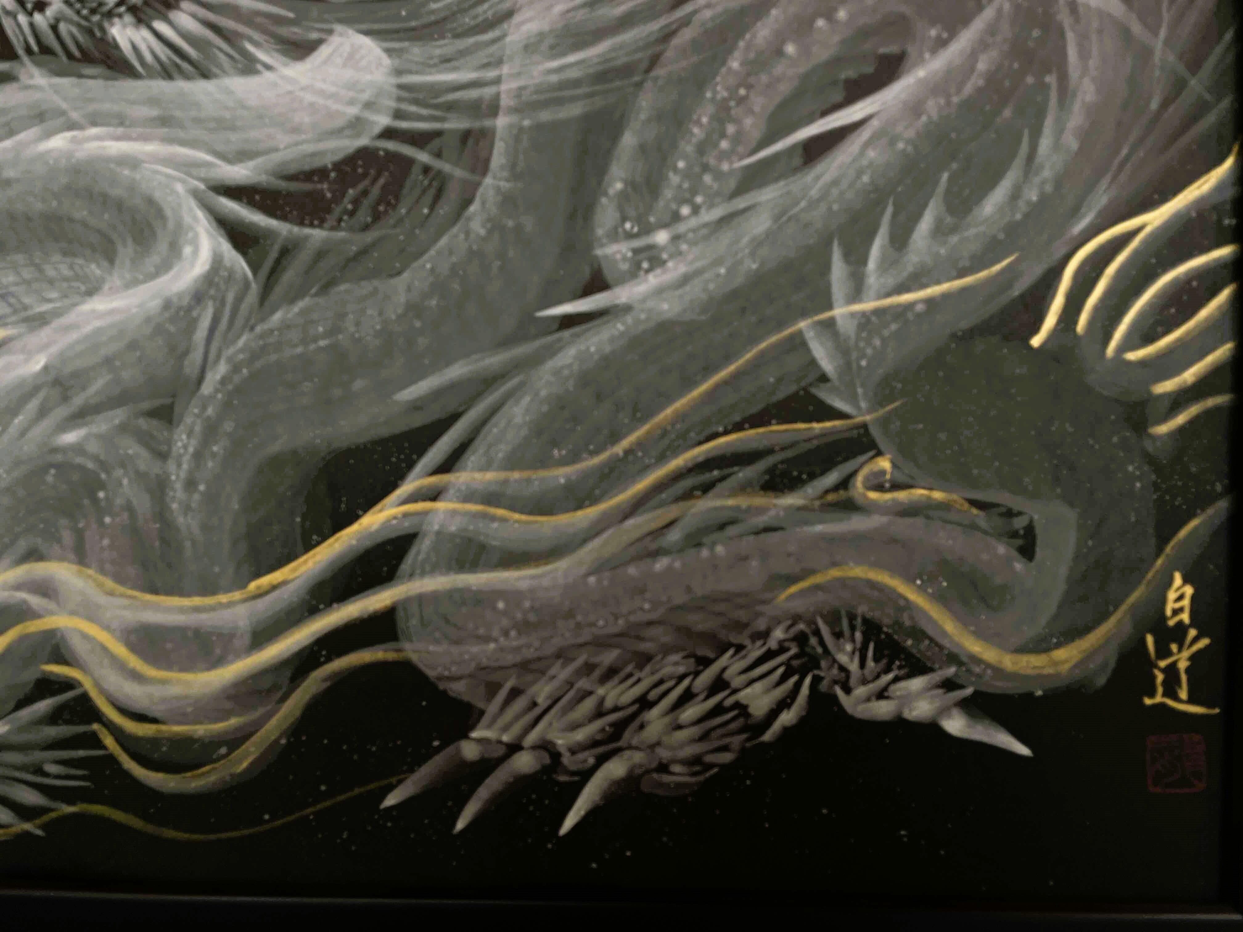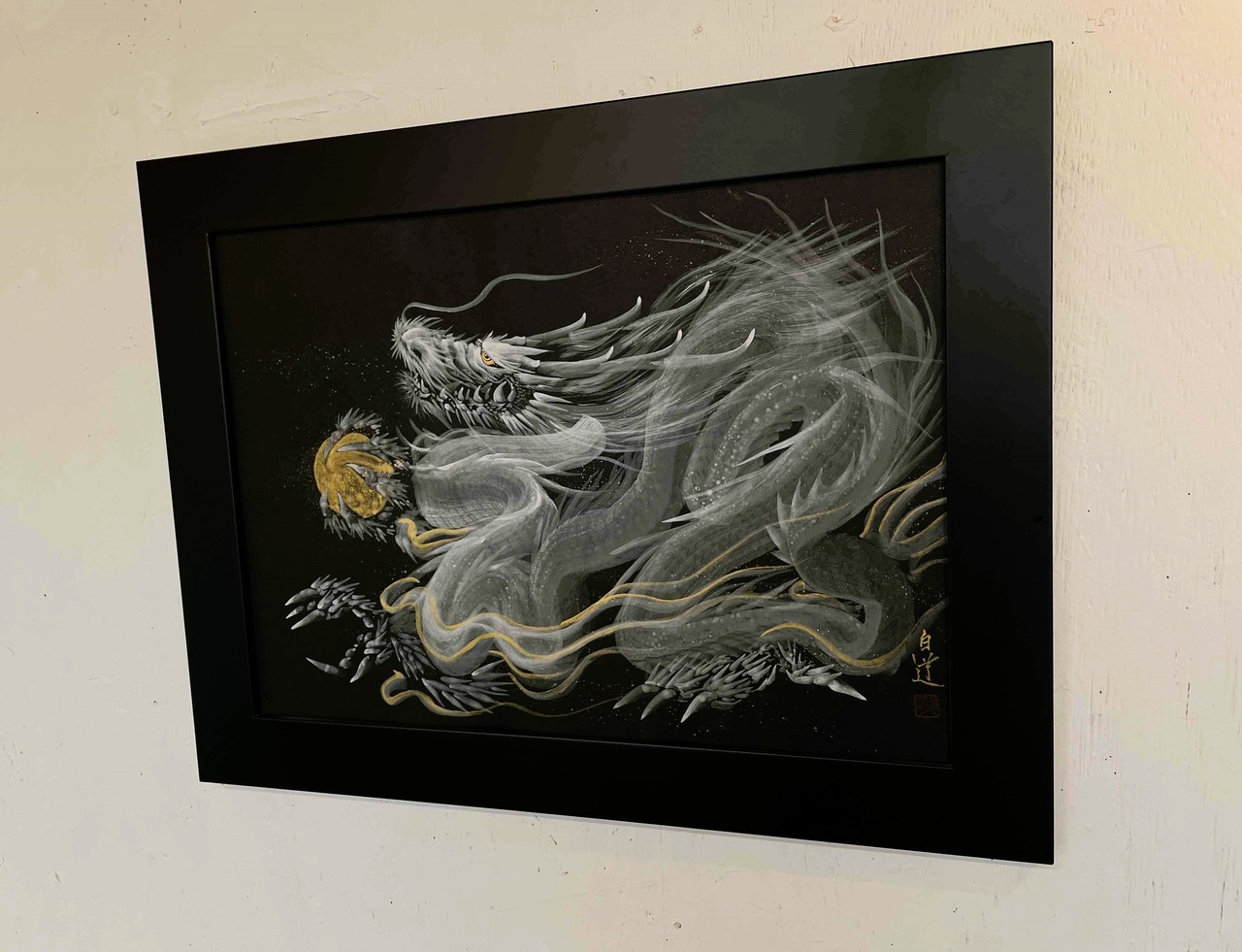 現代水墨画家☆絵師白道 「一筆白福龍」01(直筆作品)真筆証明書 高級額装 /ART Hakudou 絵 絵画 龍 一筆龍 送料無料♪