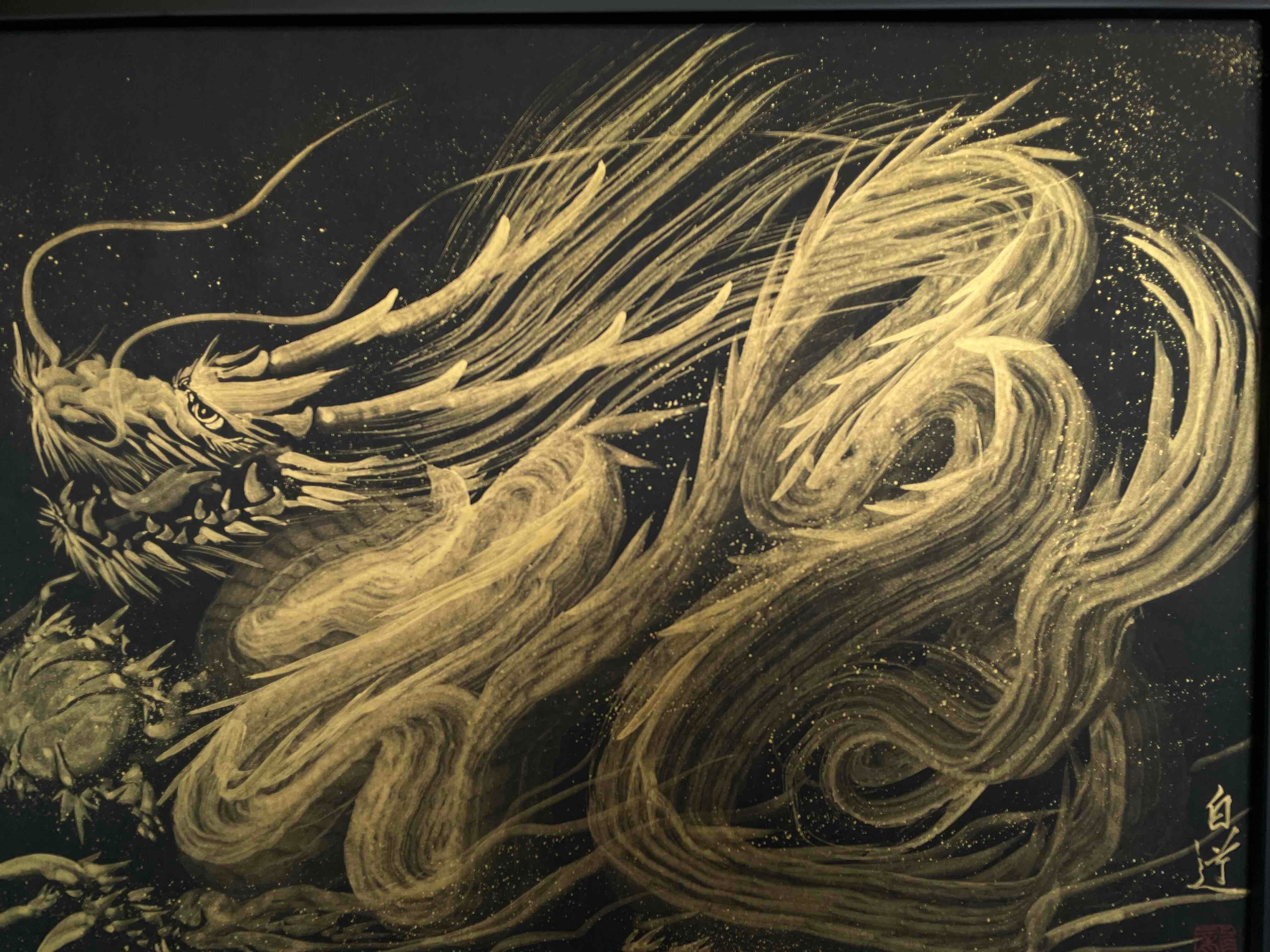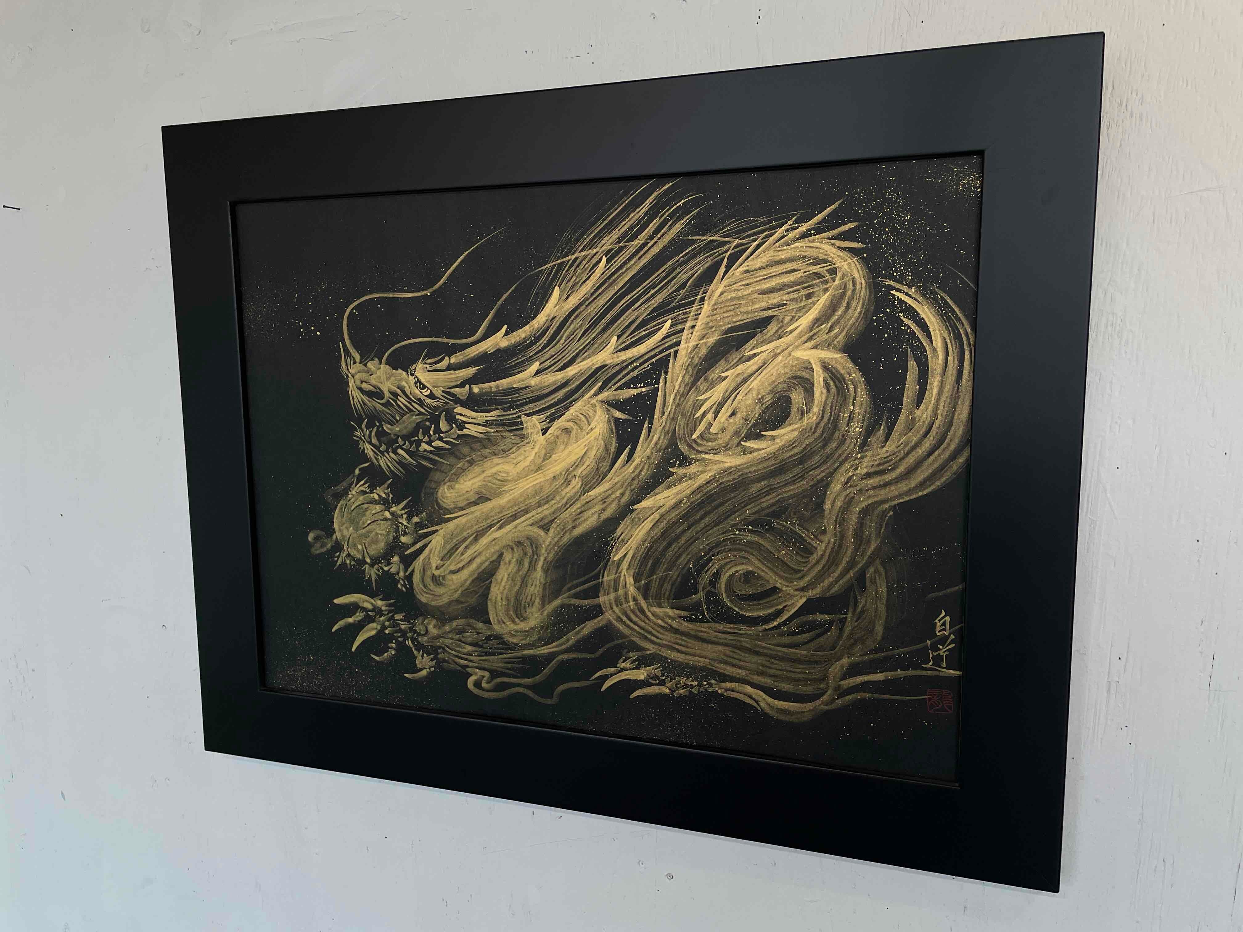 現代水墨画家☆絵師白道 「一筆金福龍」01(直筆作品)真筆証明書 高級額装 /ART Hakudou 絵 絵画 龍 一筆龍 送料無料♪