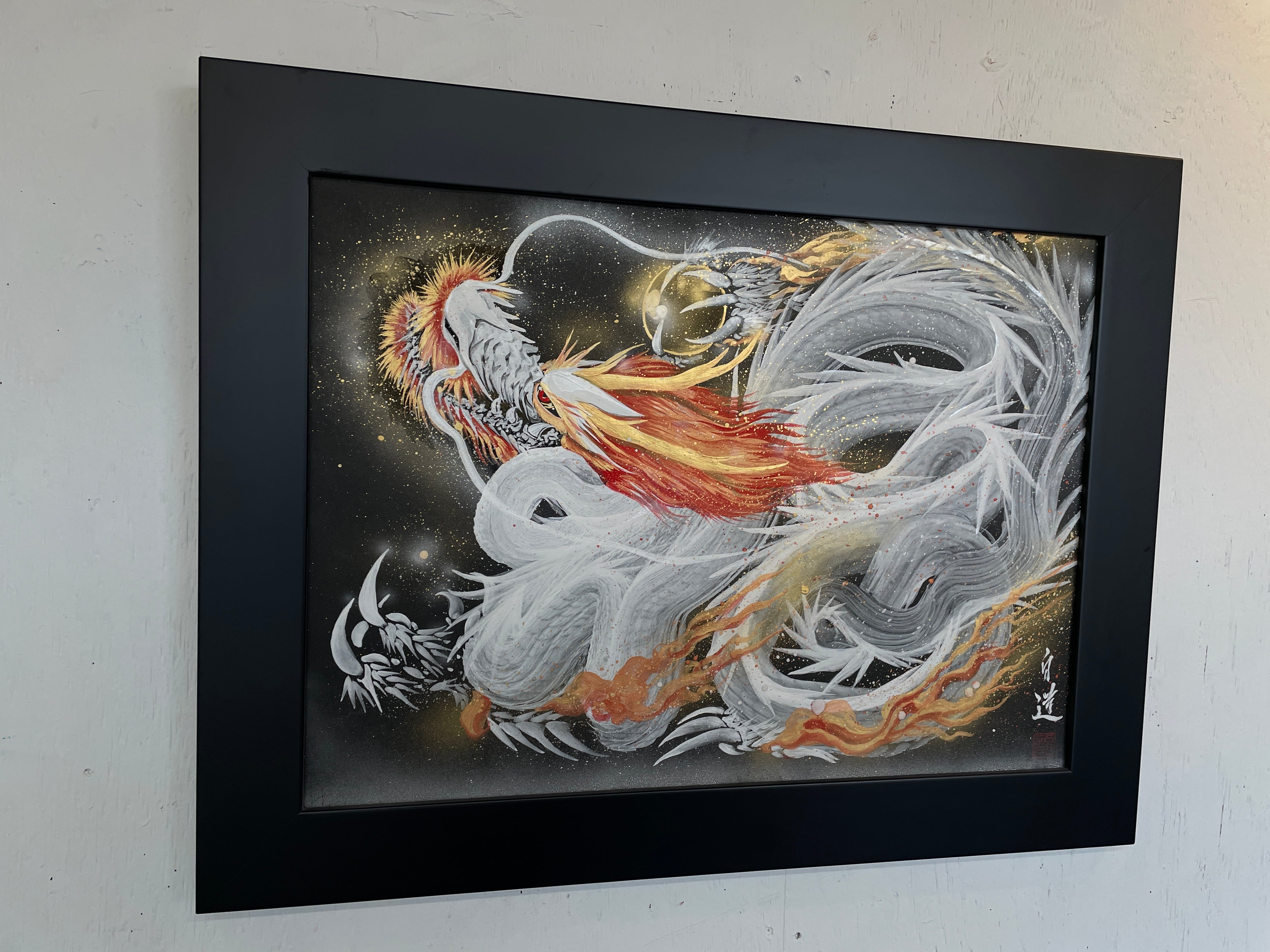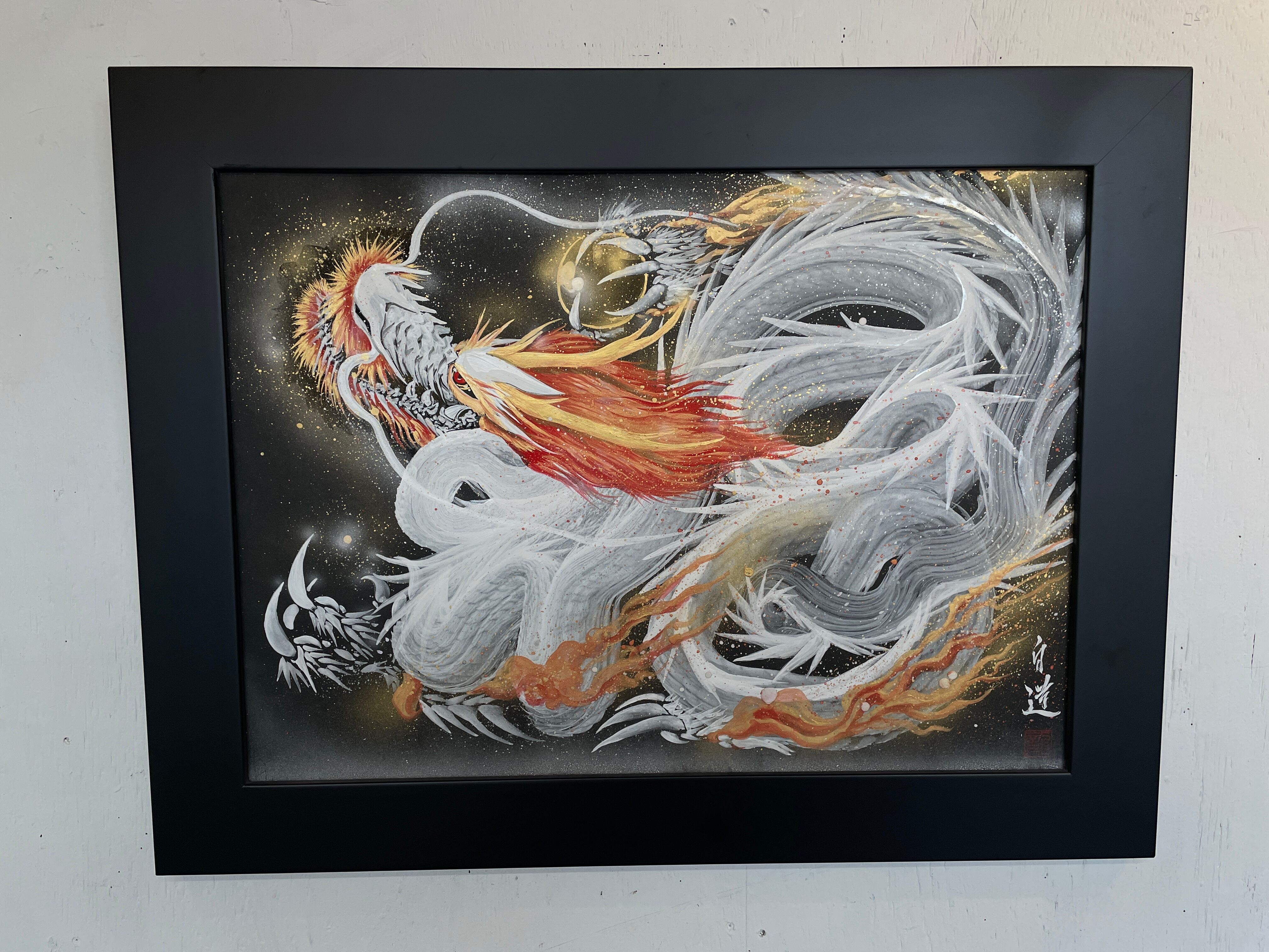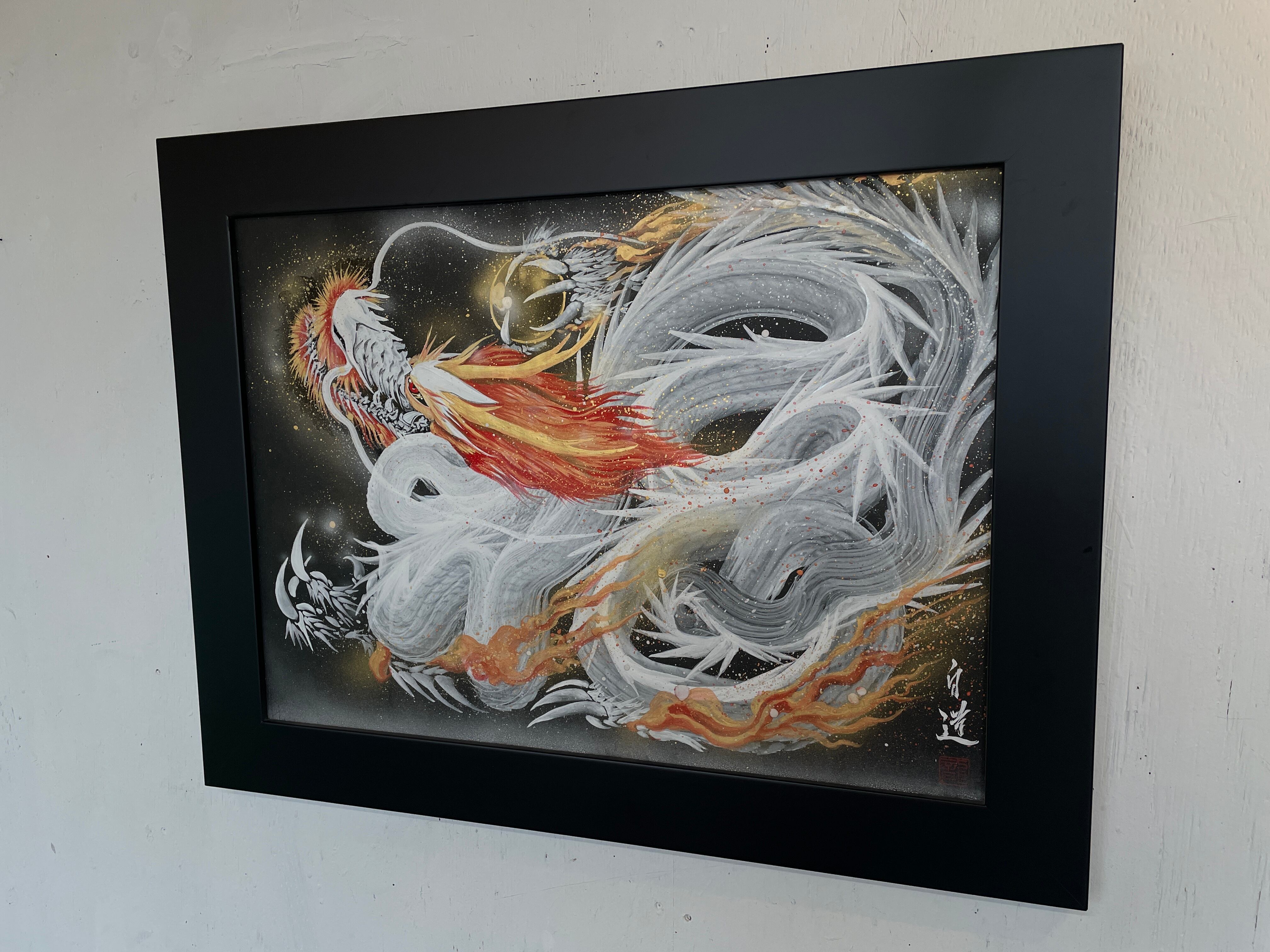 現代水墨画家☆絵師白道 「一筆白福龍」03(直筆作品)真筆証明書 高級額装 /ART Hakudou 絵 絵画 龍 一筆龍 送料無料♪
