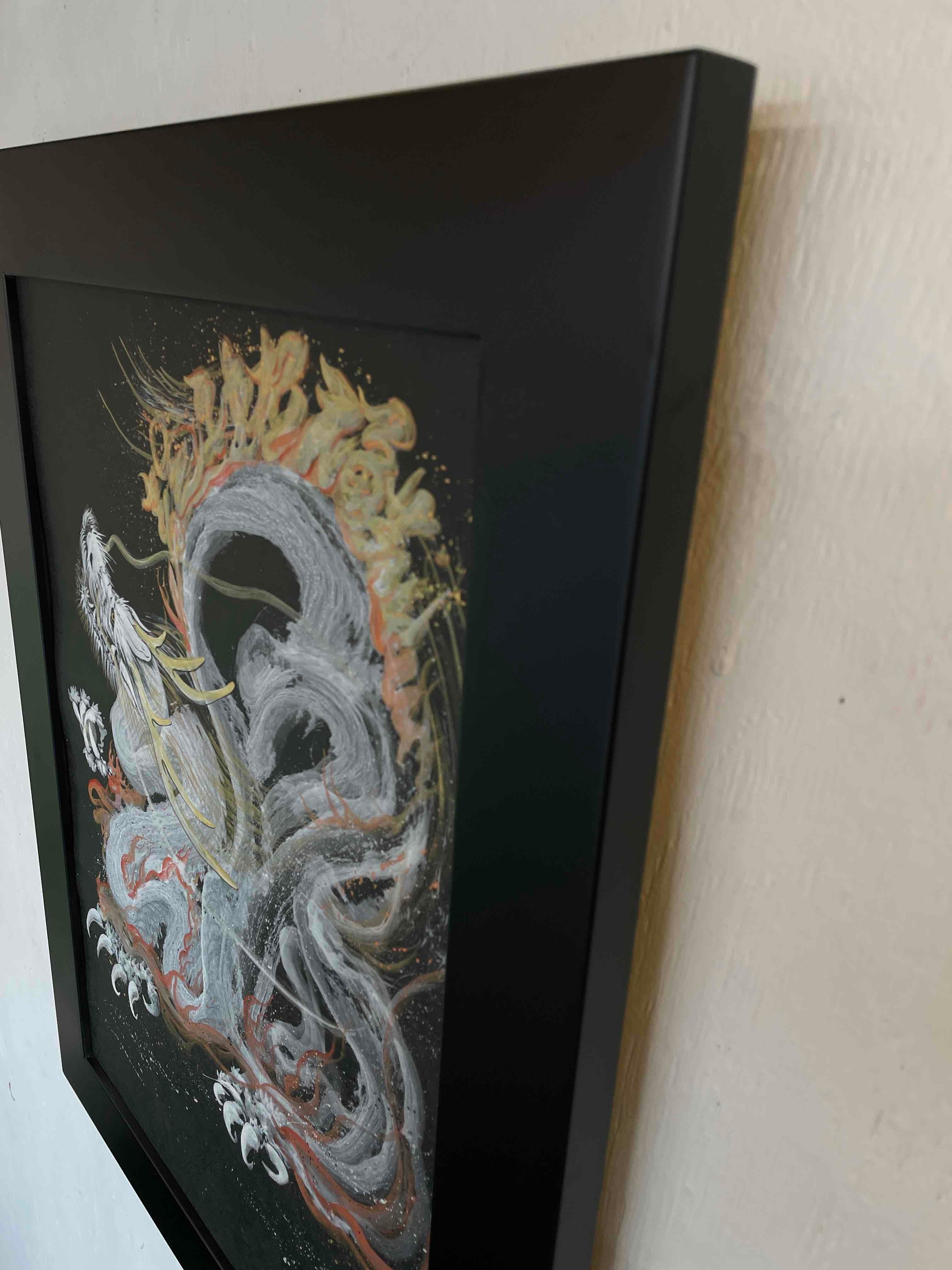 現代水墨画家☆絵師白道 「一筆白福龍」04(直筆作品)真筆証明書 高級額装 /ART Hakudou 絵 絵画 龍 一筆龍 送料無料♪