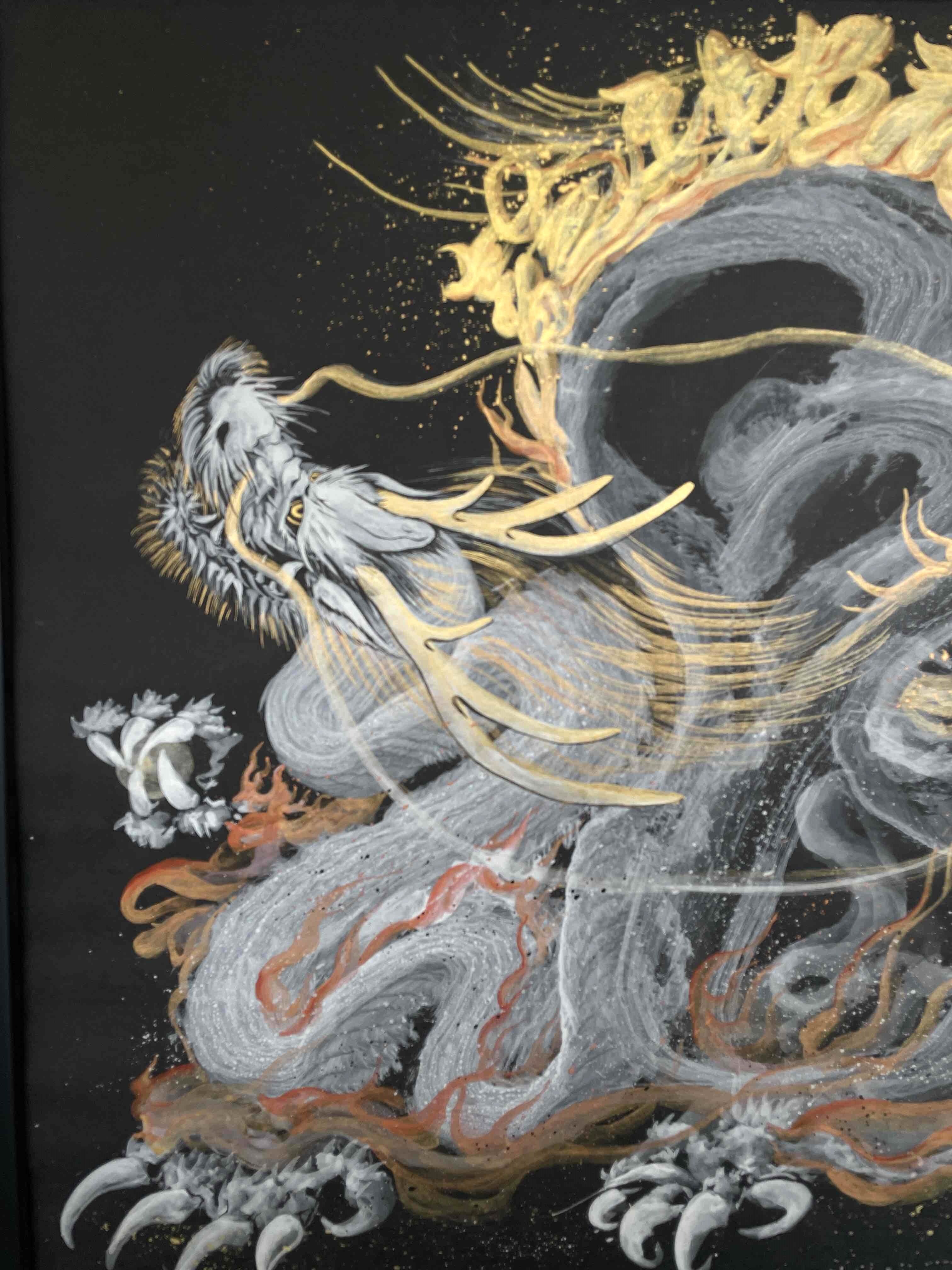 龍や鳳凰などの縁起の良いモチーフを描くことが多く、力強く躍動感のある筆致が特徴です。