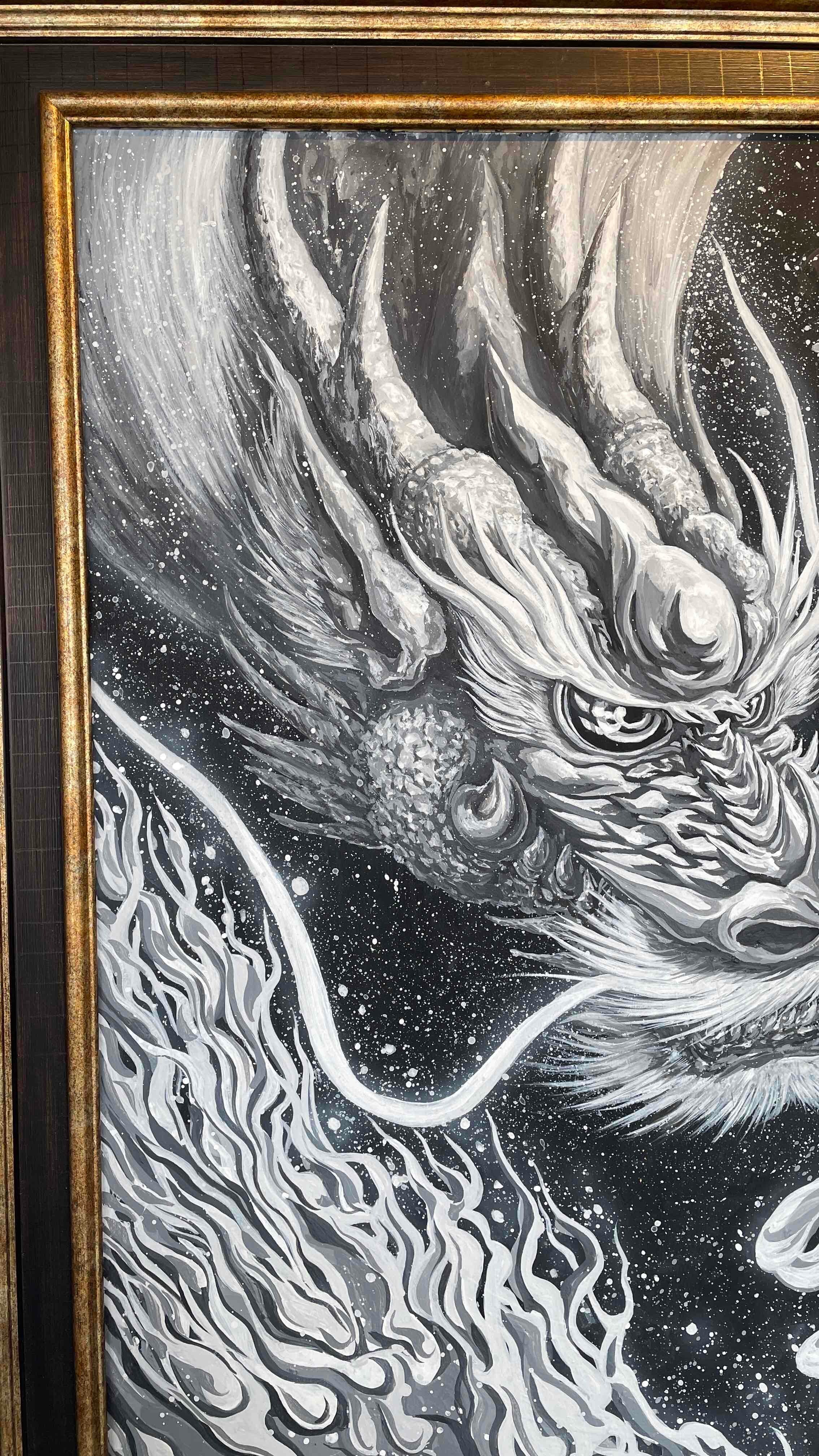 現代水墨画家 絵師白道 「白龍」 直筆作品 真筆証明書付 龍 絵 絵画 現代アート 送料無料♪