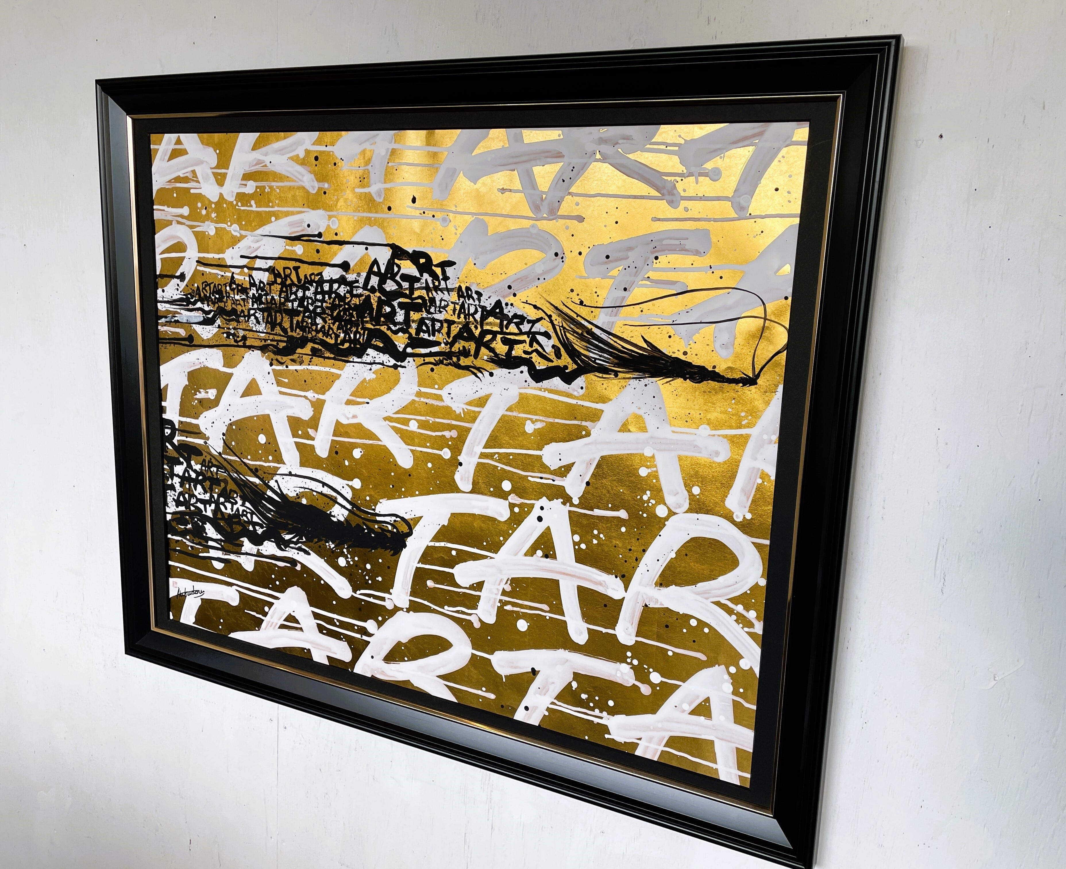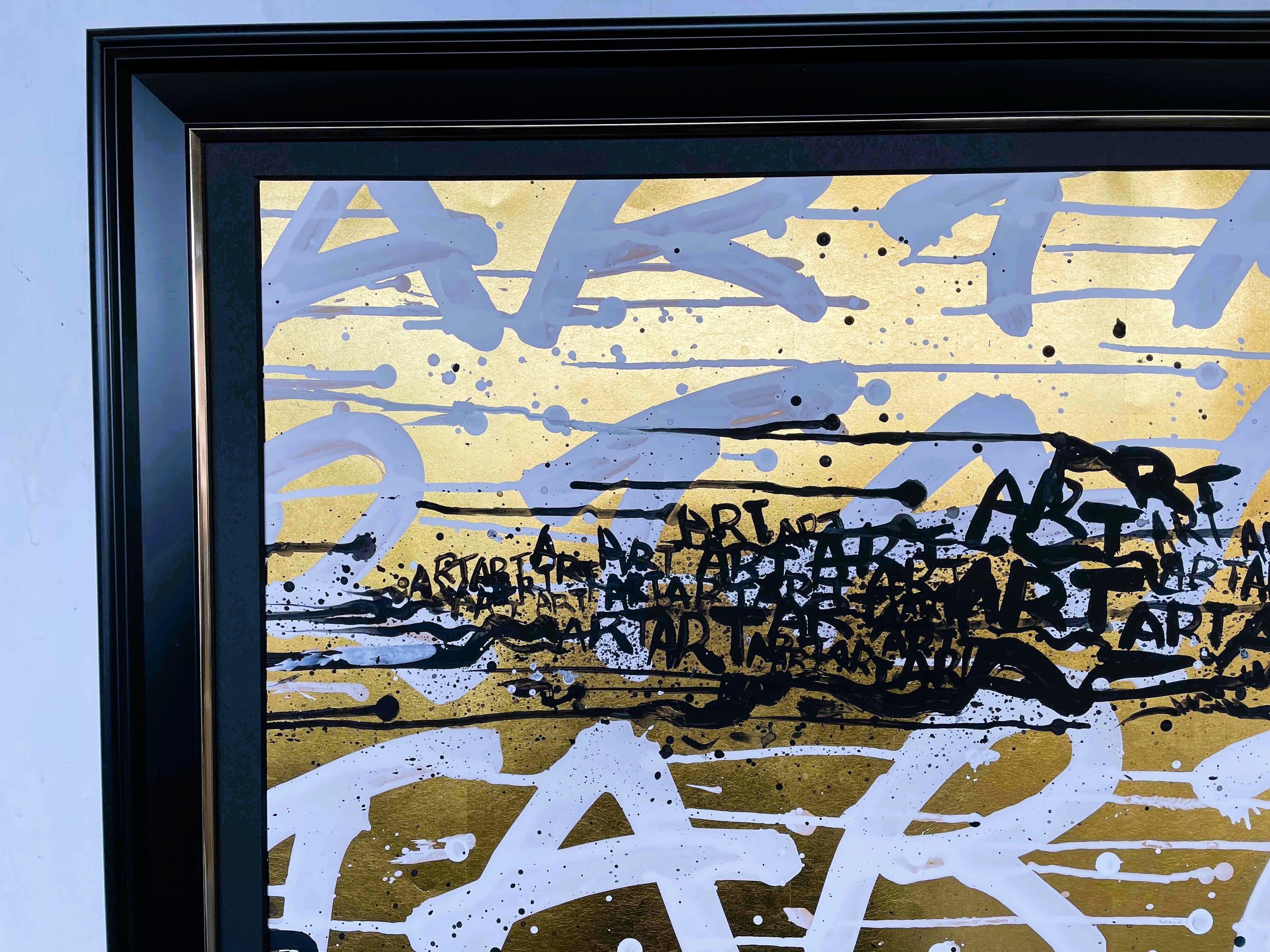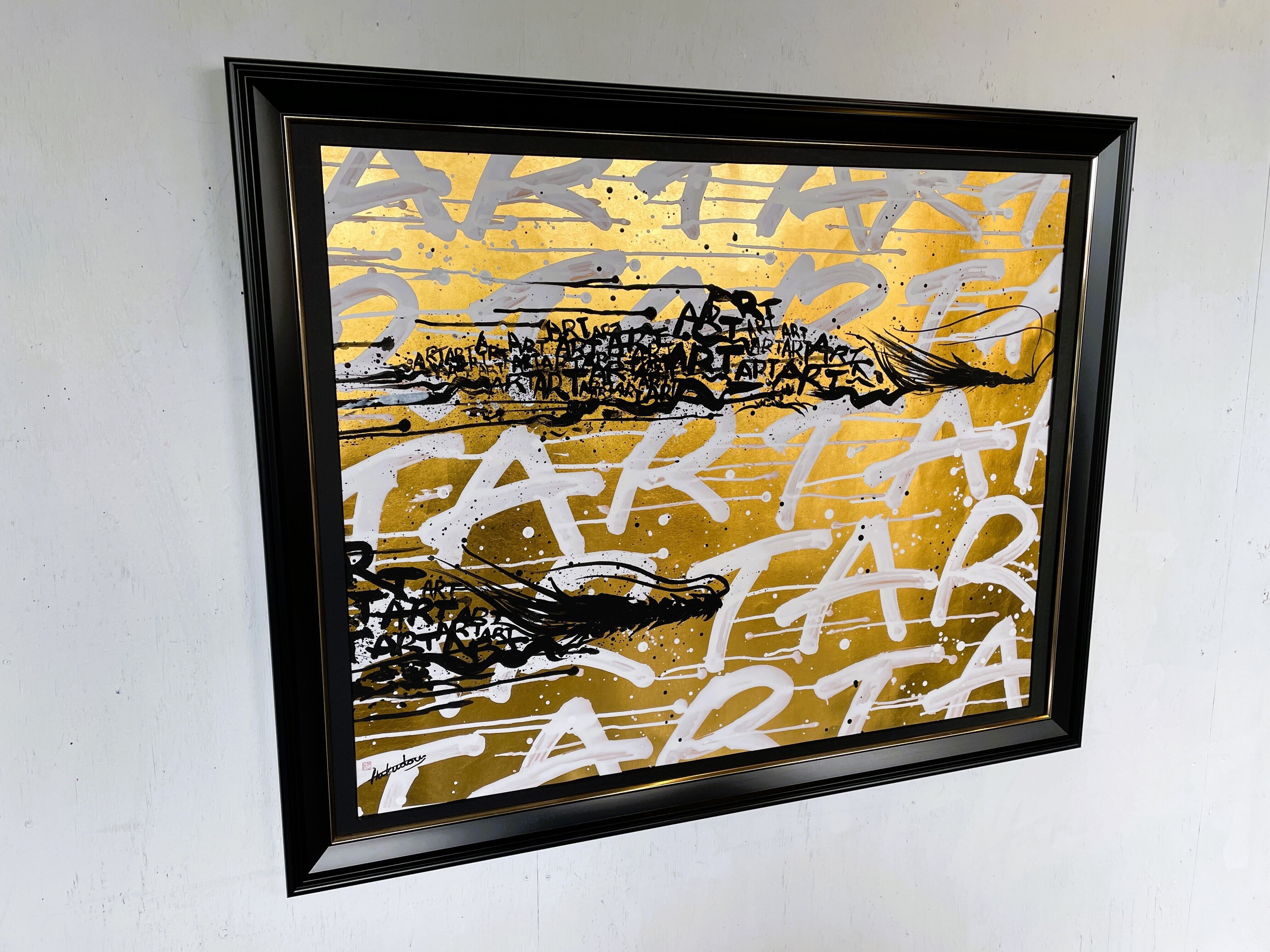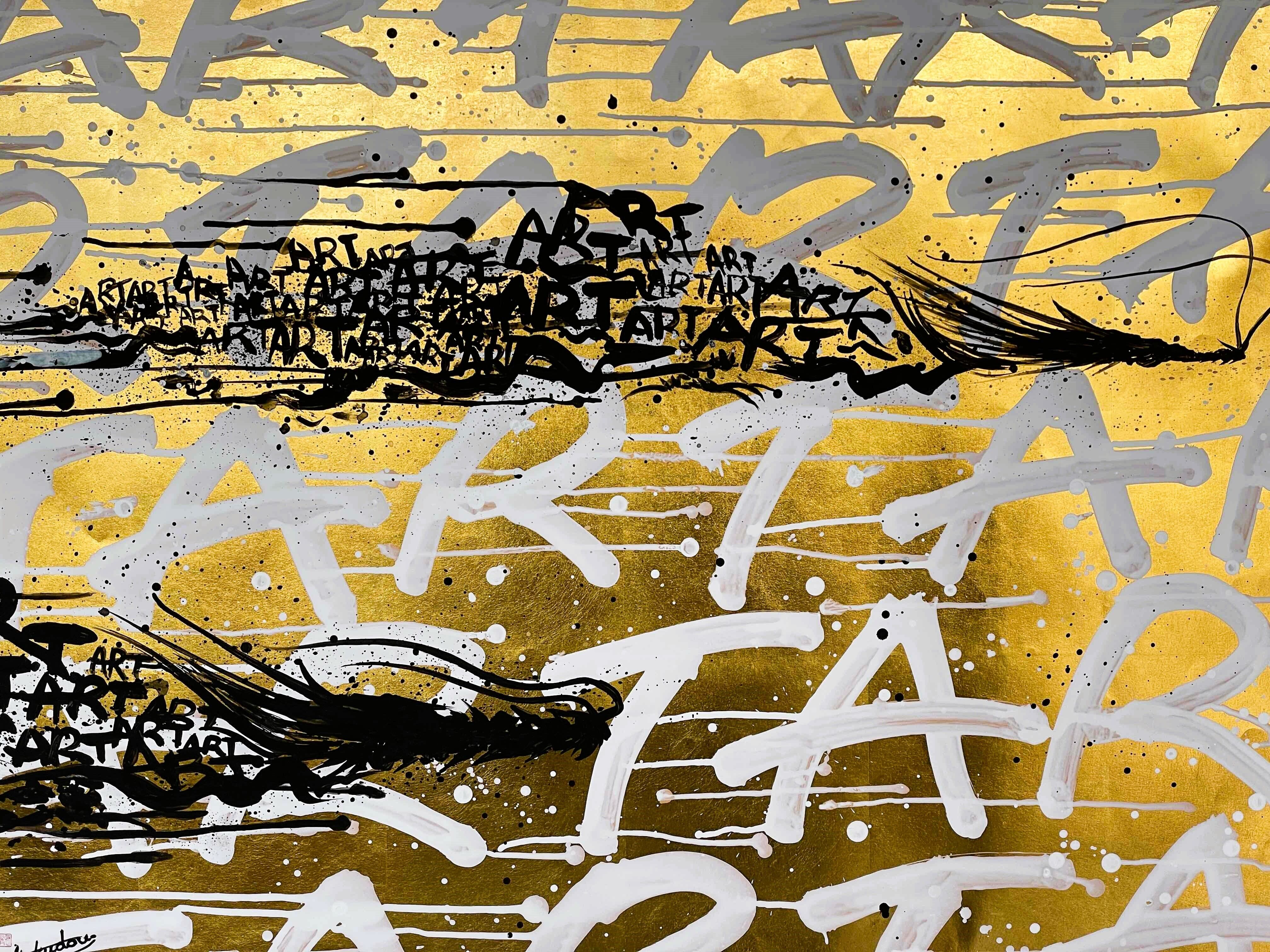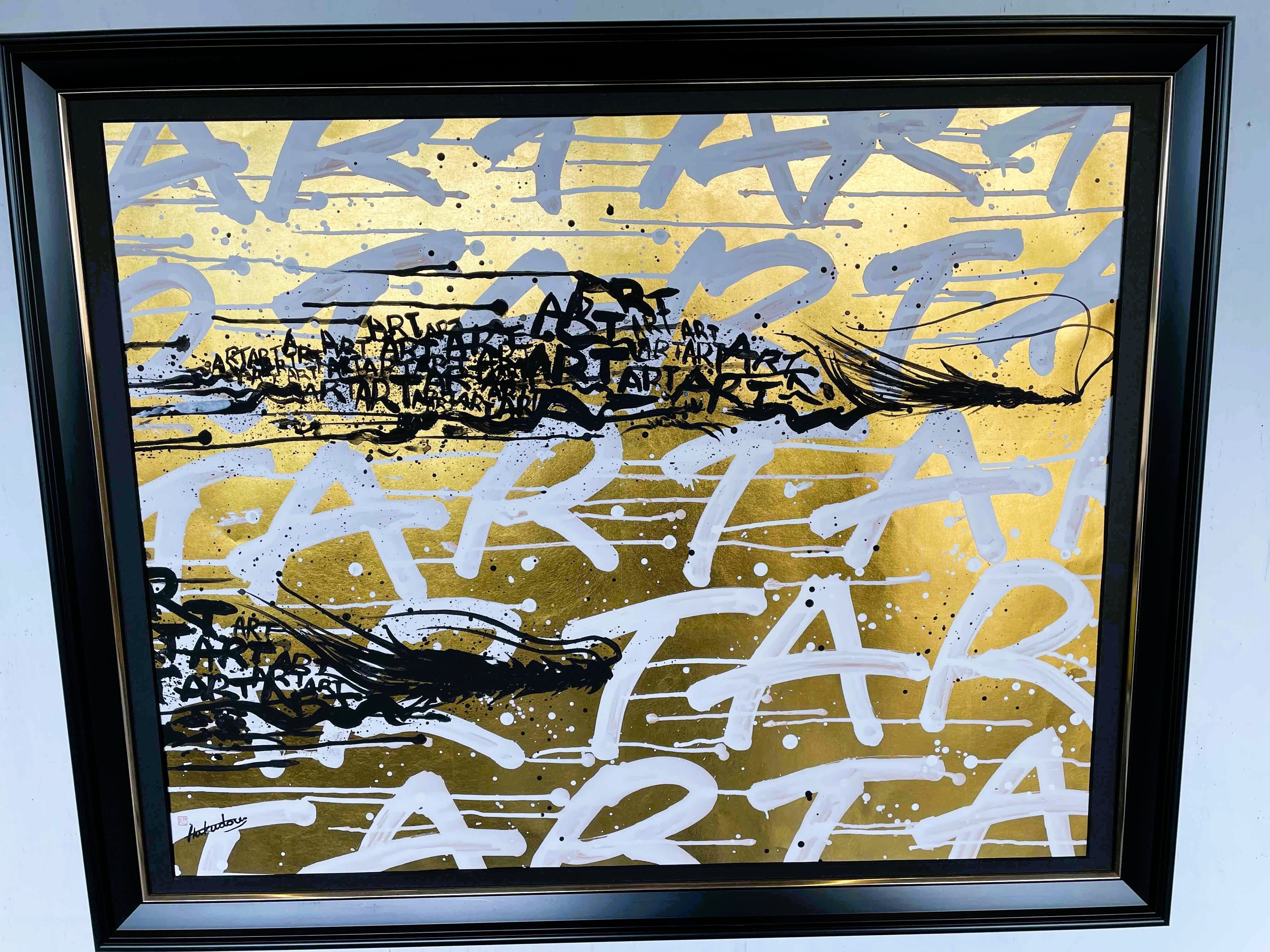金箔の箔押しした紙に白き雲のようにARTの文字があり