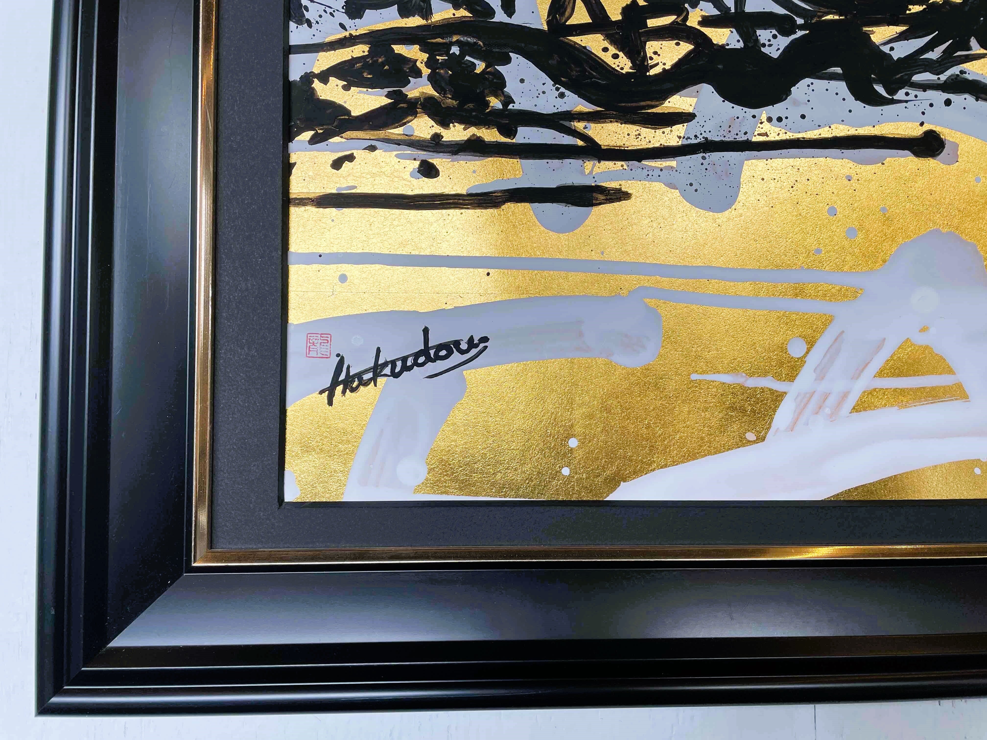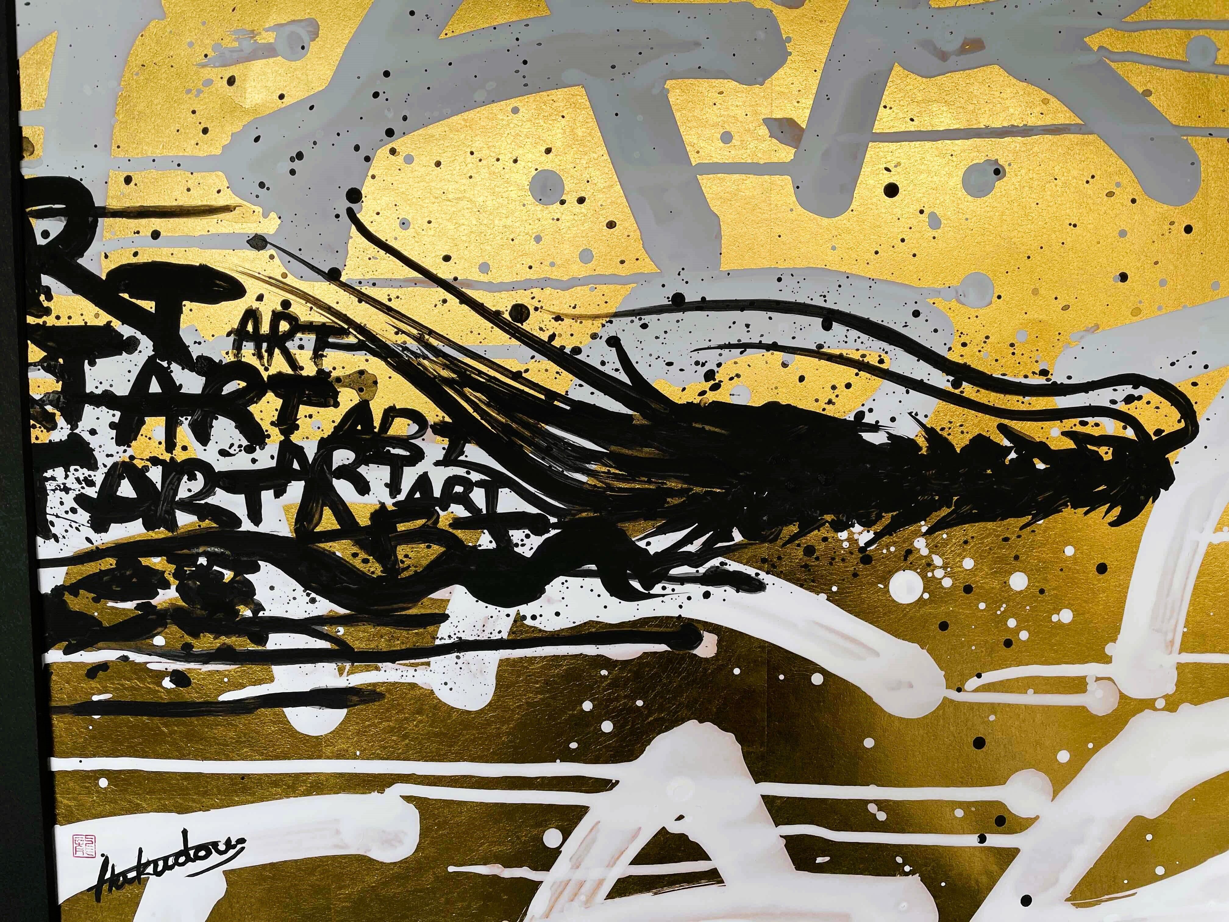 現代水墨画家 絵師白道 現代書道「GOLDEN TWIN DRAGON」金箔 直筆作品 証明書カード付 龍 絵 絵画 現代アート ART