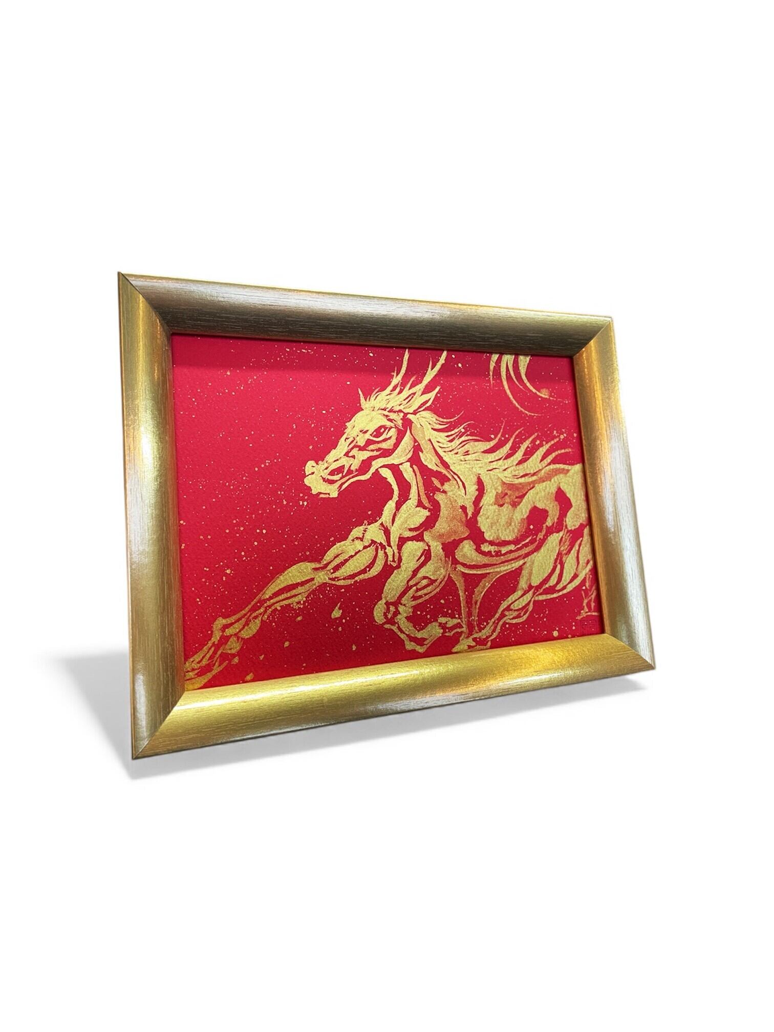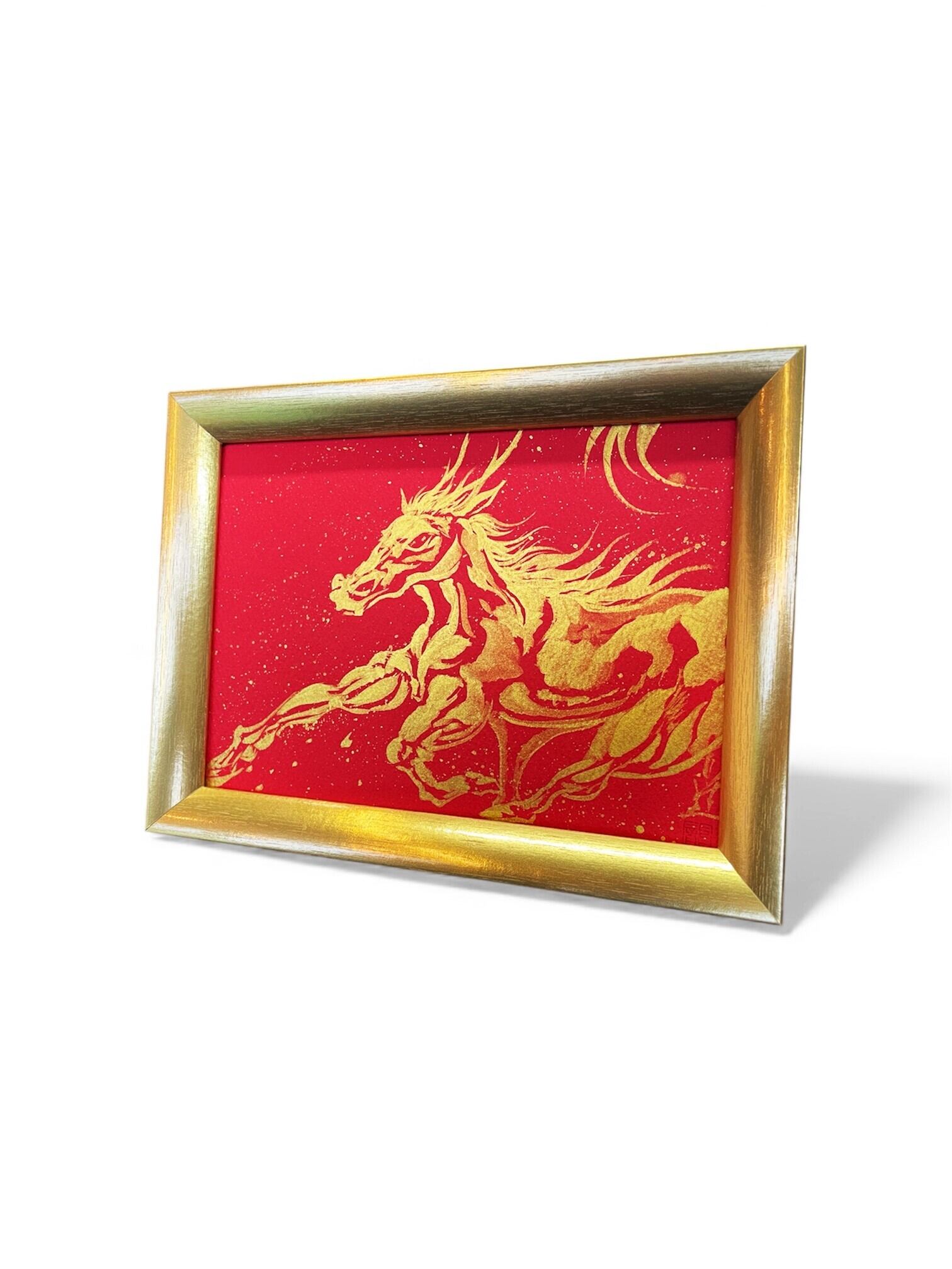 龍や鳳凰などの縁起の良いモチーフを描くことが多く、力強く躍動感のある筆致が特徴。純金など異素材を融合させた作品も手掛けています。