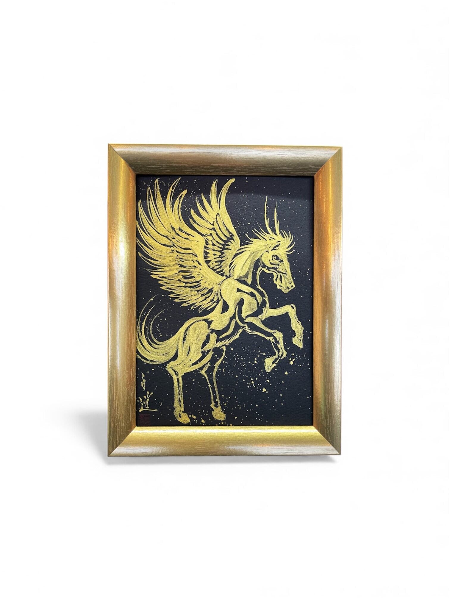 「羽馬」金墨 直筆作品