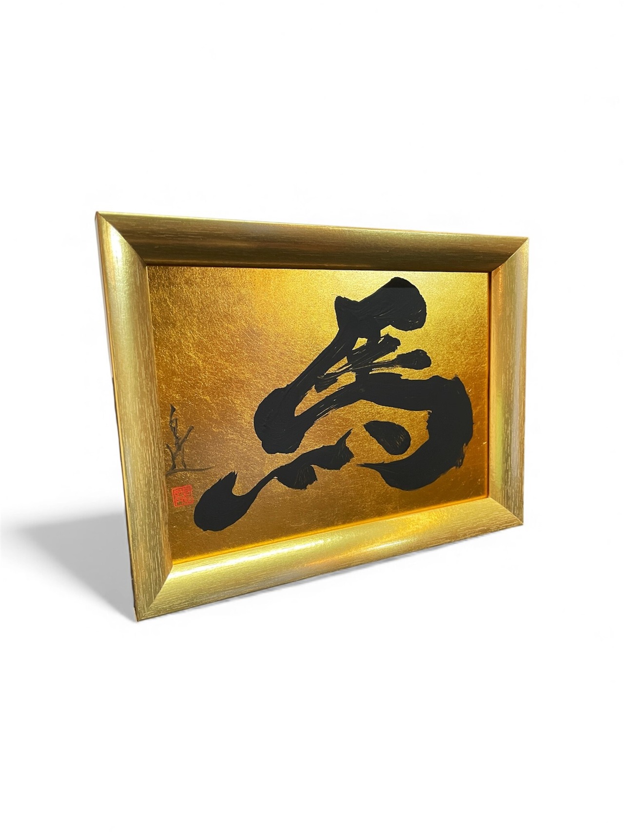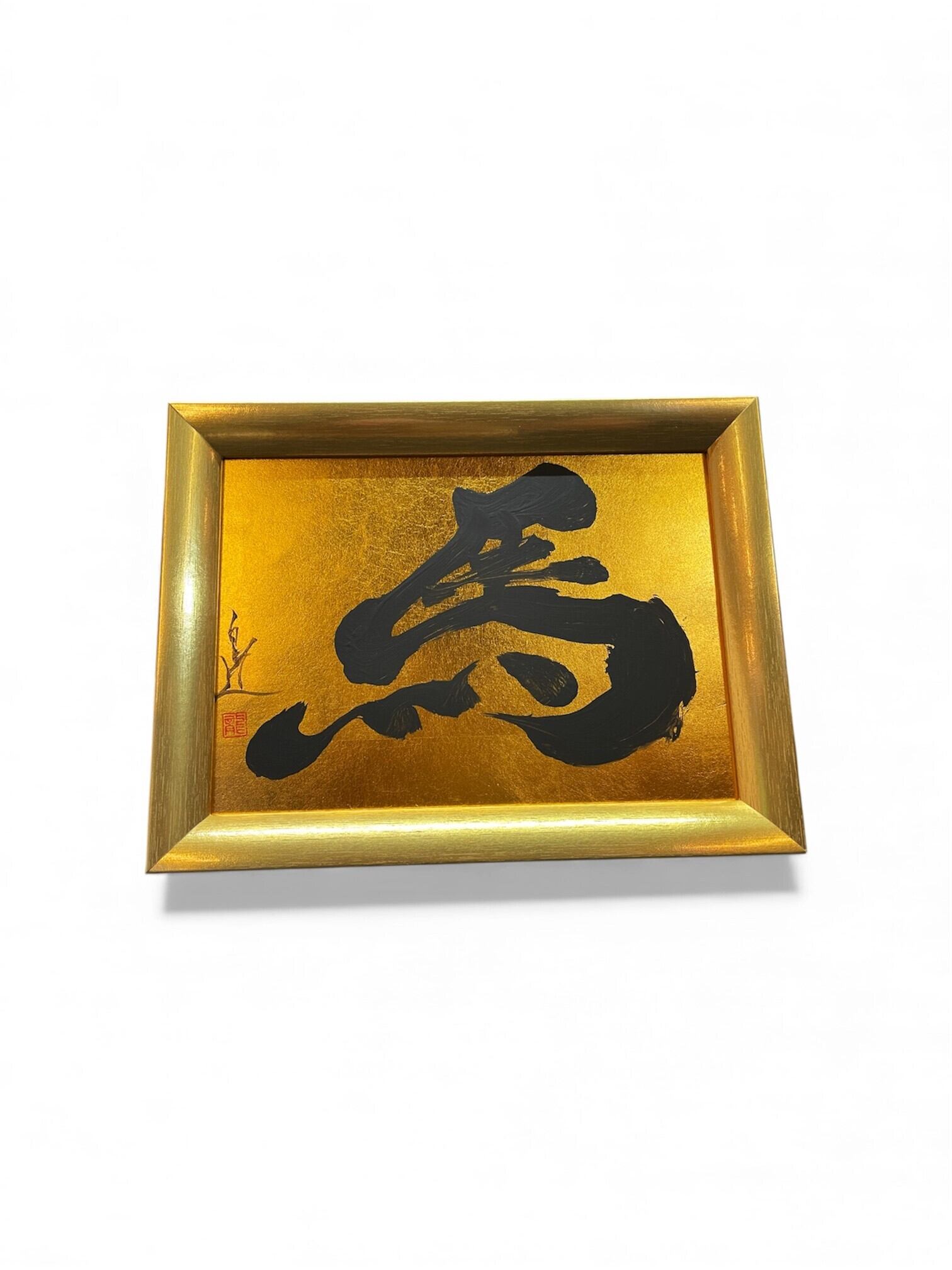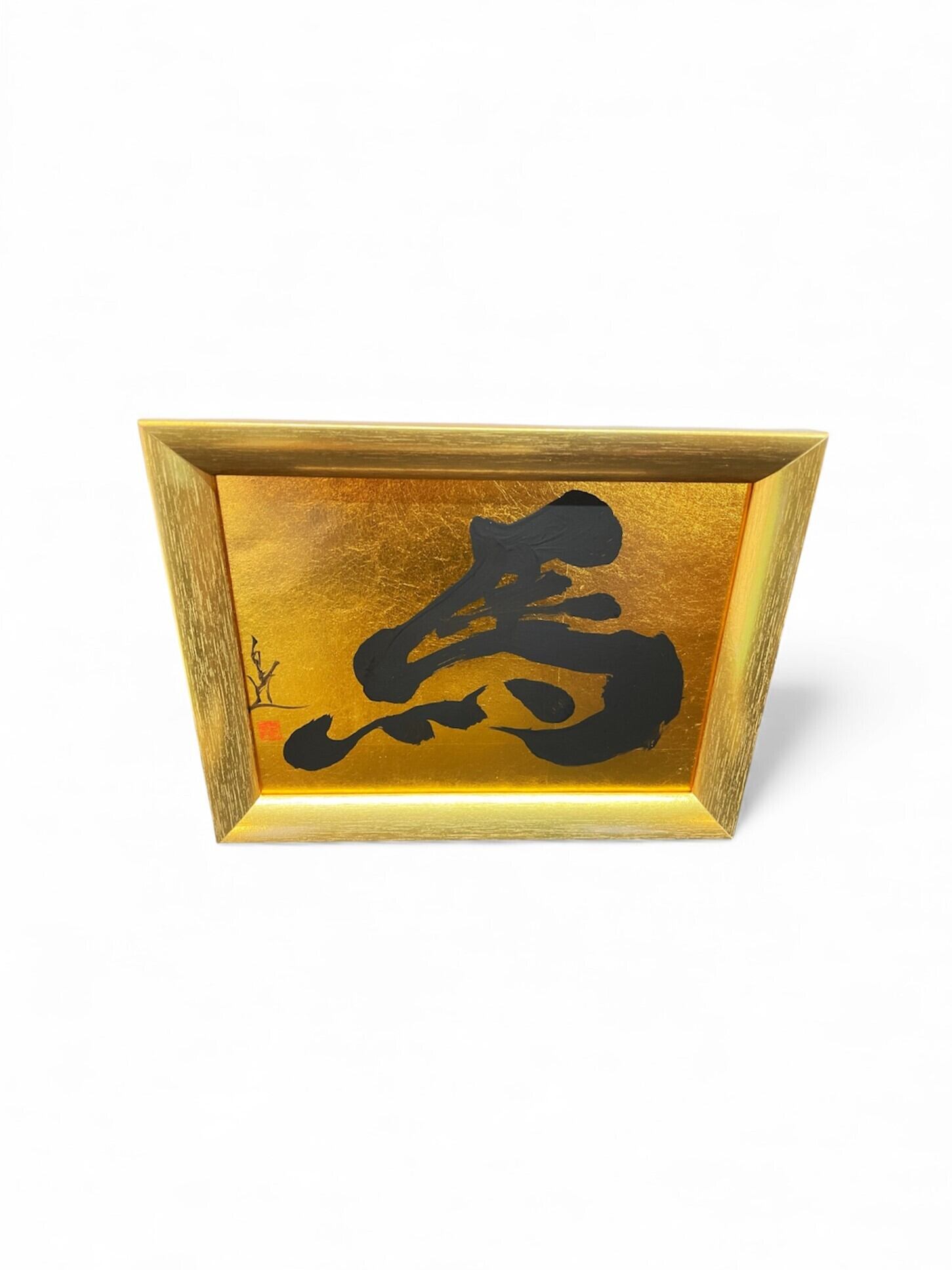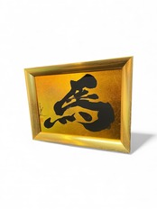 現代水墨画家 絵師白道 「馬の書」(本金箔) 直筆作品 証明書カード付 馬 書道 現代アート