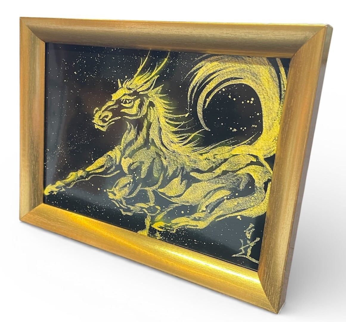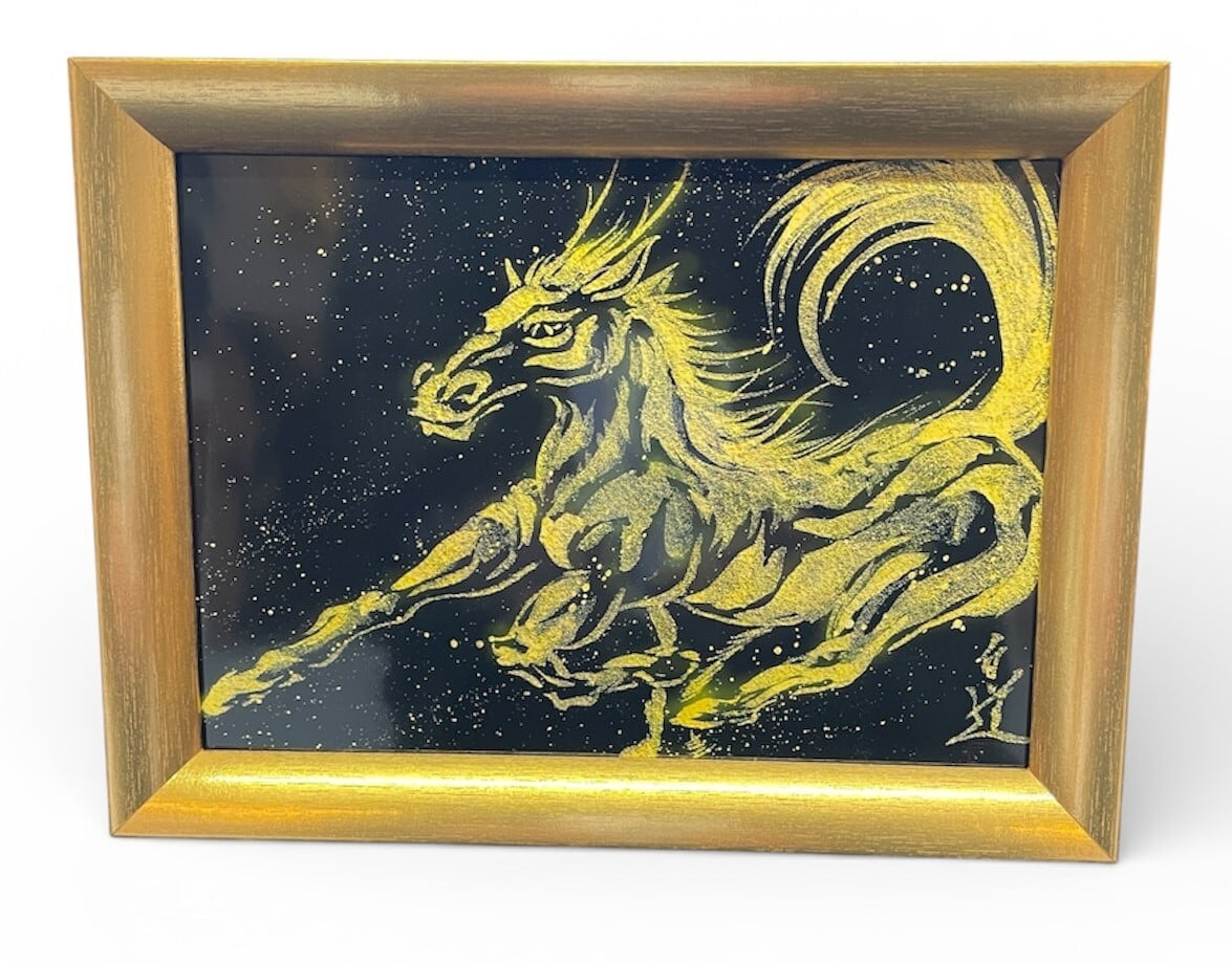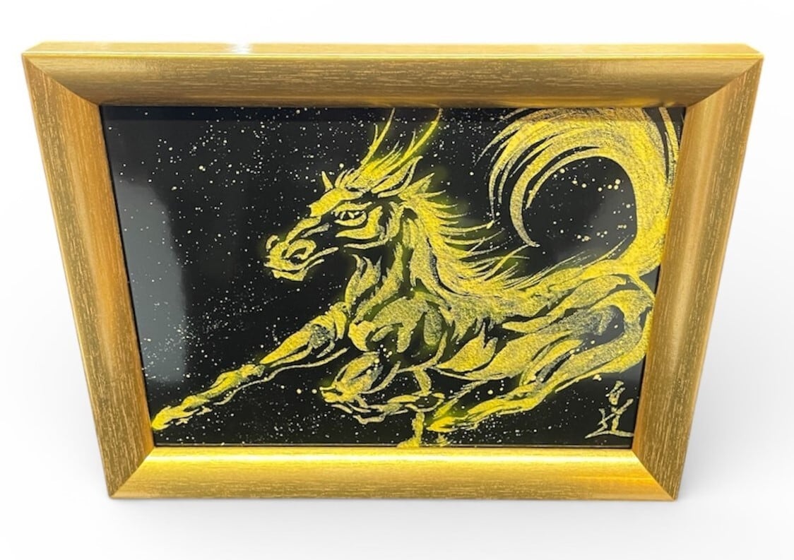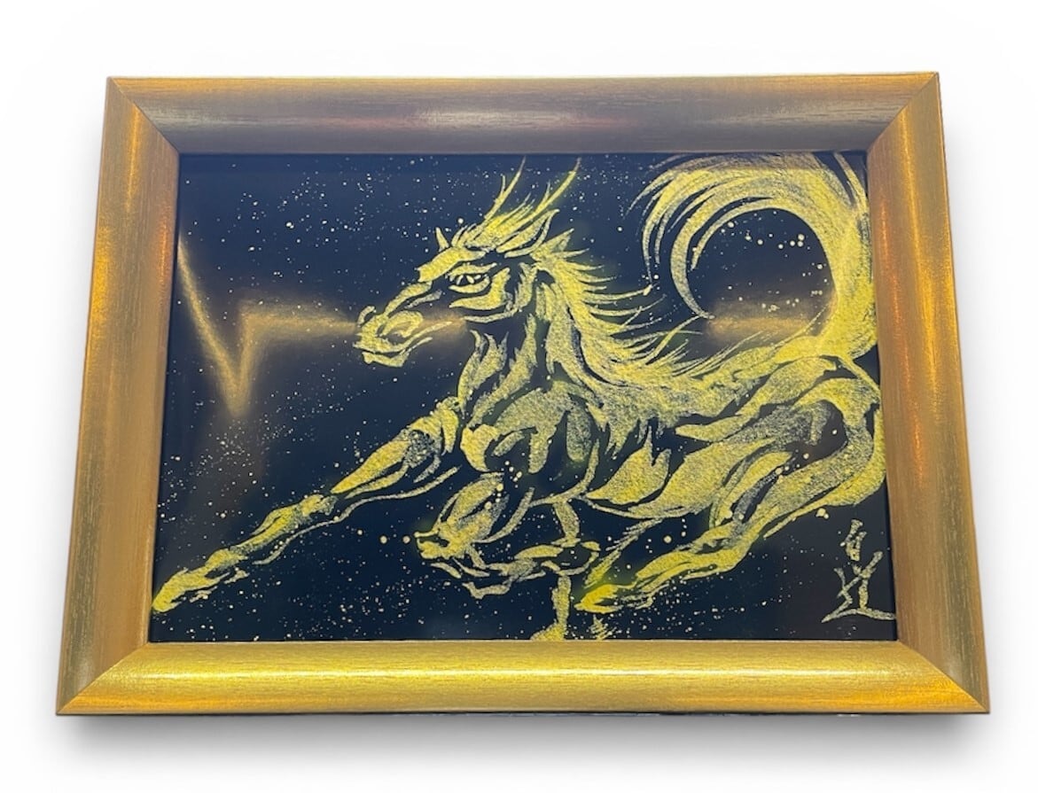 現代水墨画家 絵師白道 「龍馬」(黒金)2L 馬 龍 絵 絵画 現代アート