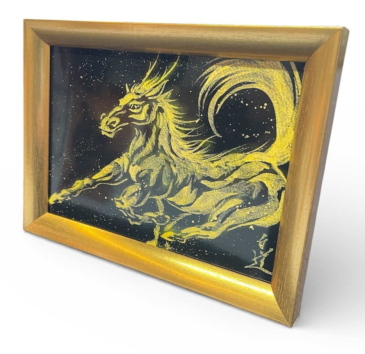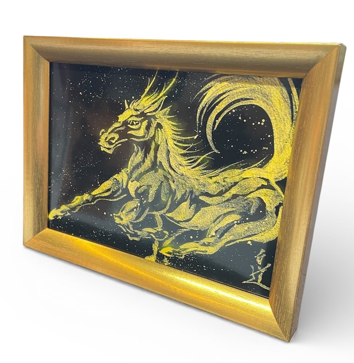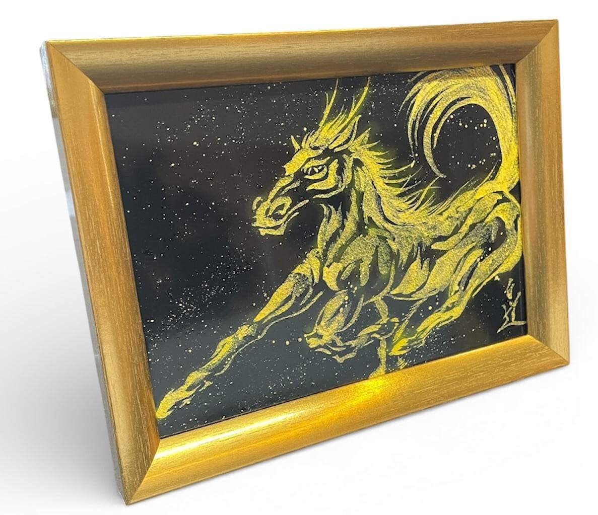 現代水墨画家 絵師白道 「龍馬」(黒金)2L 馬 龍 絵 絵画 現代アート