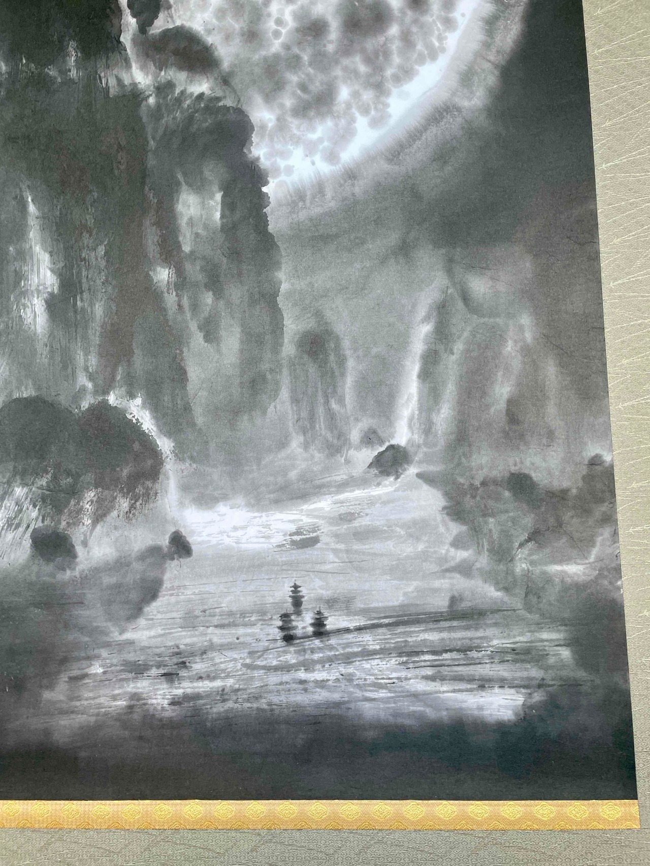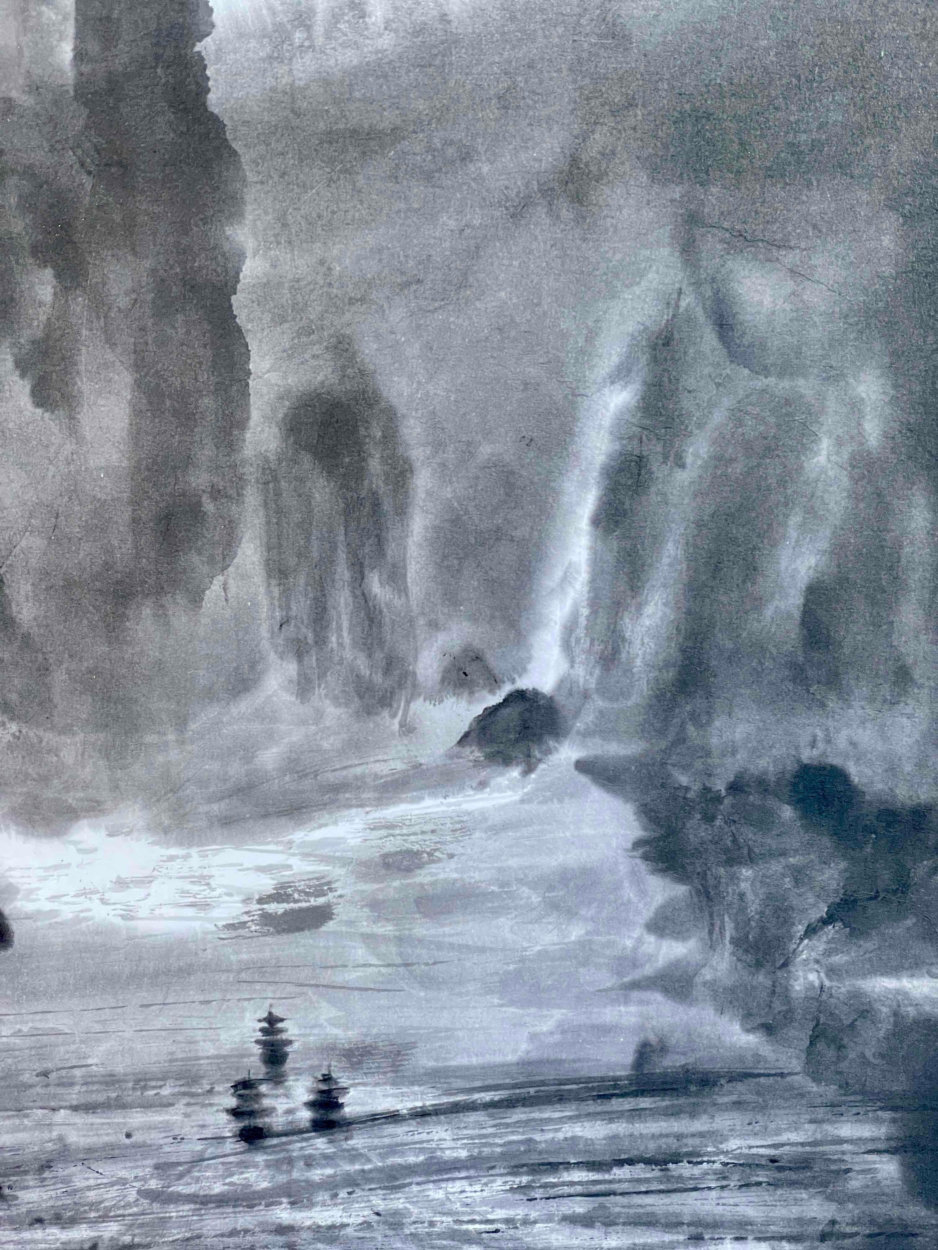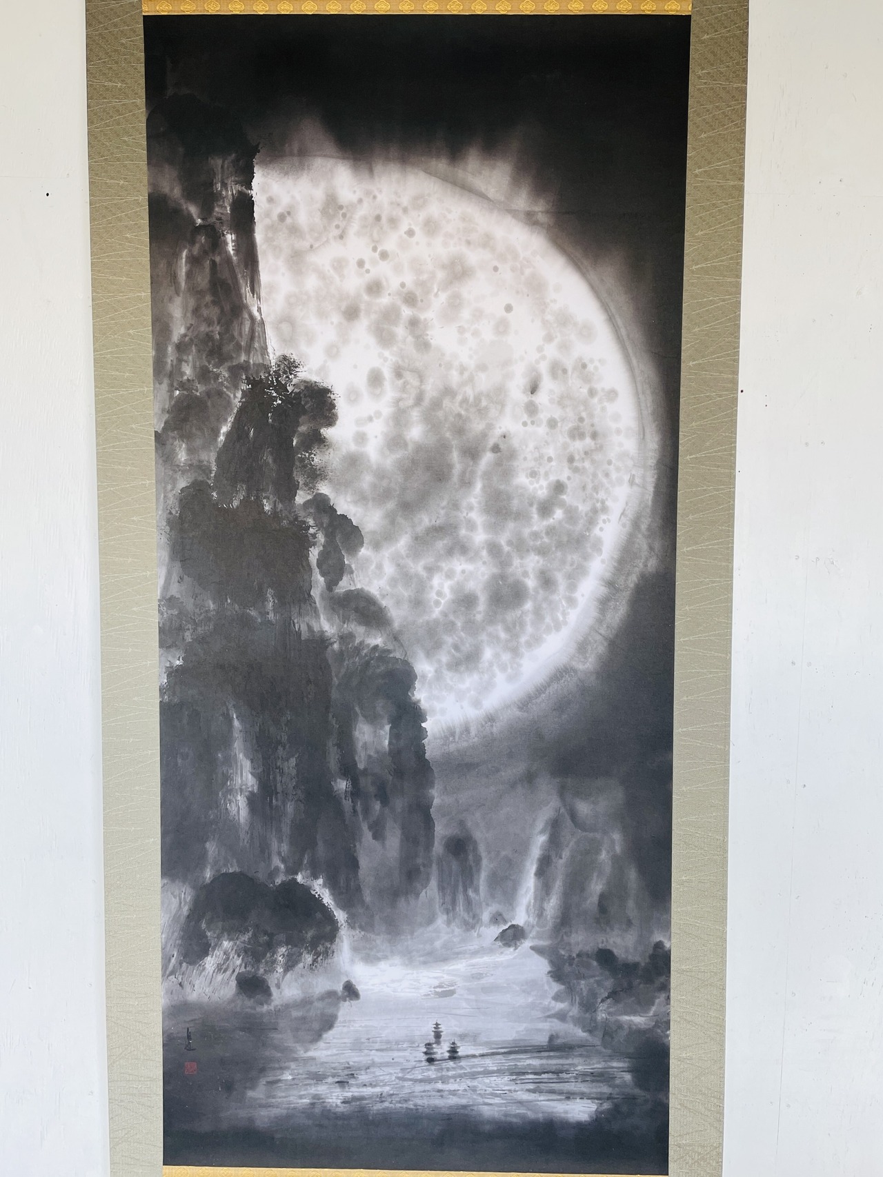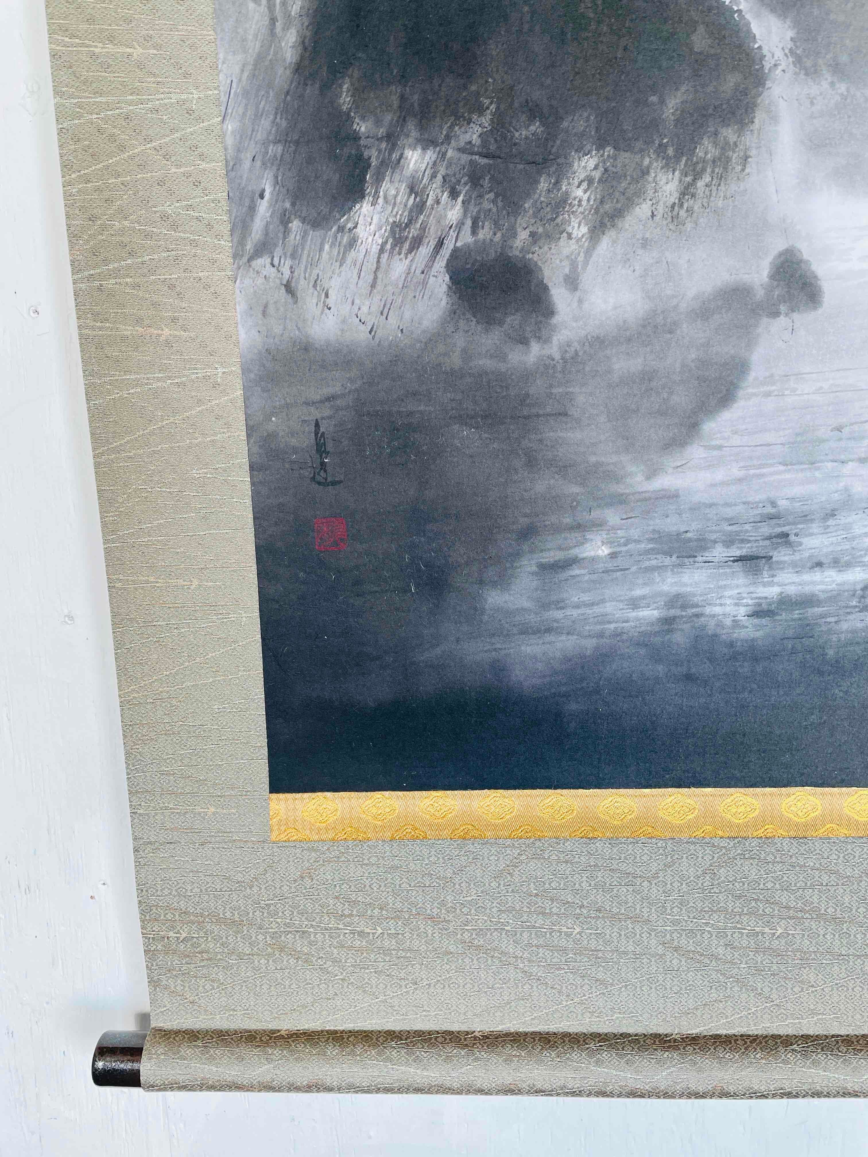 現代水墨画家 絵師白道 「月の陣」(水墨画) 直筆作品 証明書カード付 三国志 船 川 絵 絵画 掛軸