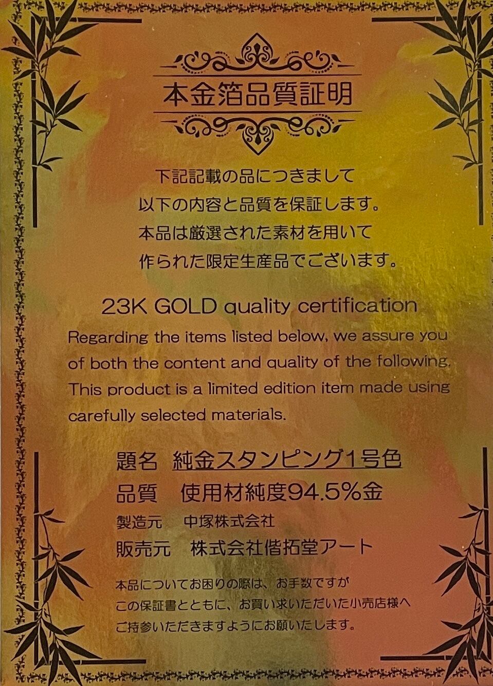 純度94.5%の本金箔で秘密の手法で作られた箔押し作品