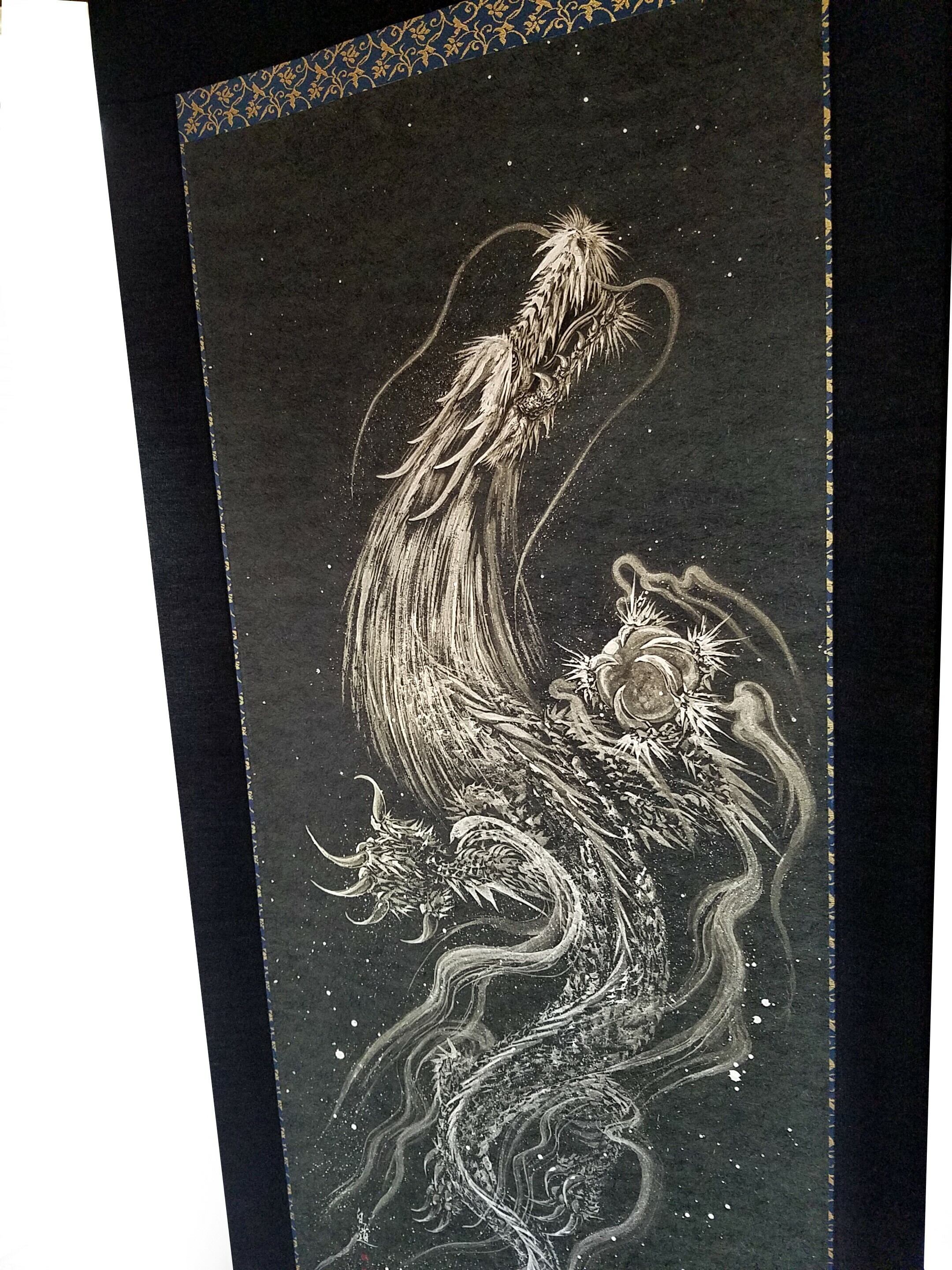☆「金銀昇龍天」真筆証明書有 龍 絵画 ART 掛け軸 直筆作品 真作