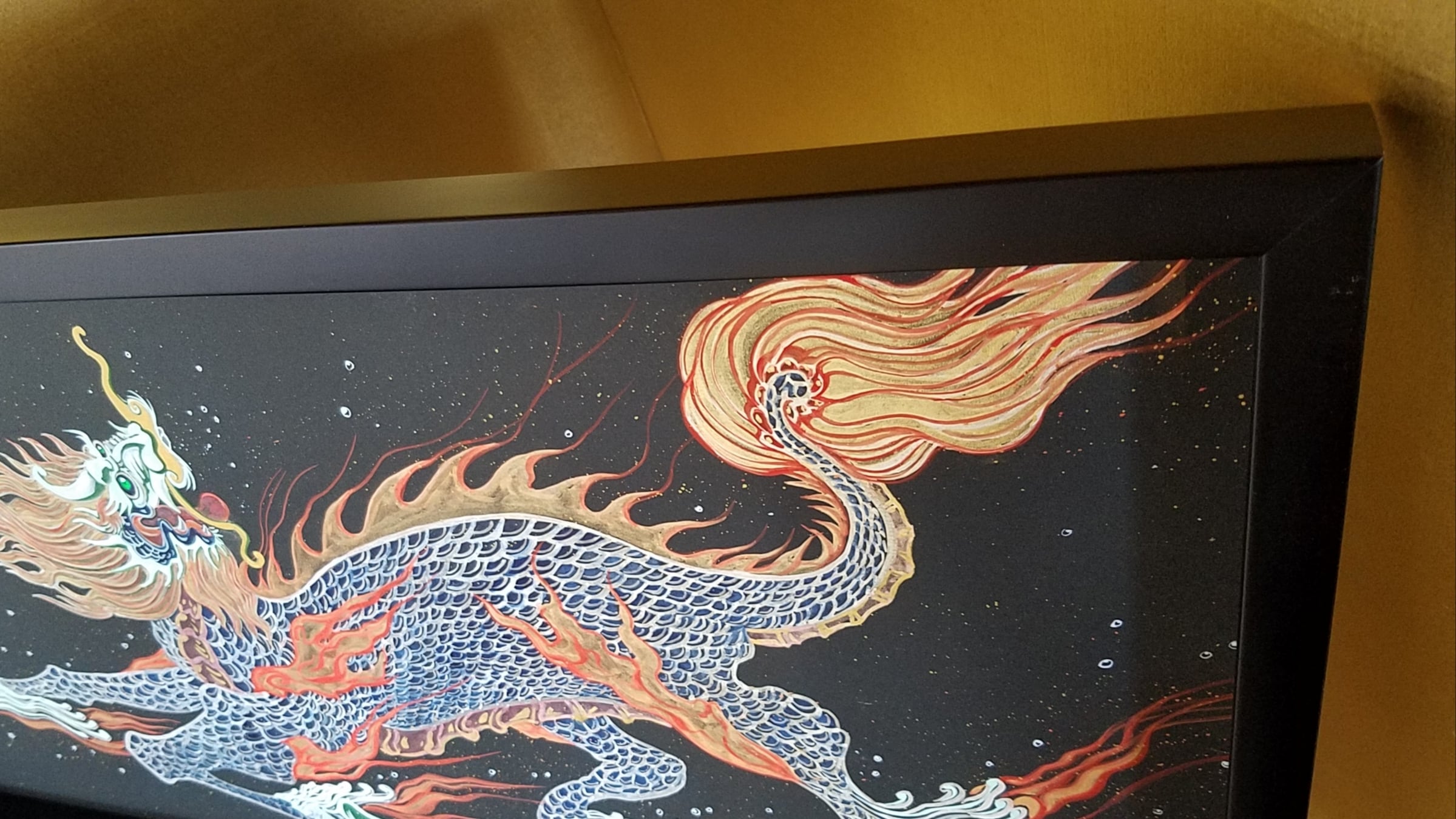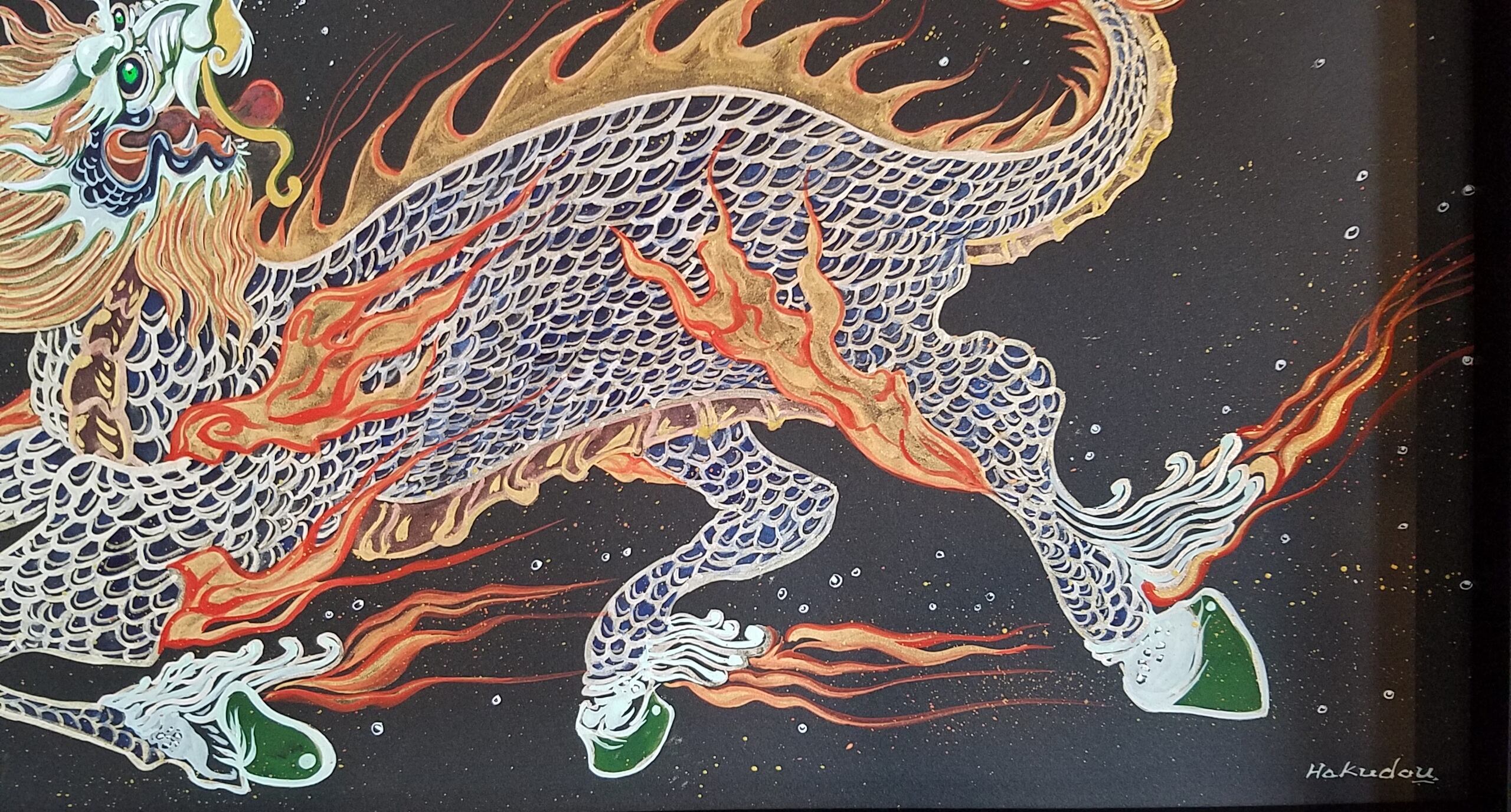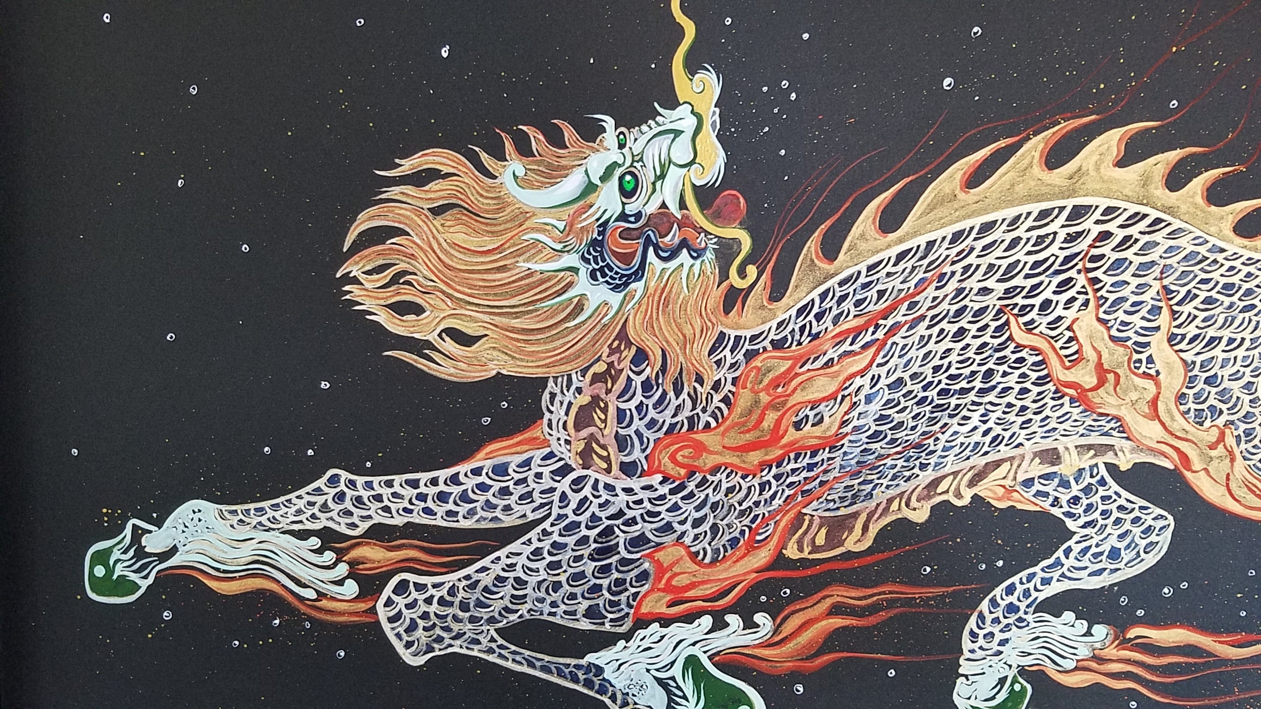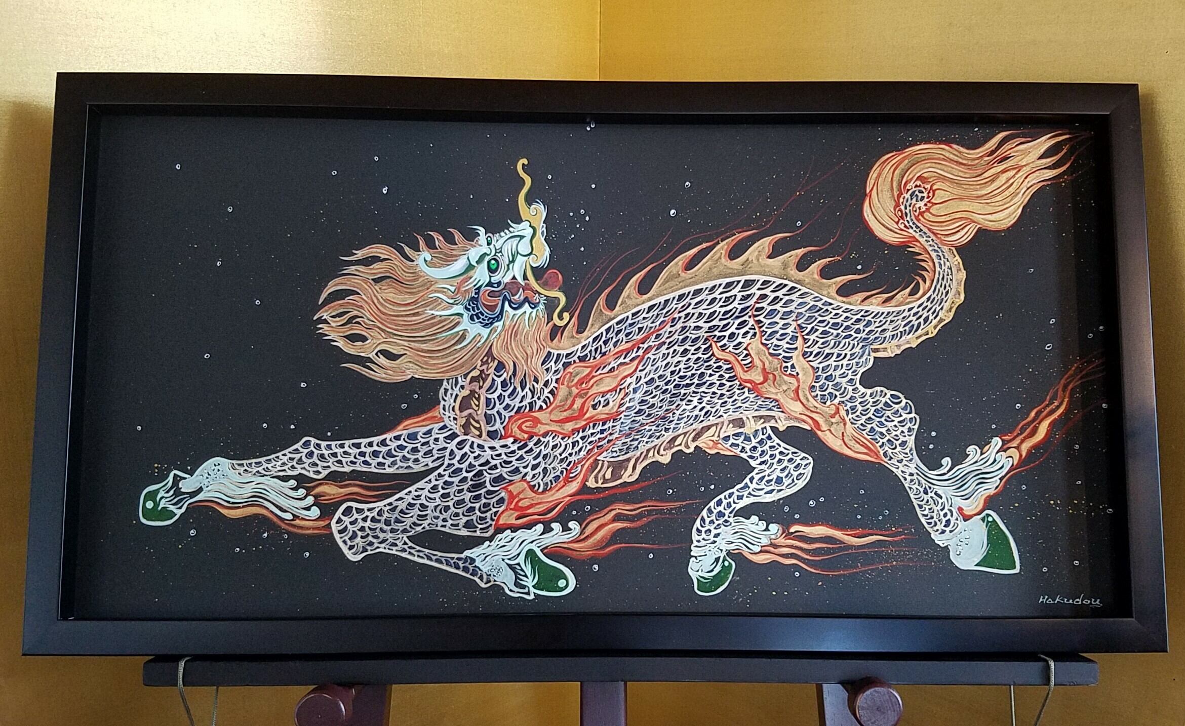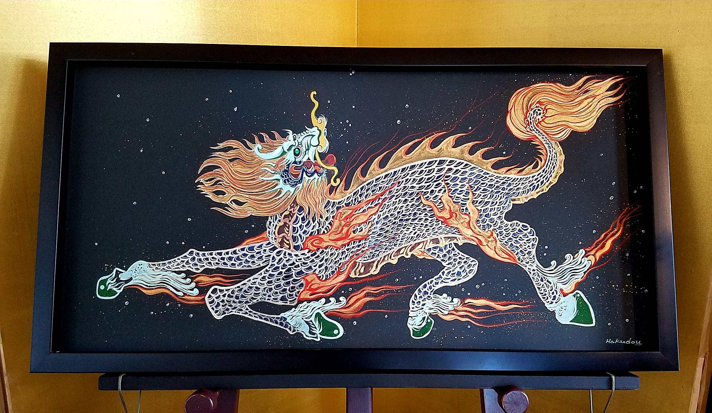 この絵は古来の麒麟の図を元にしそれを自身の解釈で描いた作品です。