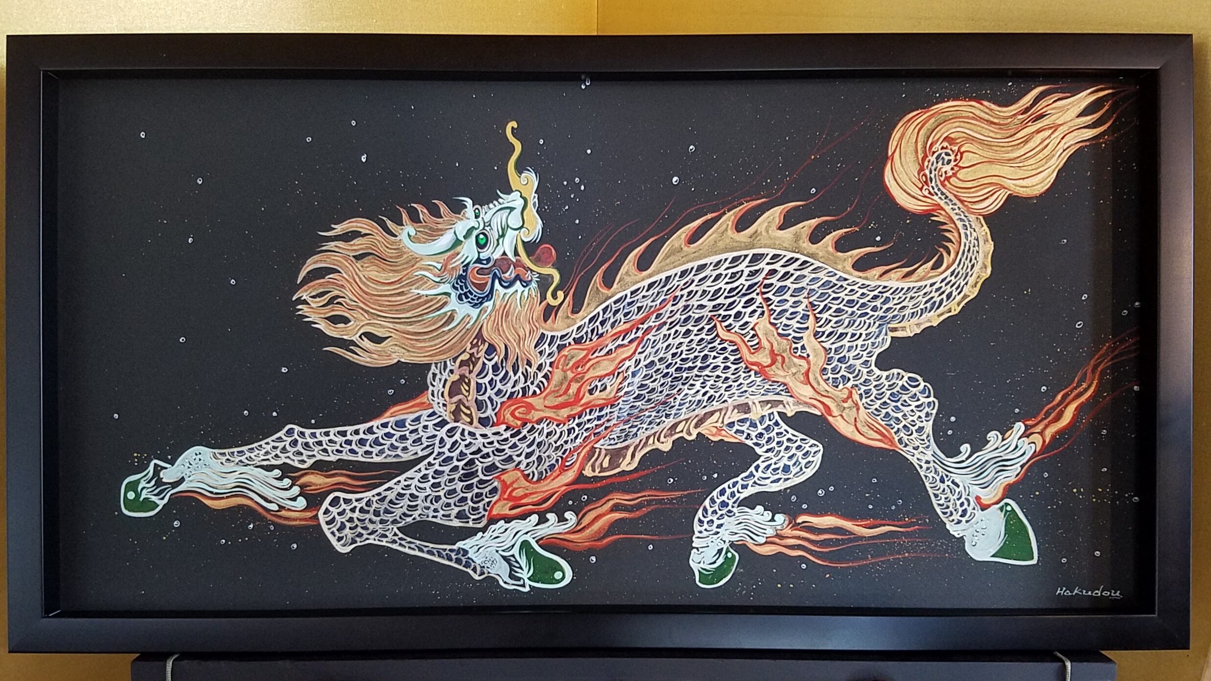 「麒麟」(改)五神獣 四神獣 獣類 龍 絵 絵画 直筆 白道