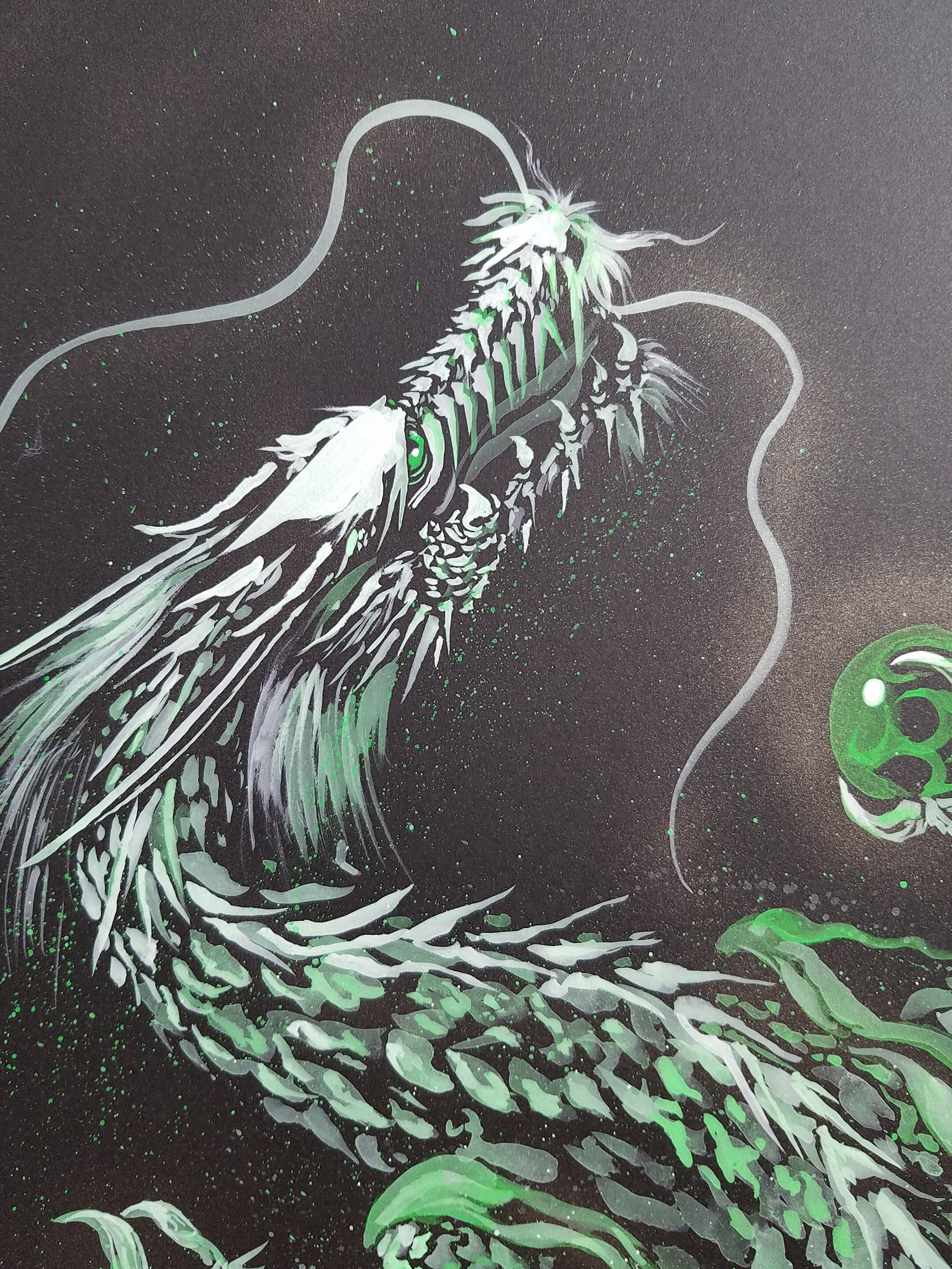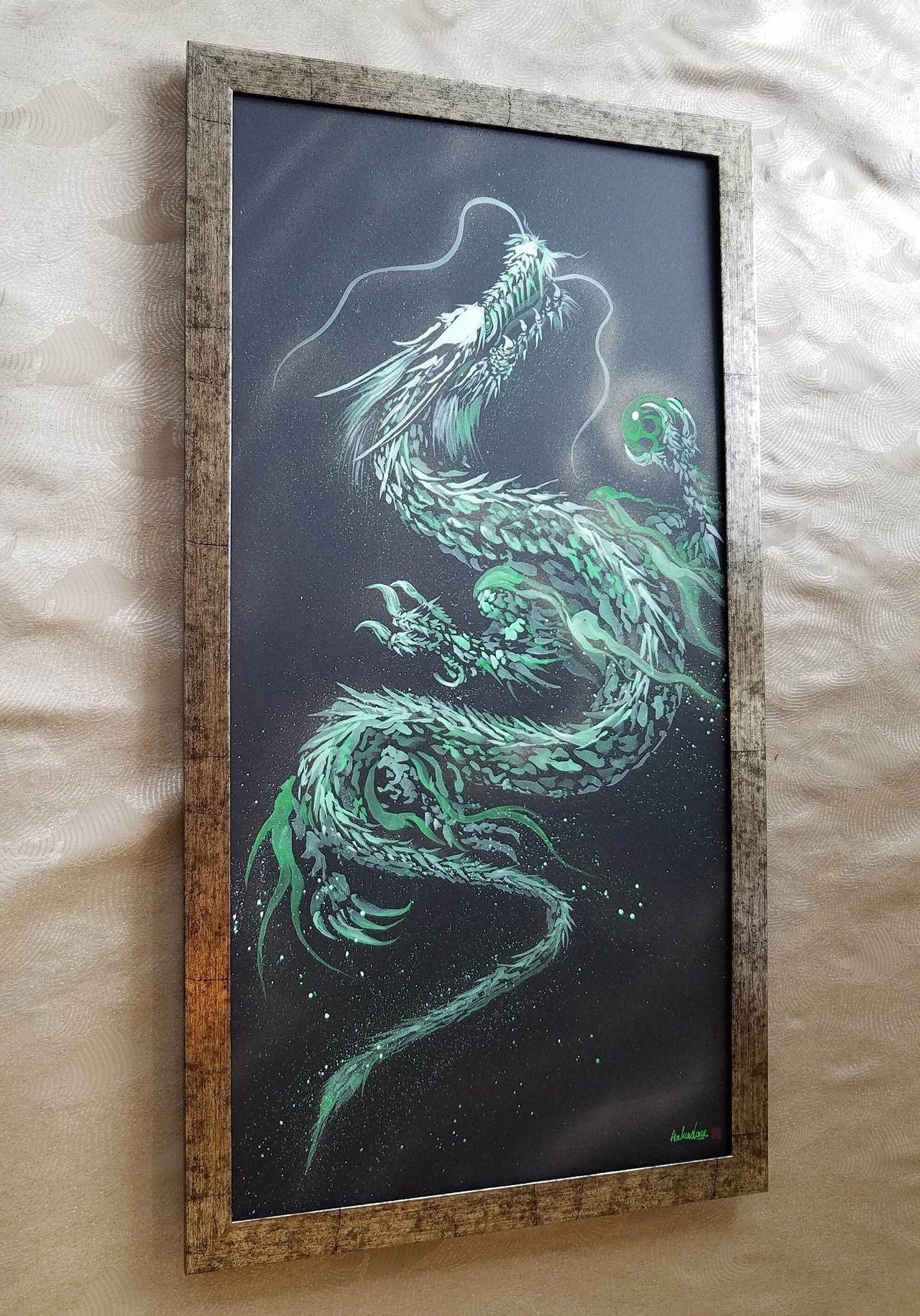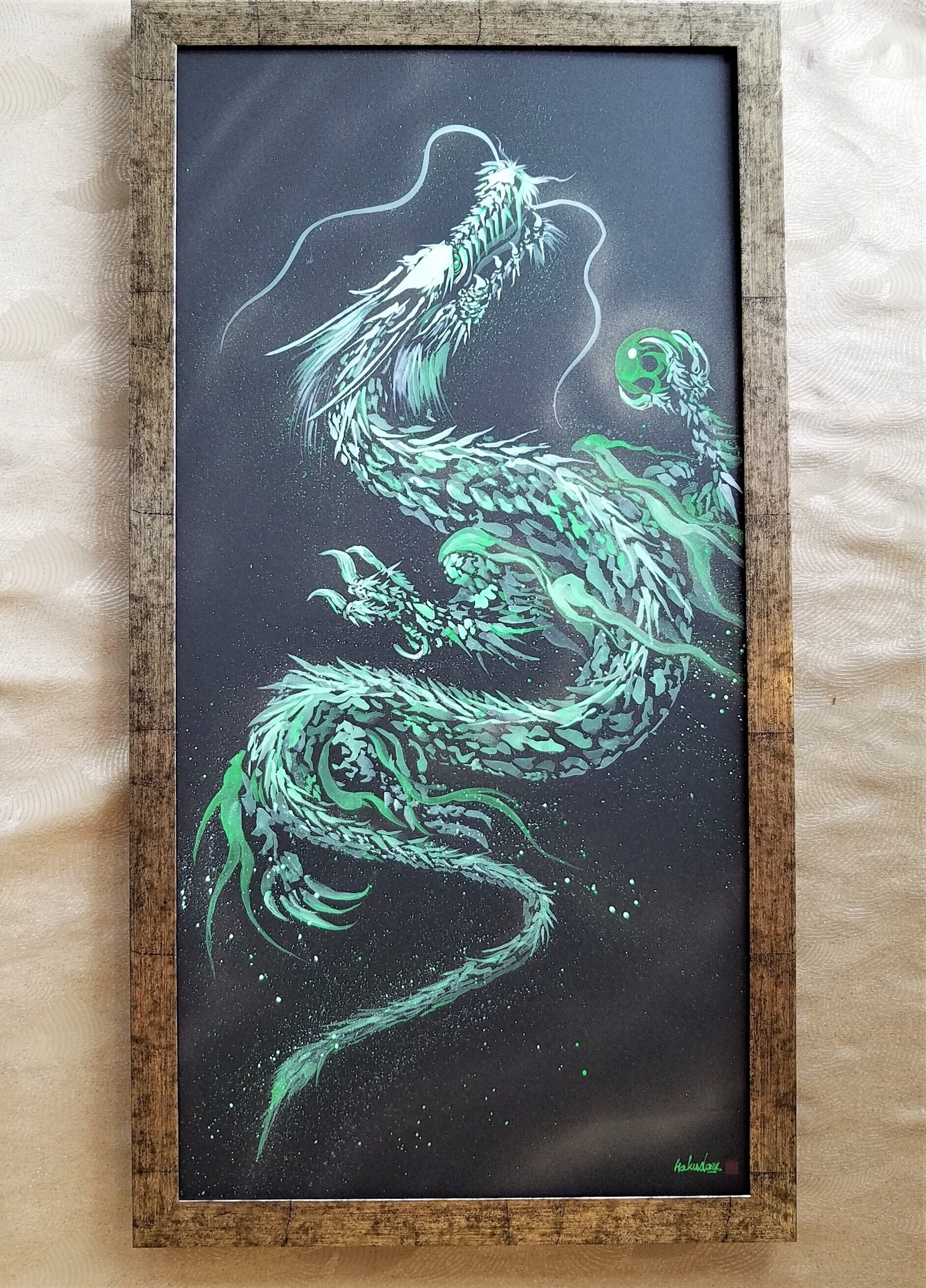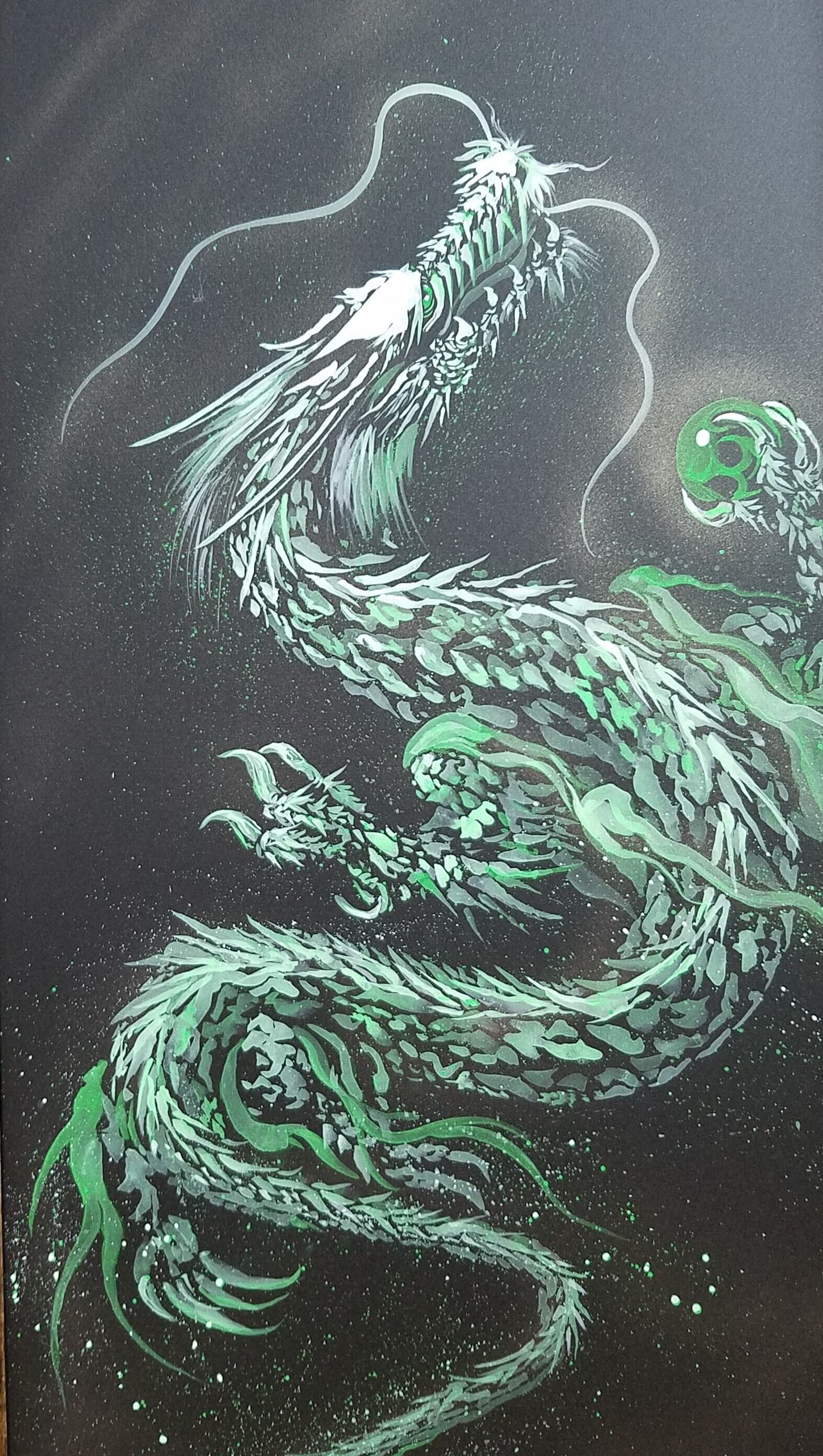 白色がすこーし多めで、白龍のイメージも残しつつ描いた作品で、今まで以上に同体のうねりを出して’’うねうね’’動きを表現していて、画面の中から今にも飛び出すぞ!という躍動感がありますね。