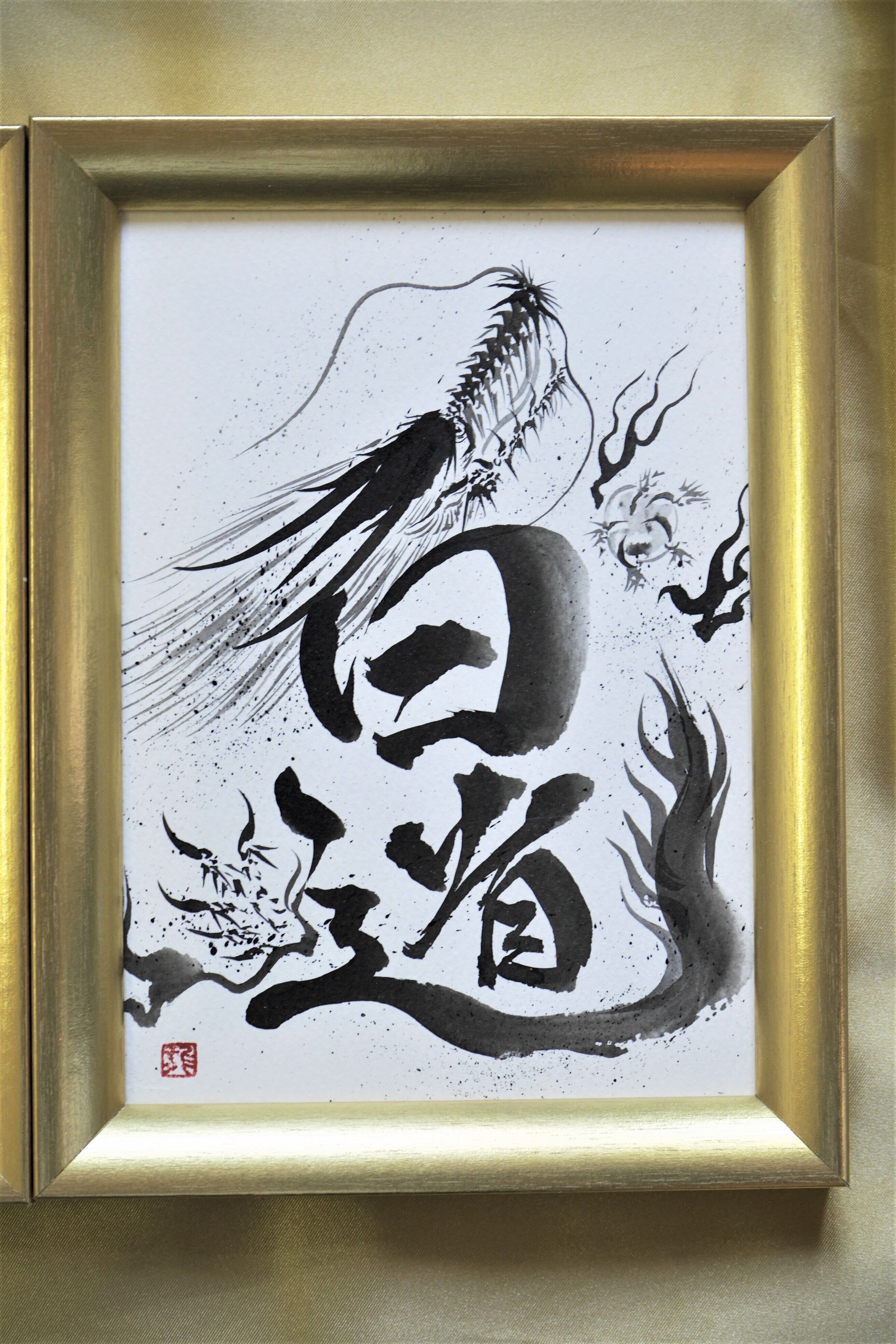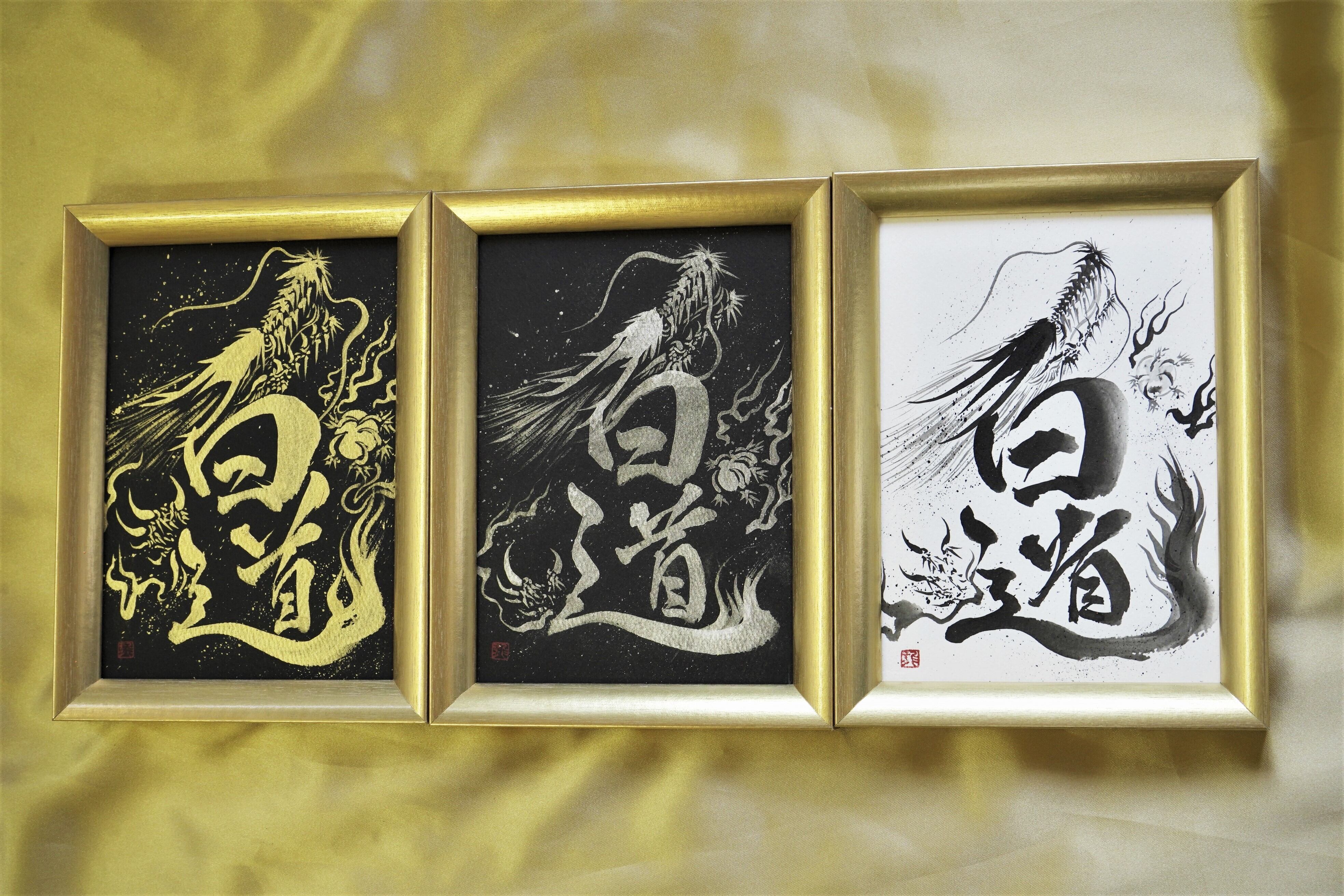 一筆で美しい龍の姿を描いた直筆オーダーメード。金や銀、墨や色などのセレクトも可能。2Lサイズで存在感も抜群。