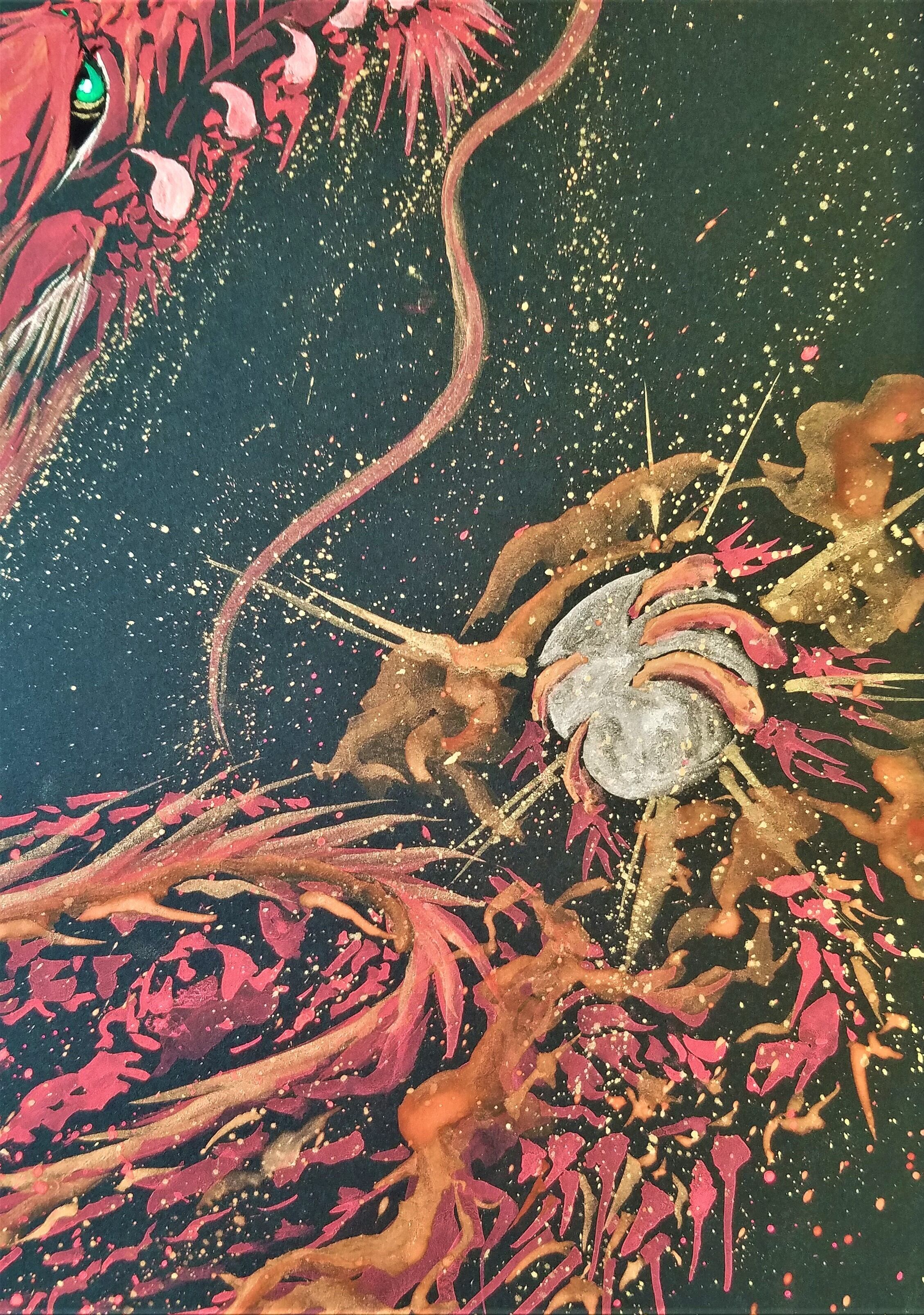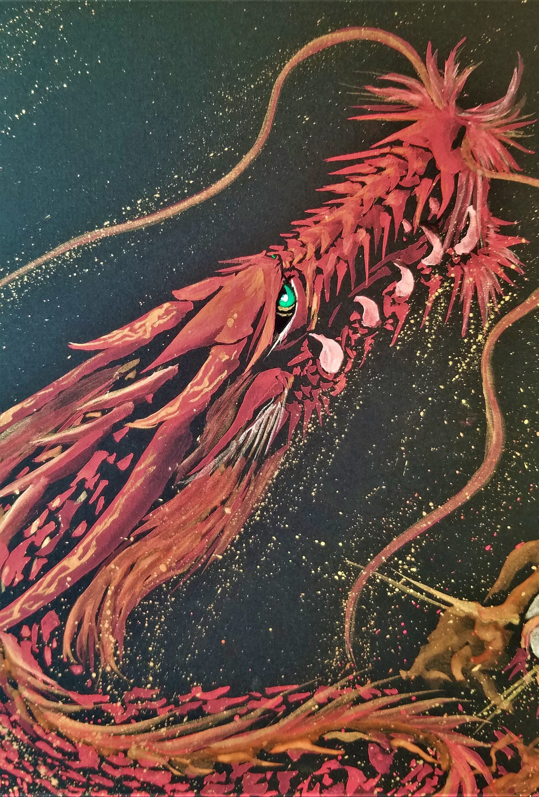 最強の赤い龍が躍動して天に昇っていく姿を描きました。