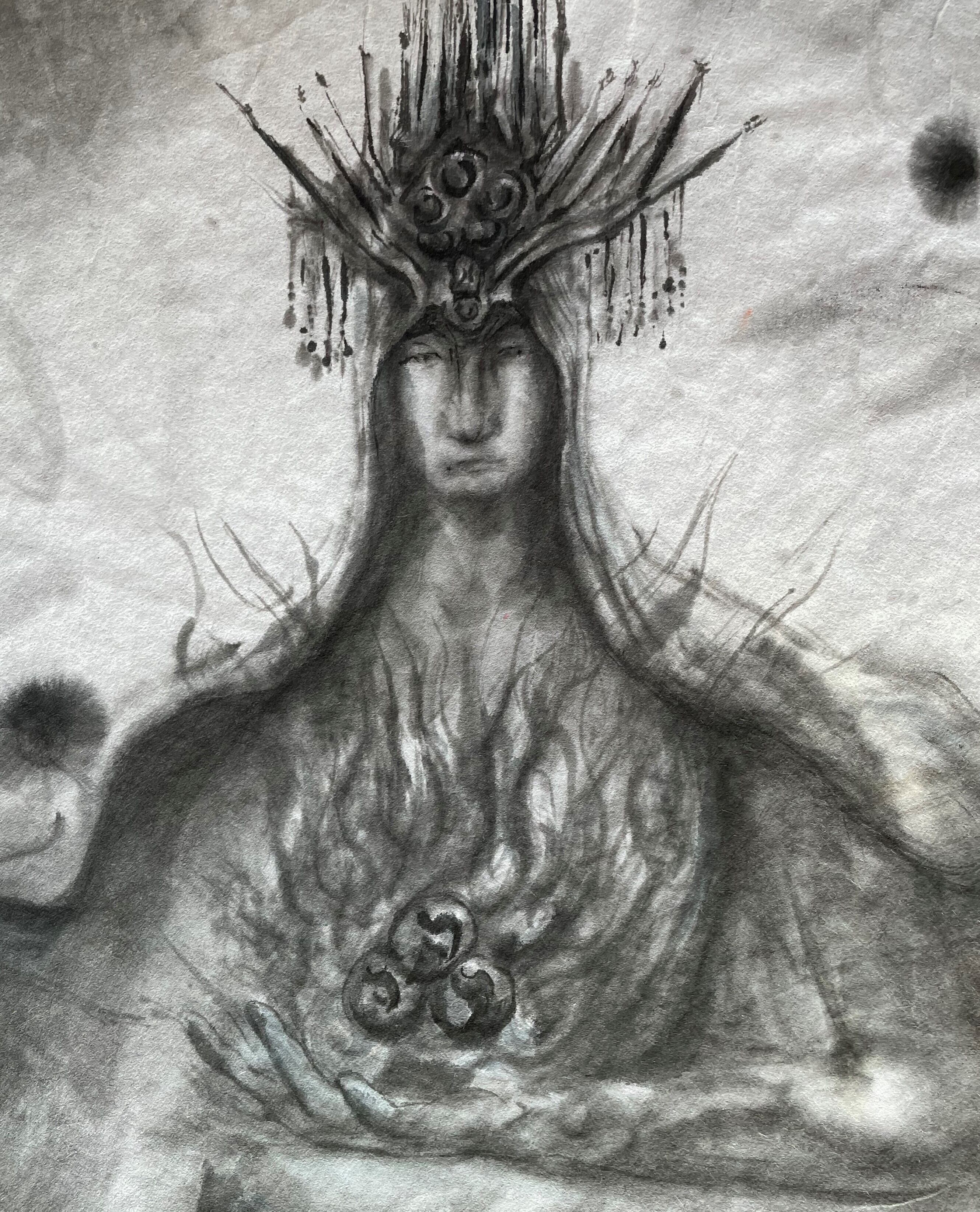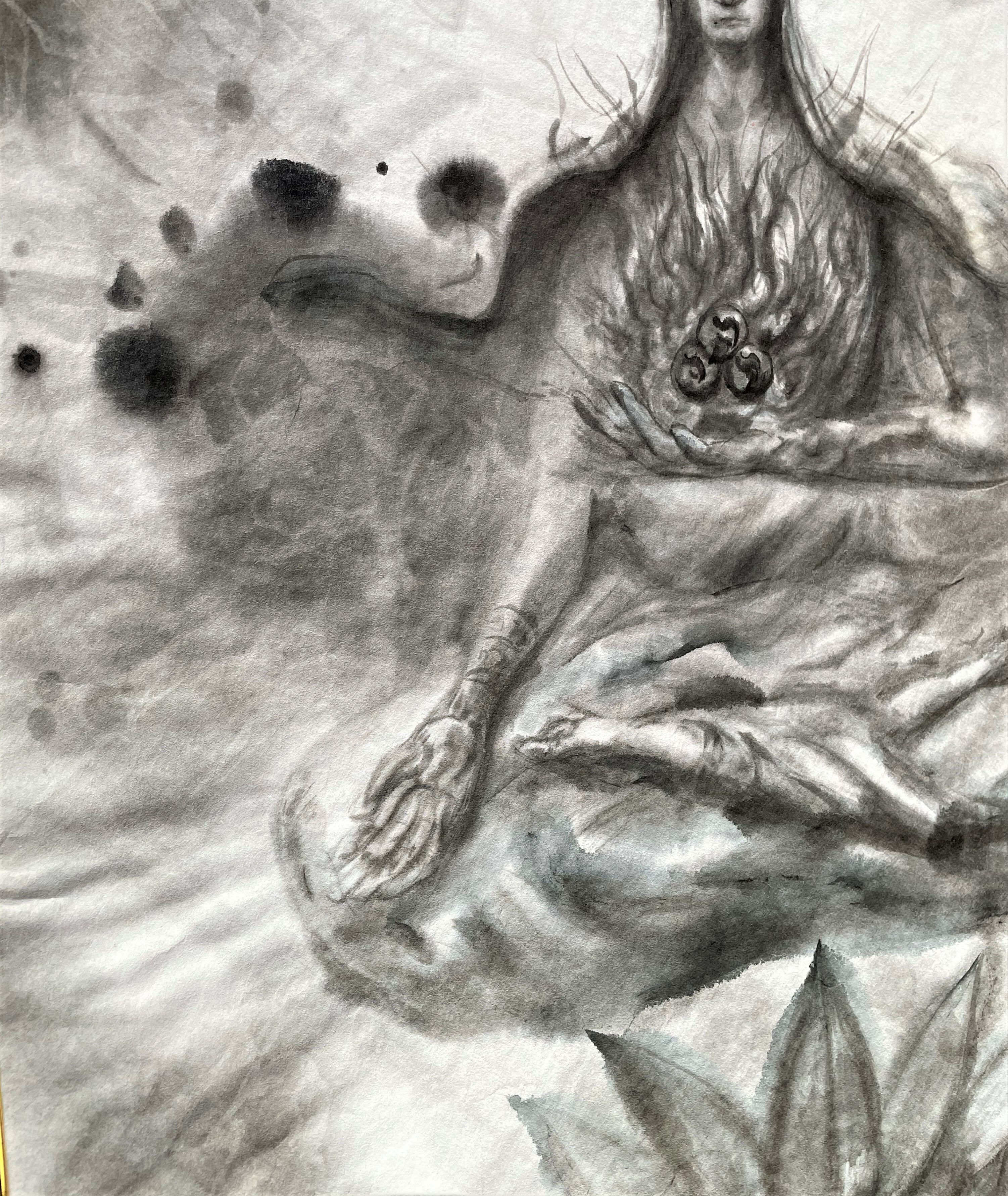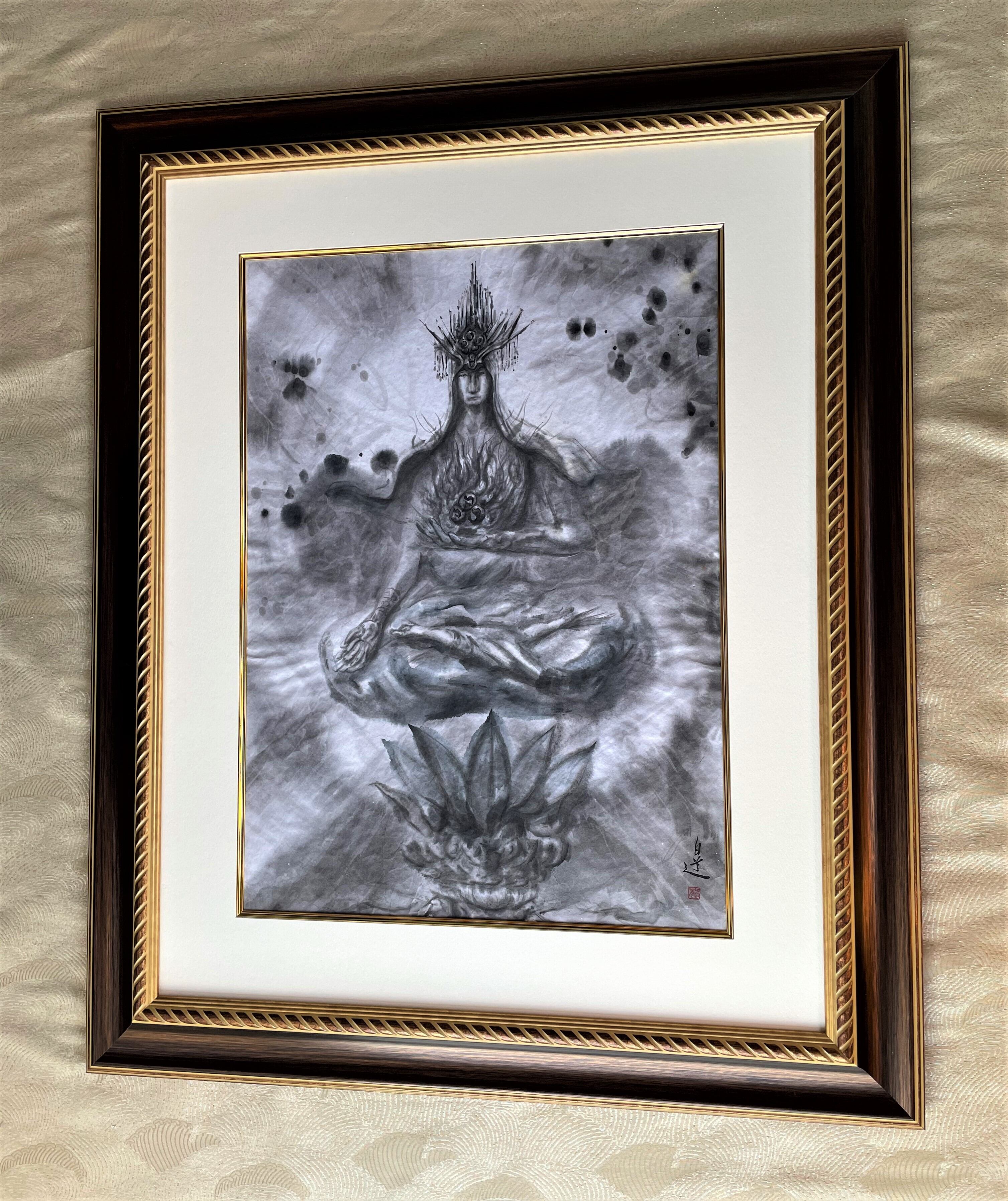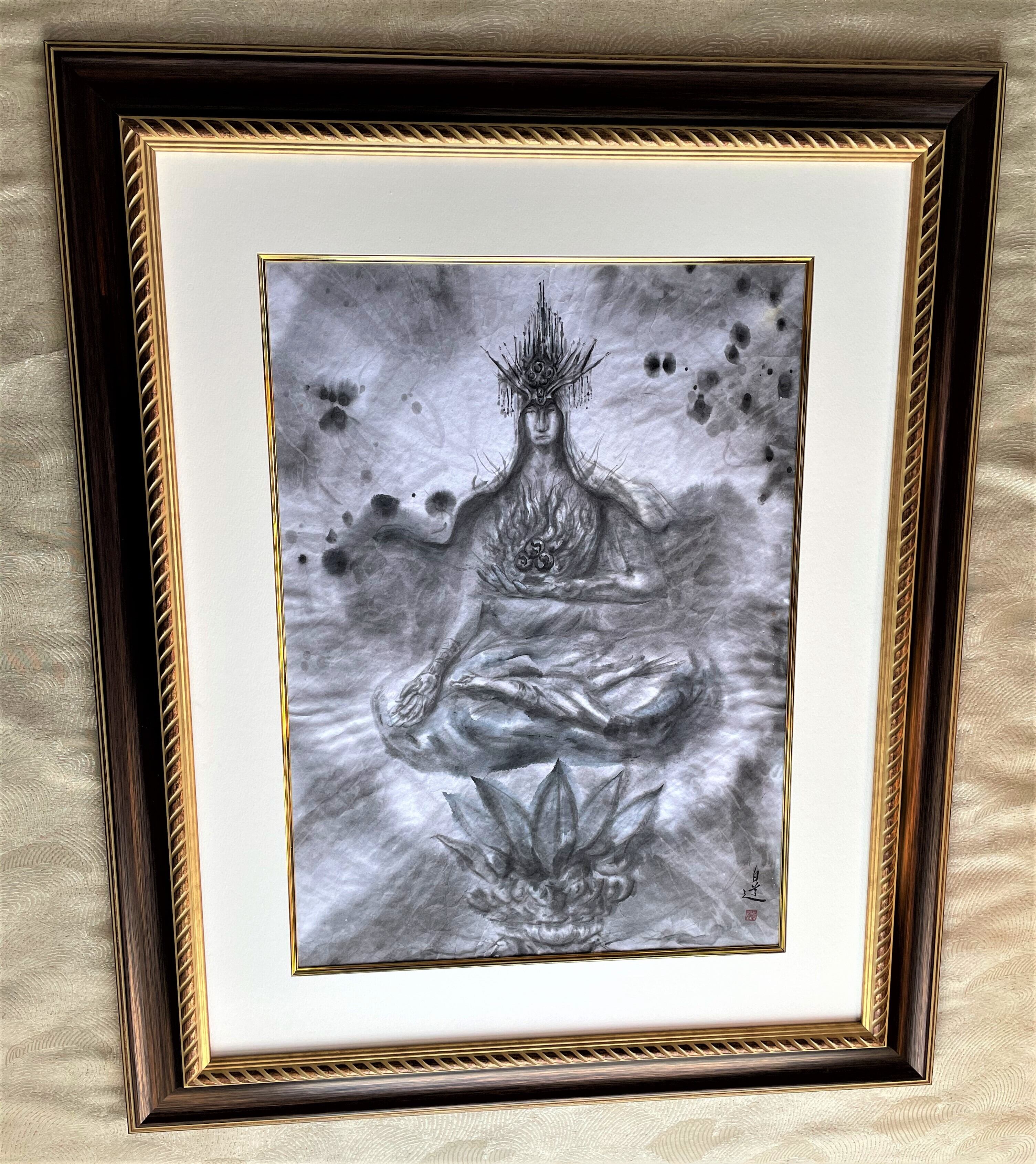 ☆「虚空蔵菩薩」丑寅(真筆証明書付き)仏 墨絵 明王 絵画 ART 直筆作品