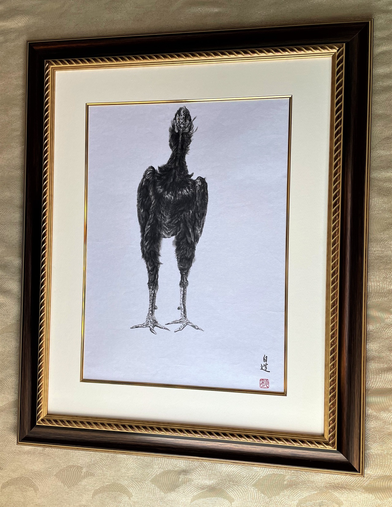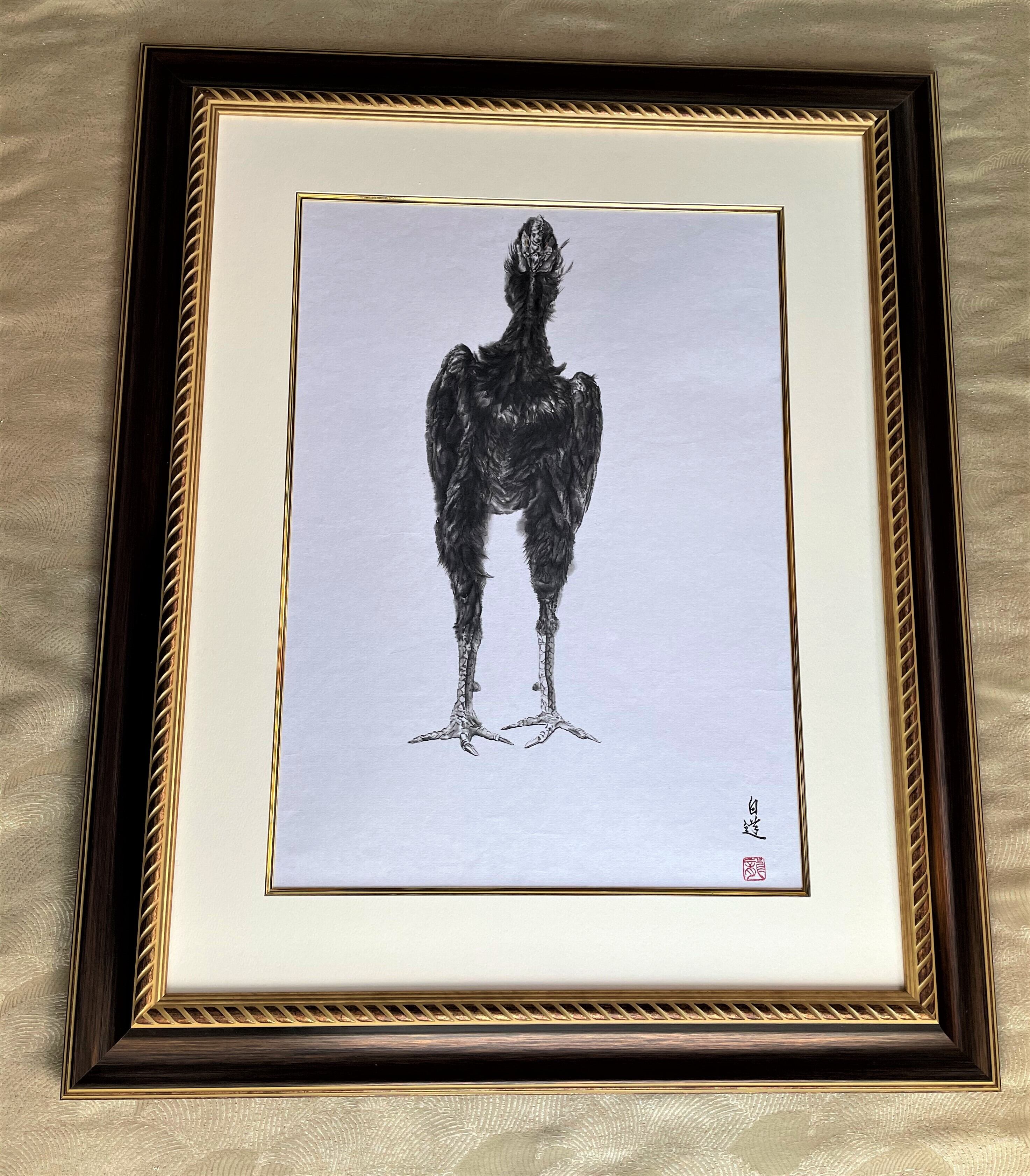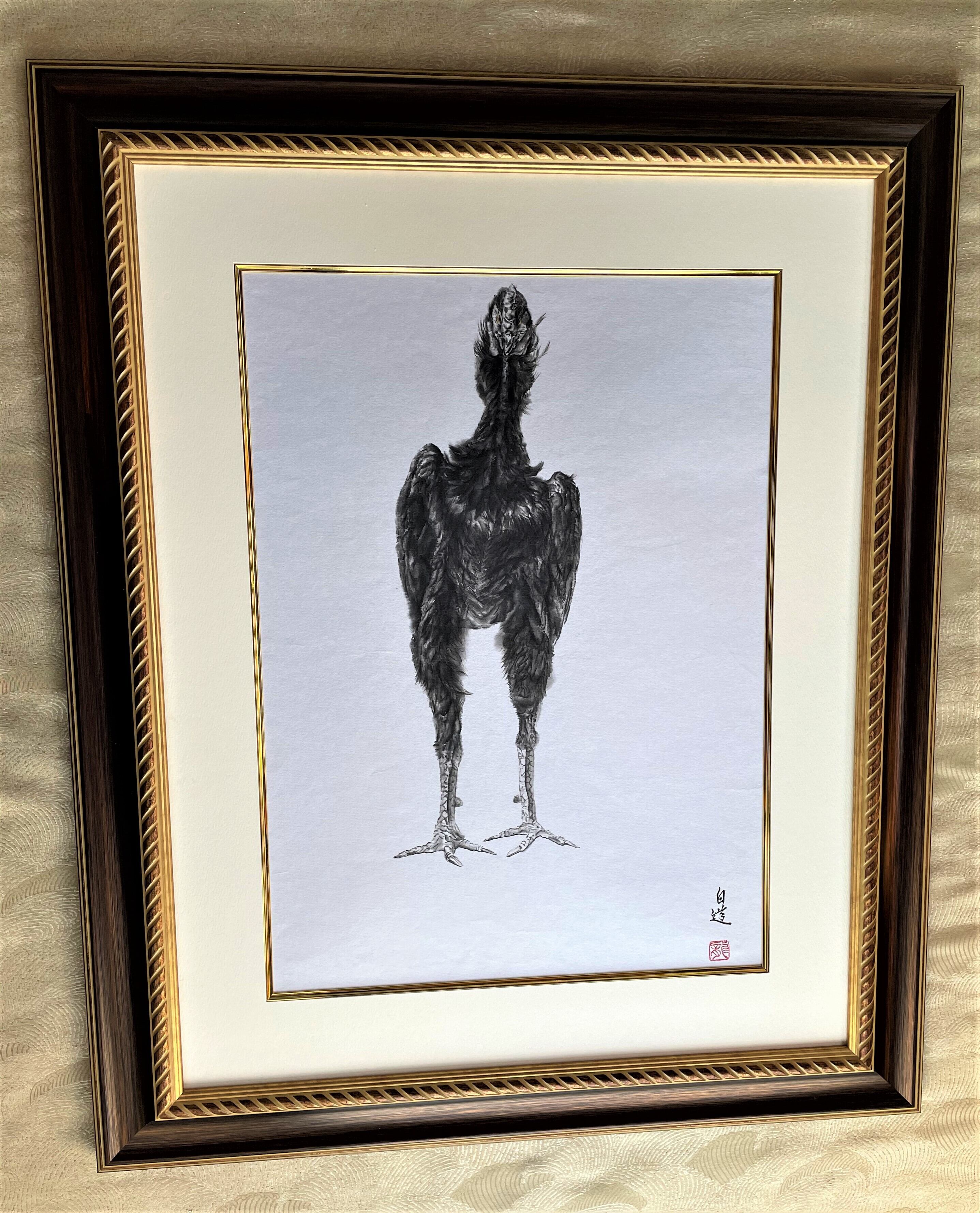 ☆「軍鶏」(シャモ)(真筆証明書付き)鳥 墨絵 絵画 ART 直筆作品