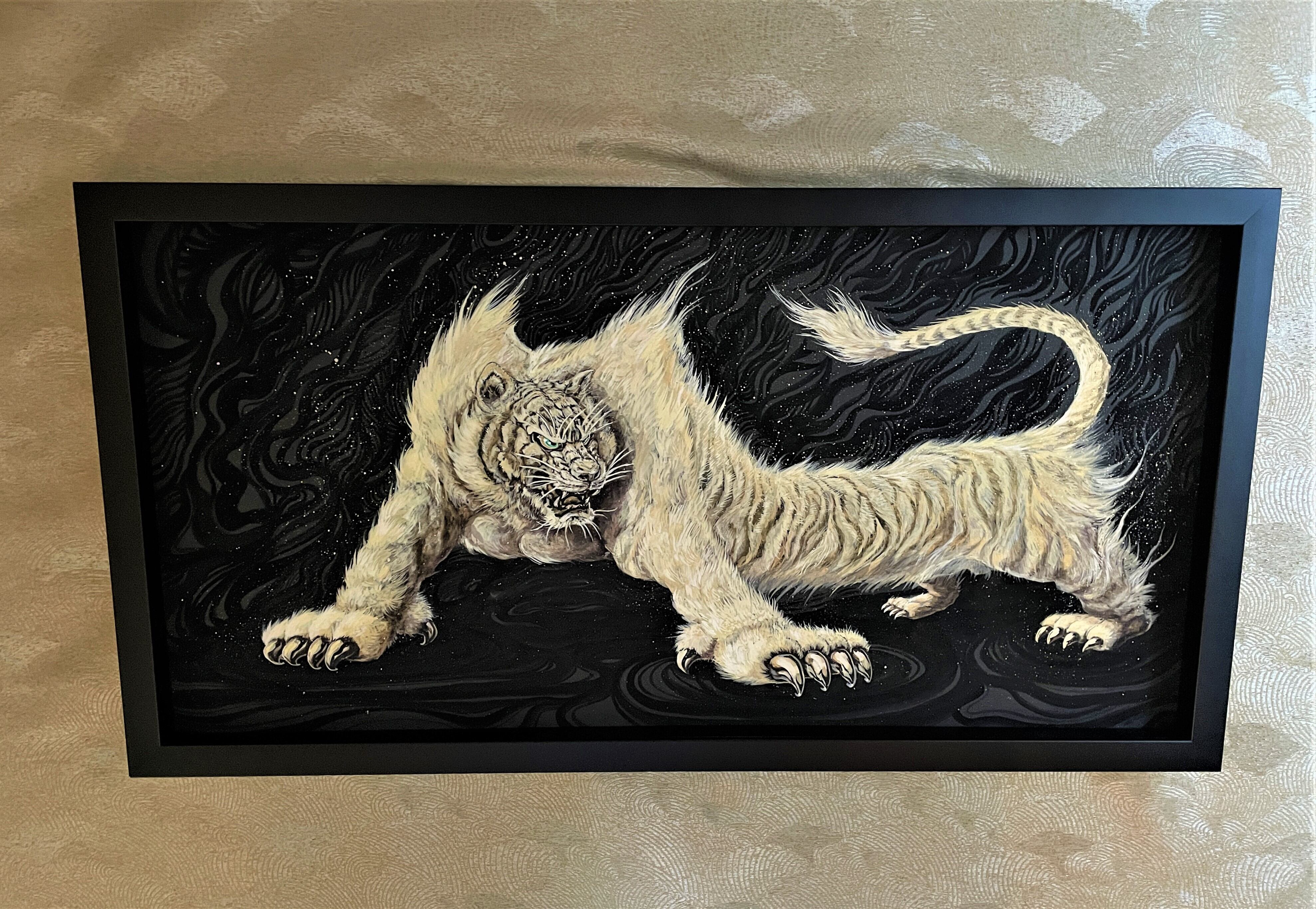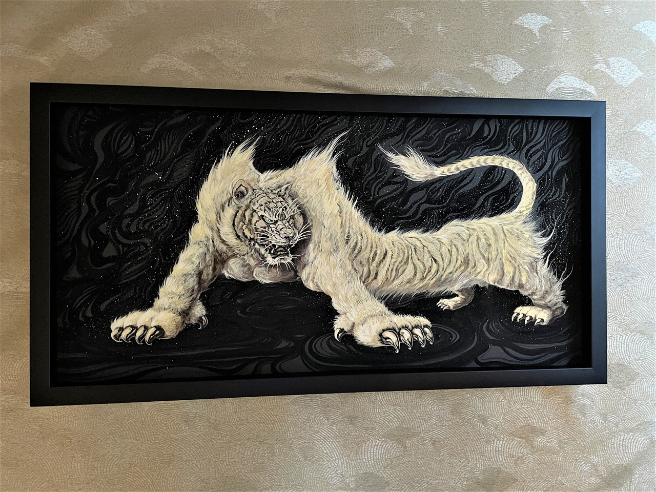 虎の獣の気配と神の威厳を醸し出し佇む白虎を細部まで丁寧に描き上げました。