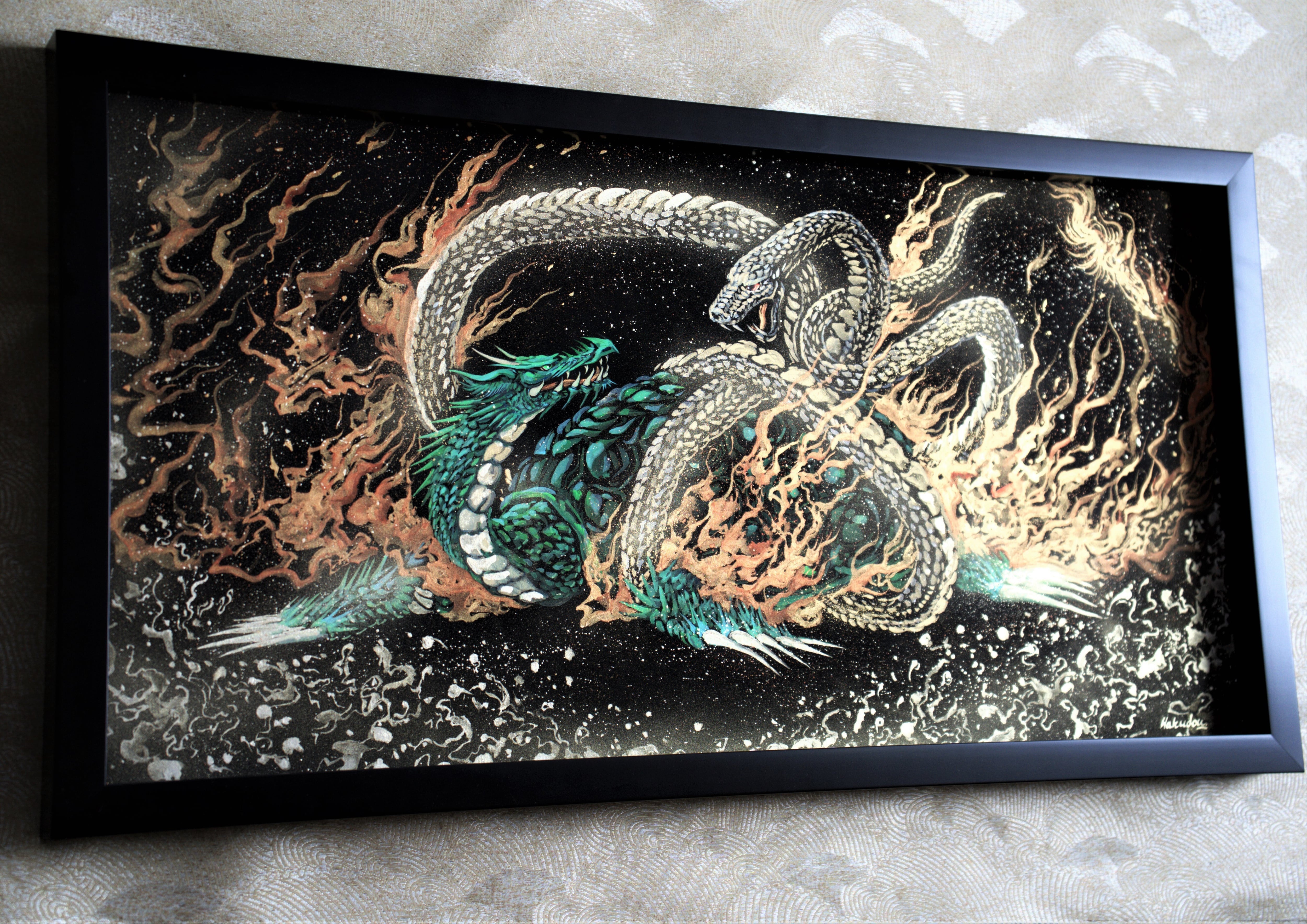 ☆「炎の玄武」(真筆証明書付き)龍 玄武 絵 絵画 直筆作品 真作 送料無料♪