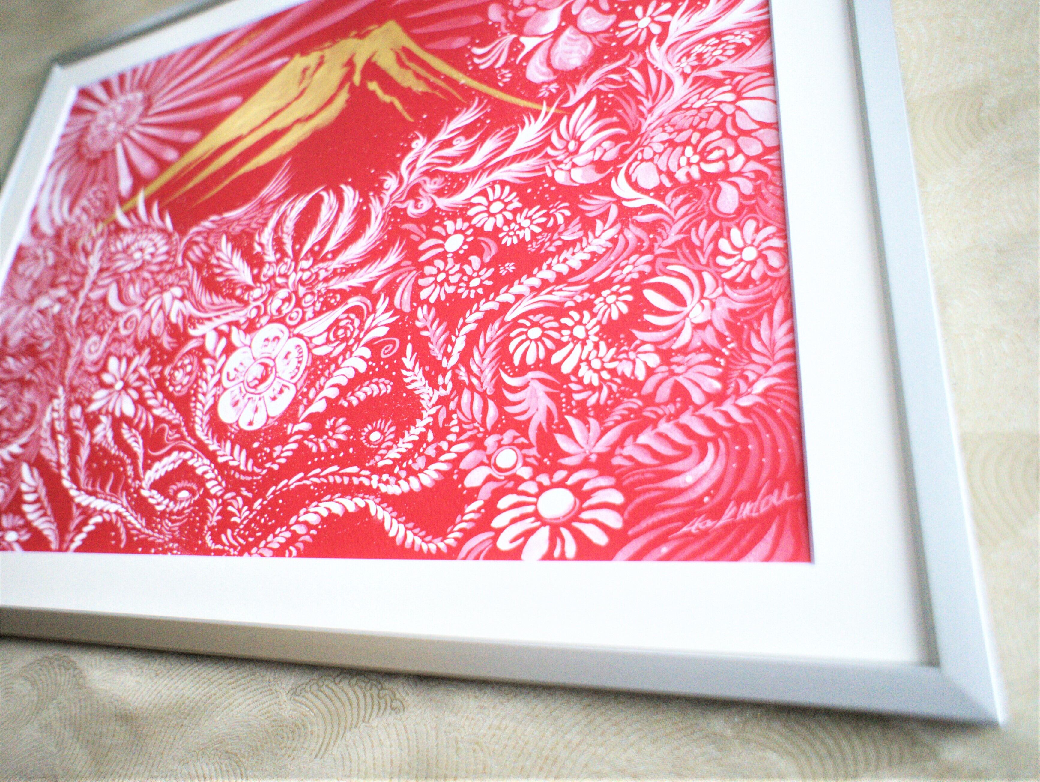 ☆「Happy FUJIYAMA」赤富士 富士山 龍 絵 直筆作品 真筆証明付き 送料無料♪ 絵師白道 Hakudouroom.