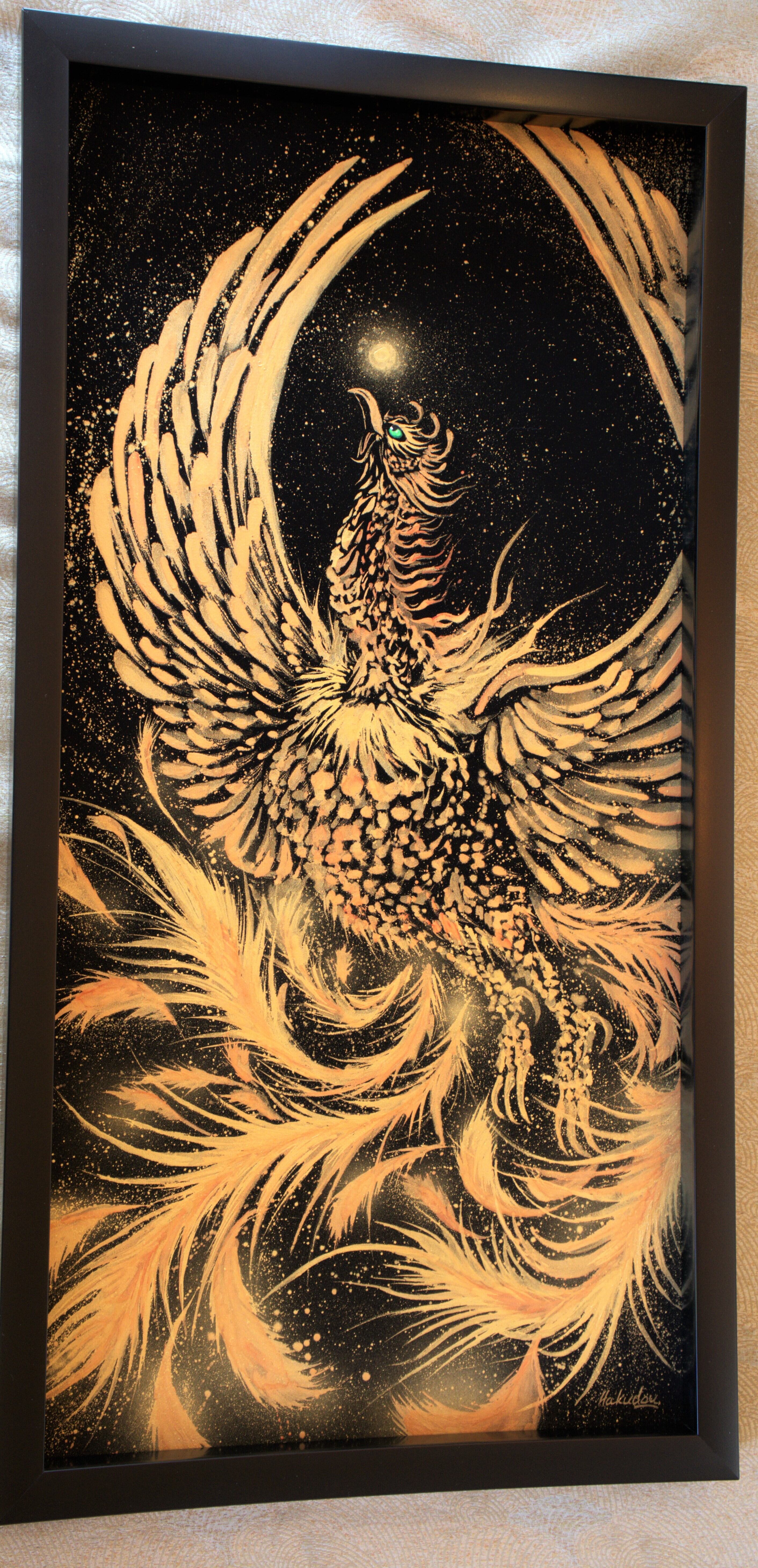 ☆「光玉朱雀」 朱雀 上昇運 直筆 真作 真筆証明書付き 送料無料♪