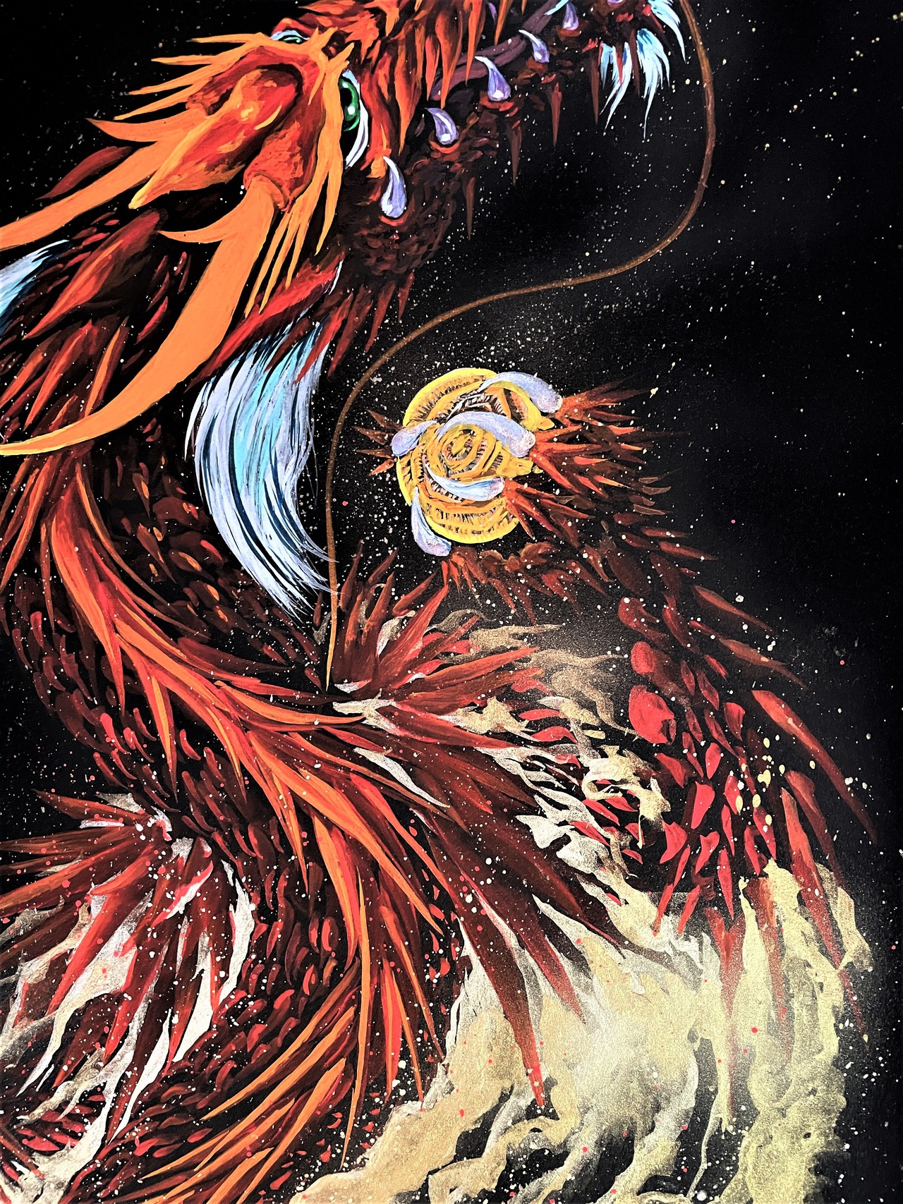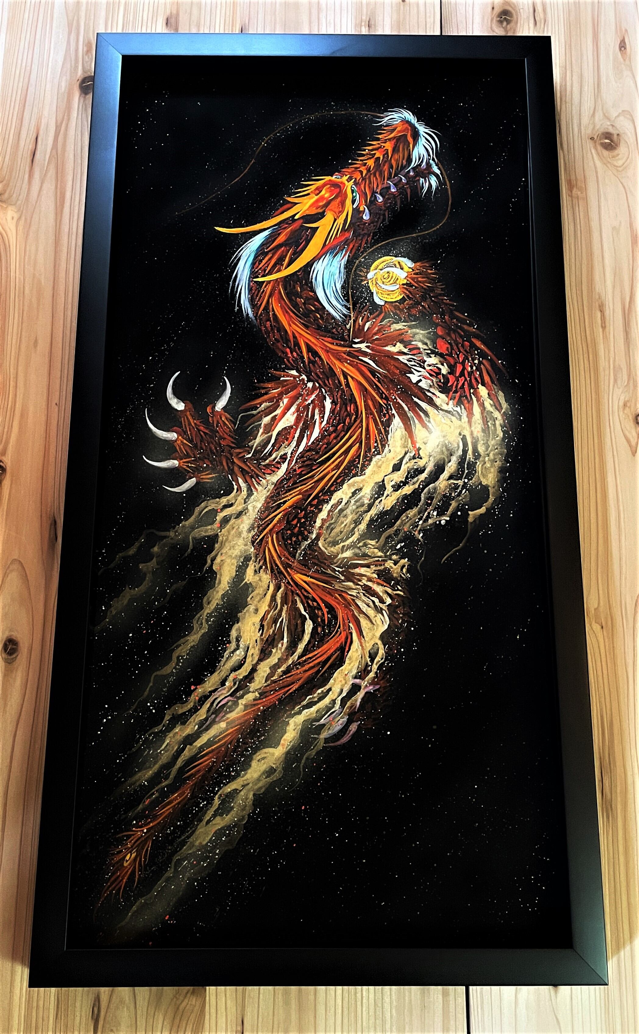 ☆「朱龍(弐号龍)」(直筆作品) 龍 絵 絵画 真筆証明書付き ART Hakudouroom☆絵師白道 Hakudou 送料無料♪