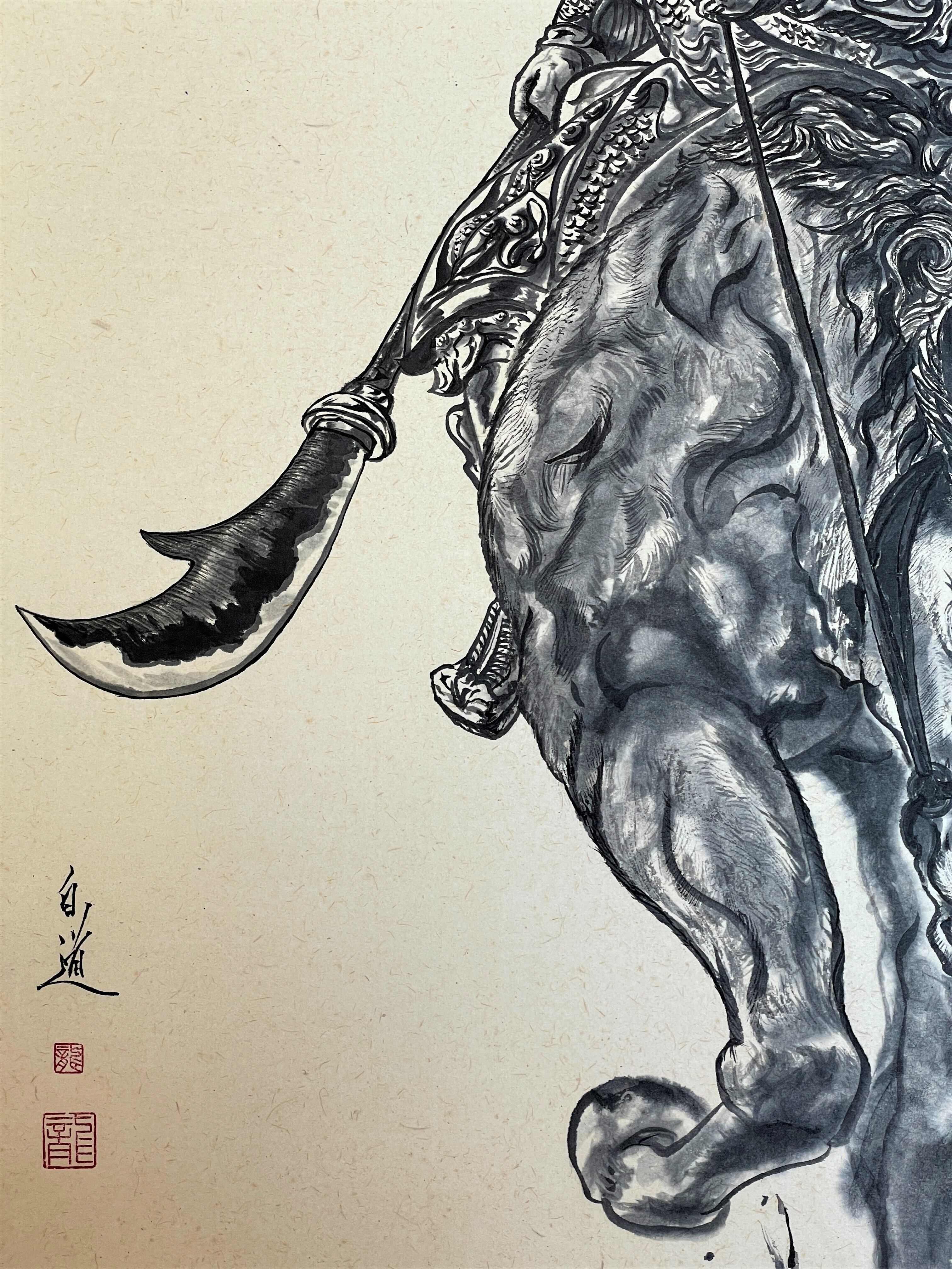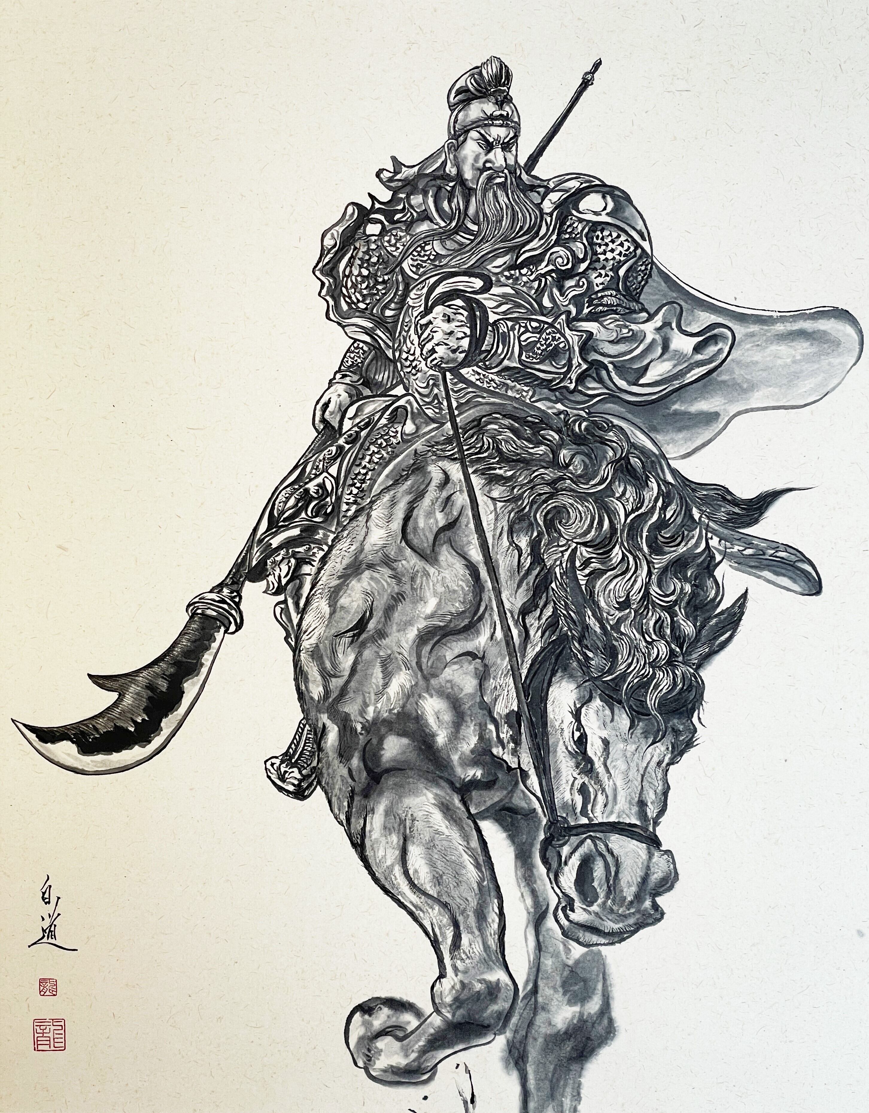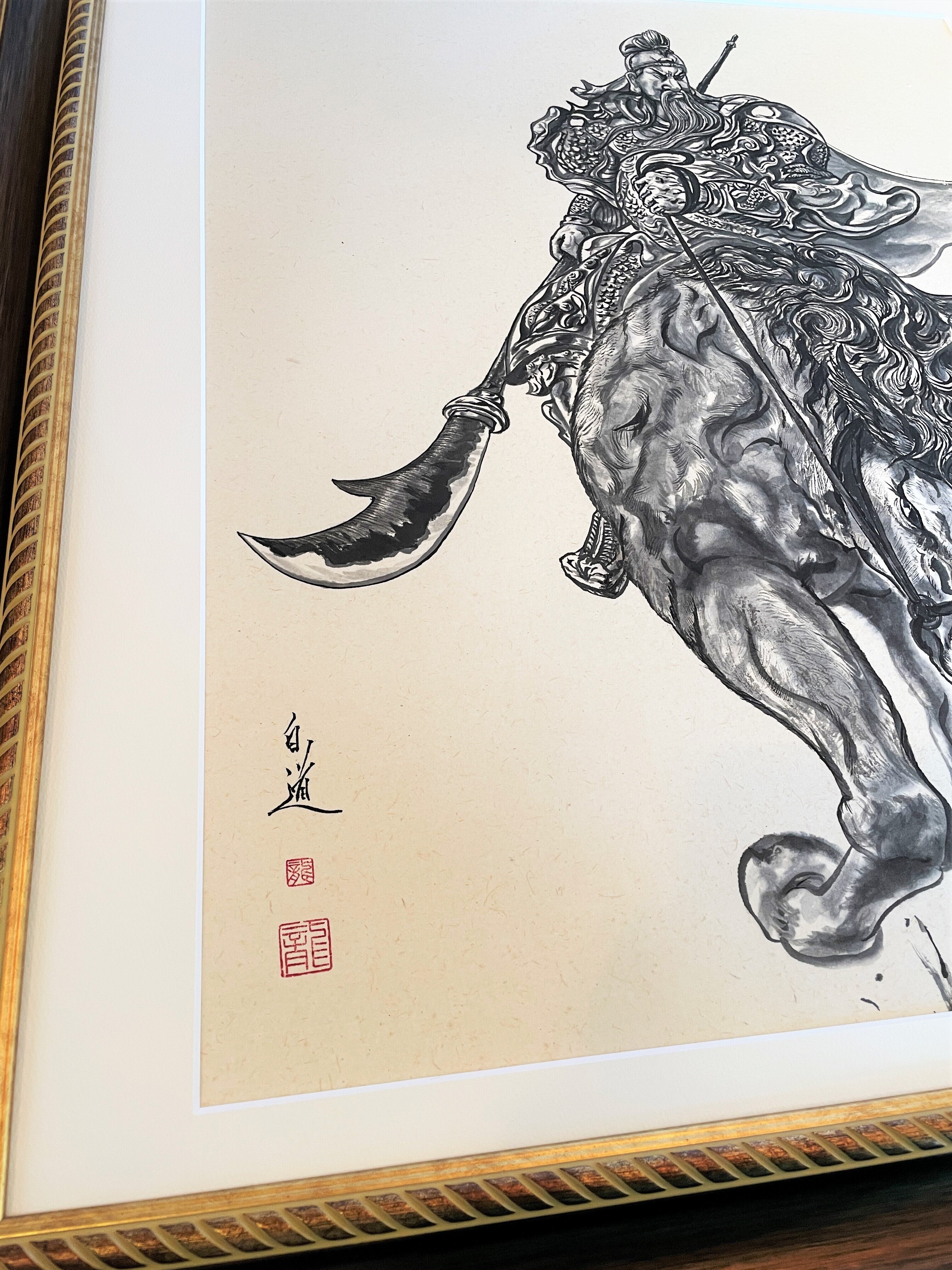 ☆絵師白道☆「関羽・騎乗」墨(直筆作品)真筆証明書付 送料無料♪ / 馬 絵 ART Hakudouroom.