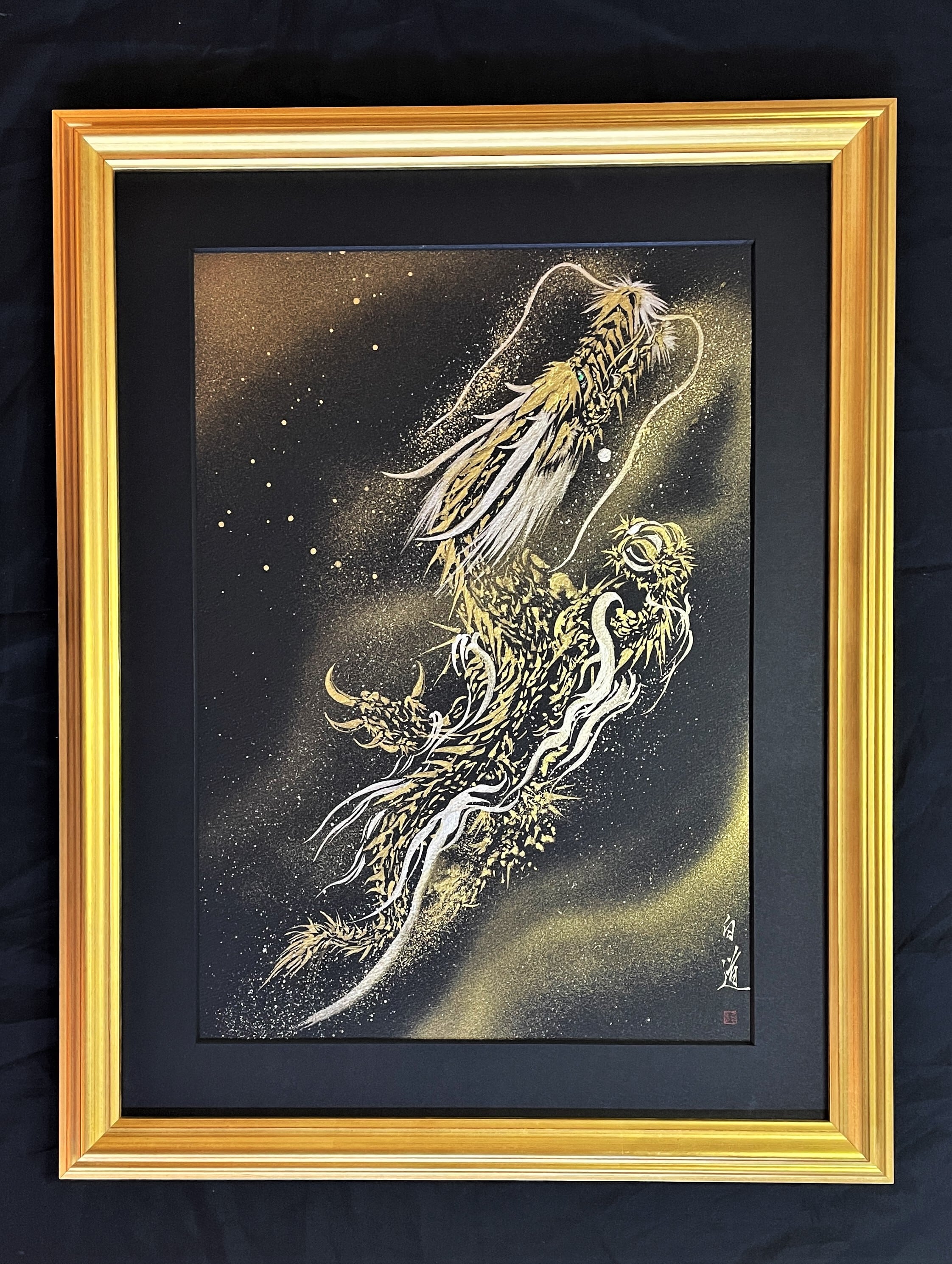 ☆画家 白道 「金昇龍」直筆作品 真筆証明書付 高級額装 箱あり/Hakudouroom. ART 絵 絵画 高級額装 龍