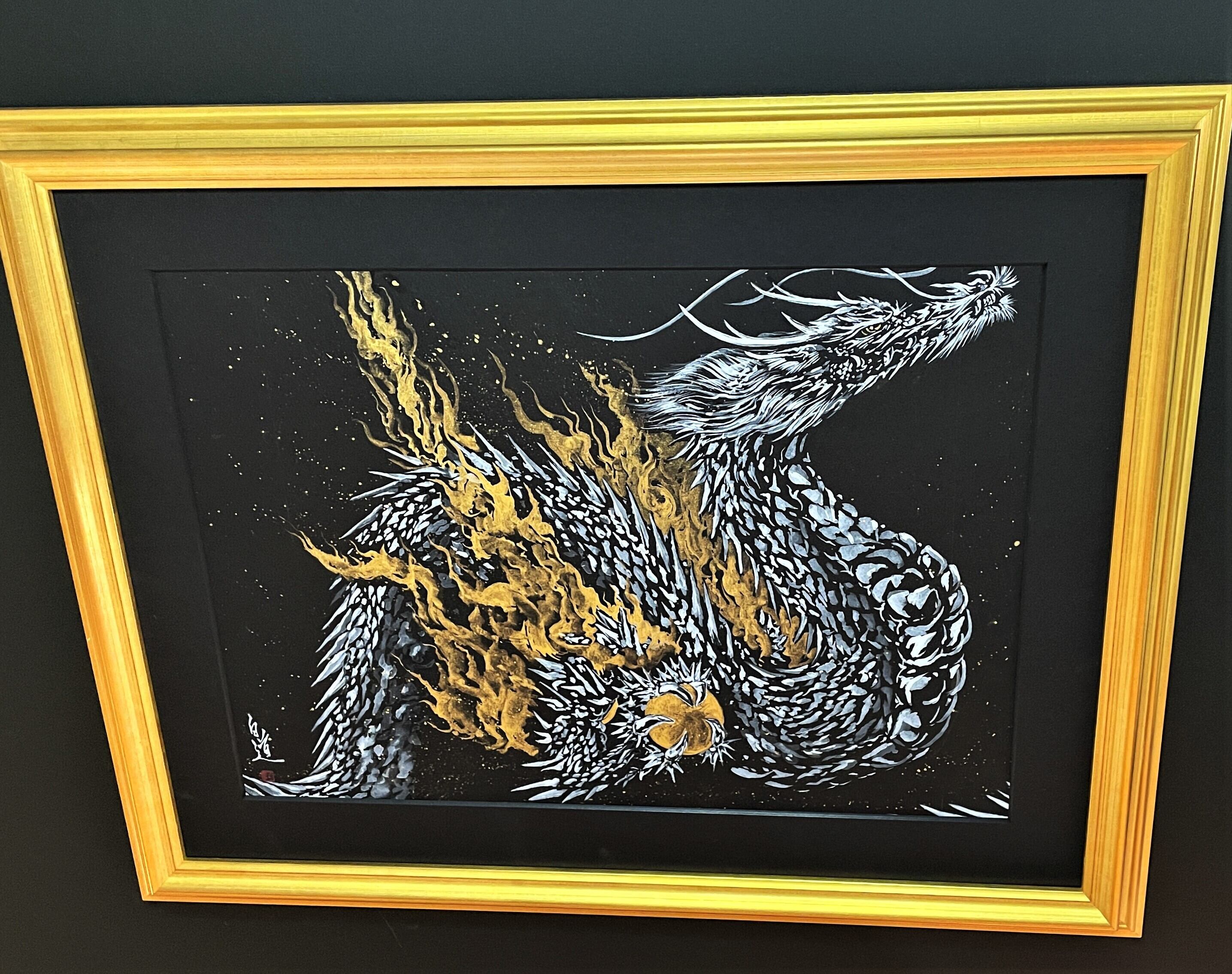 優雅に雲海を進んでいるイメージで白龍を描きました。