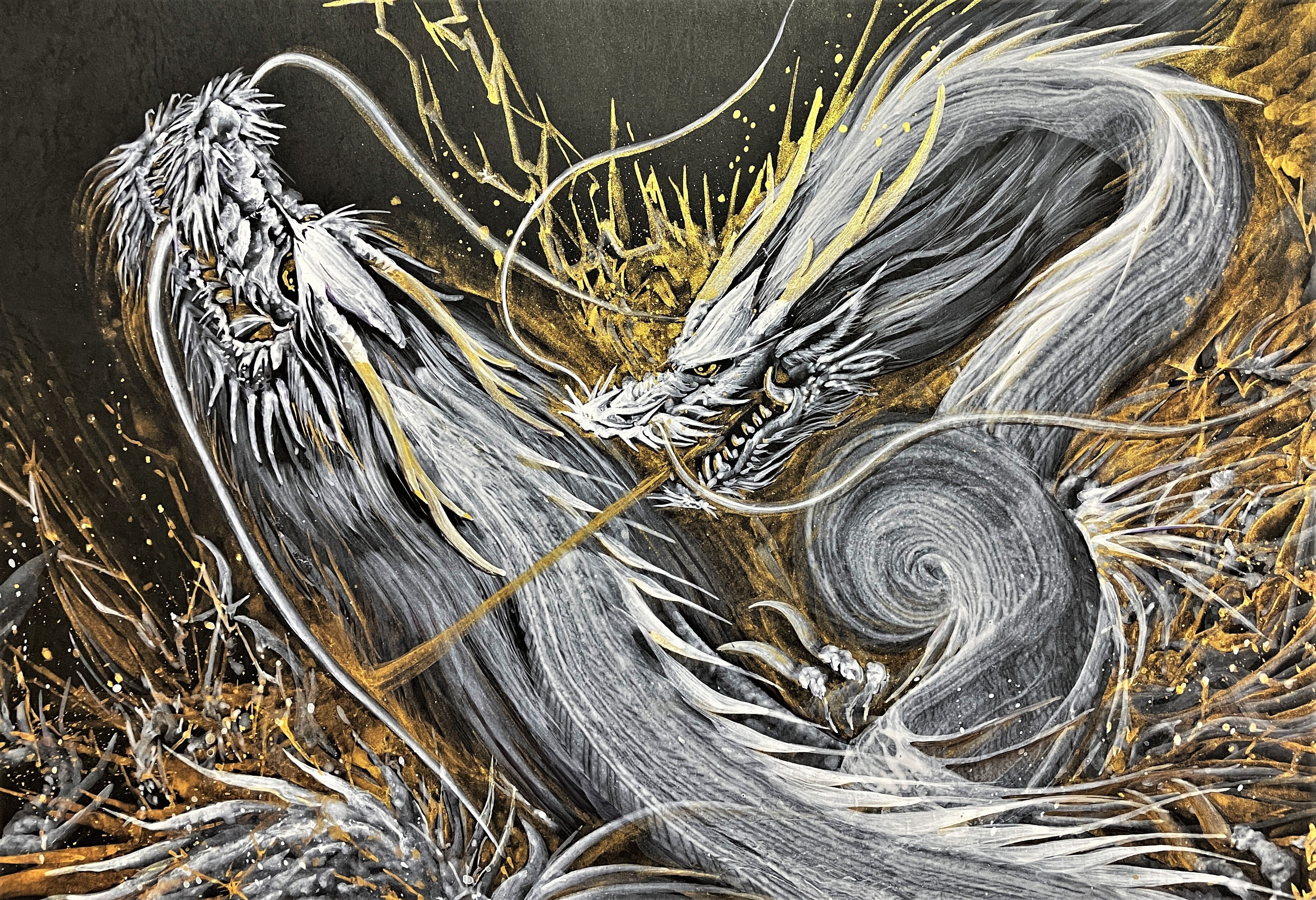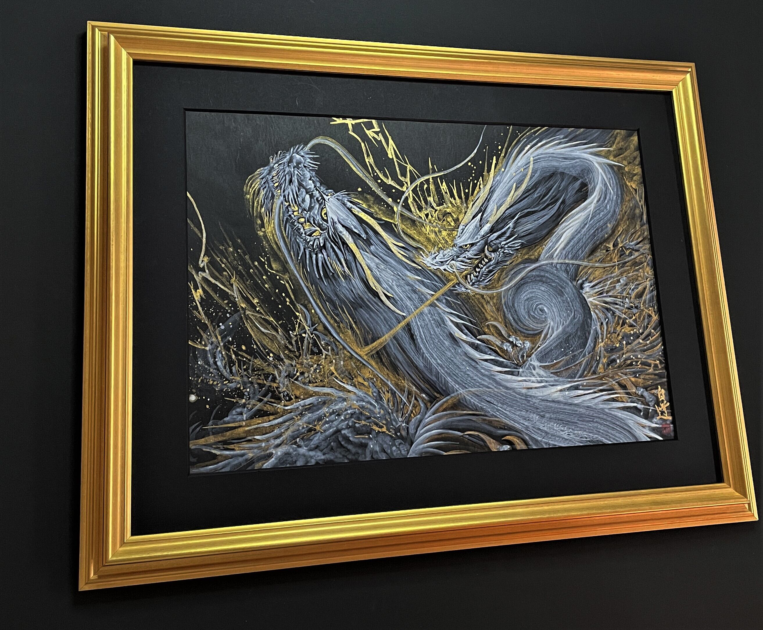 ☆画家 白道 「W 白双龍」直筆作品 真筆証明書付 高級額装 箱あり/Hakudouroom. ART 絵 絵画 高級額装