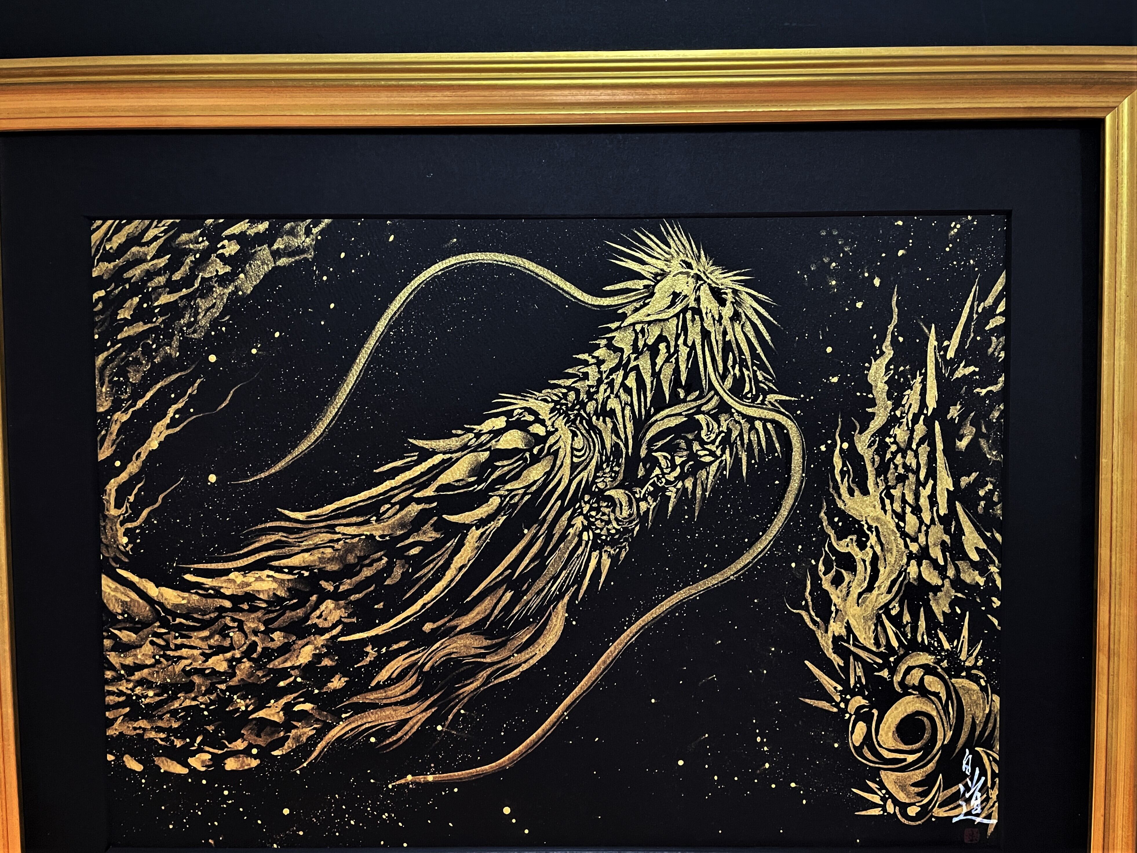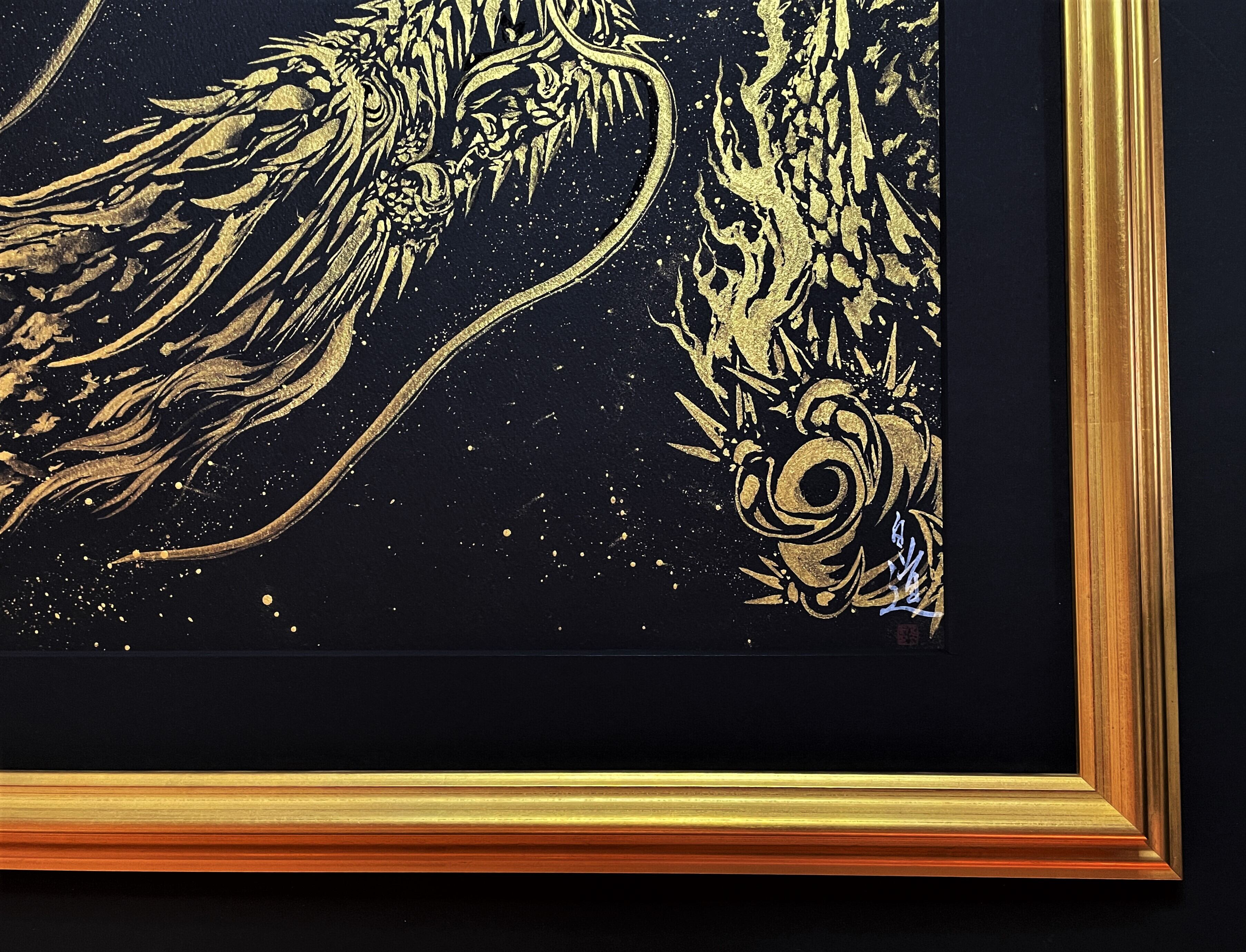 ☆画家 白道 「天空の金龍」直筆作品 真筆証明書付 高級額装 箱あり/Hakudouroom. ART 絵 絵画 高級額装 龍