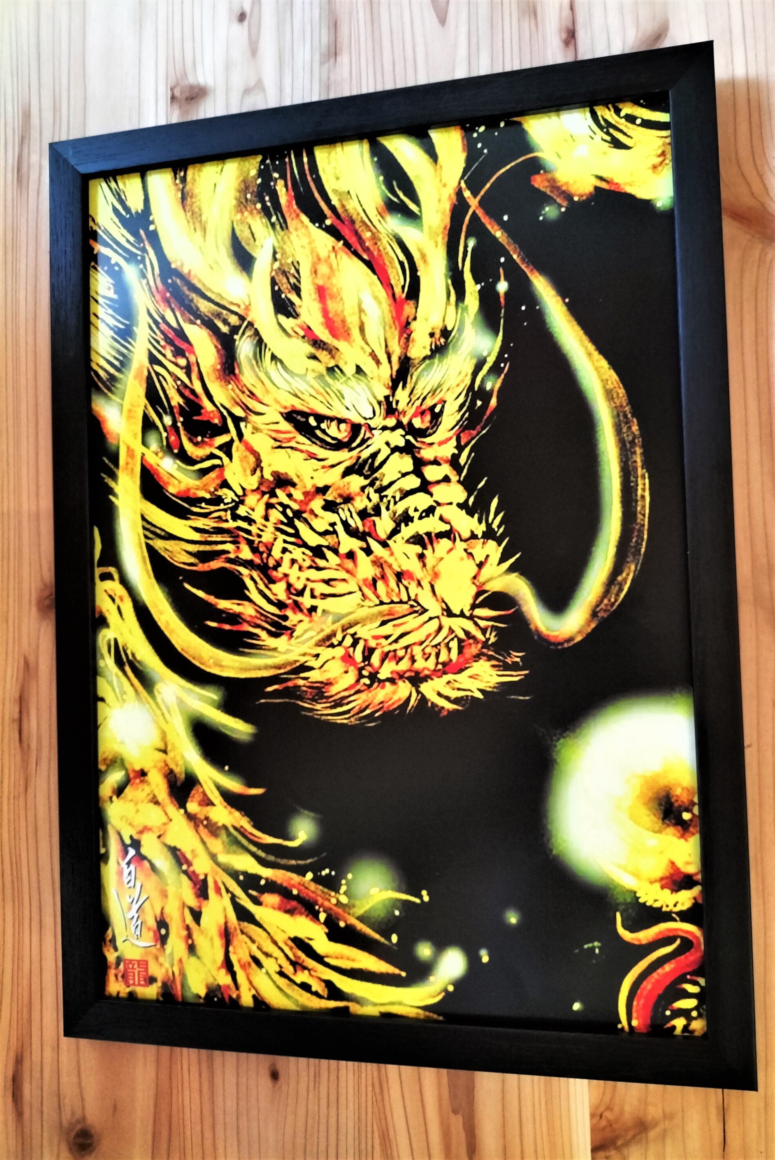 現代芸術家 絵師白道「金龍神」(複製画) 直筆サインあり /Hakudouroom. ART Hakudou 絵 絵画 龍