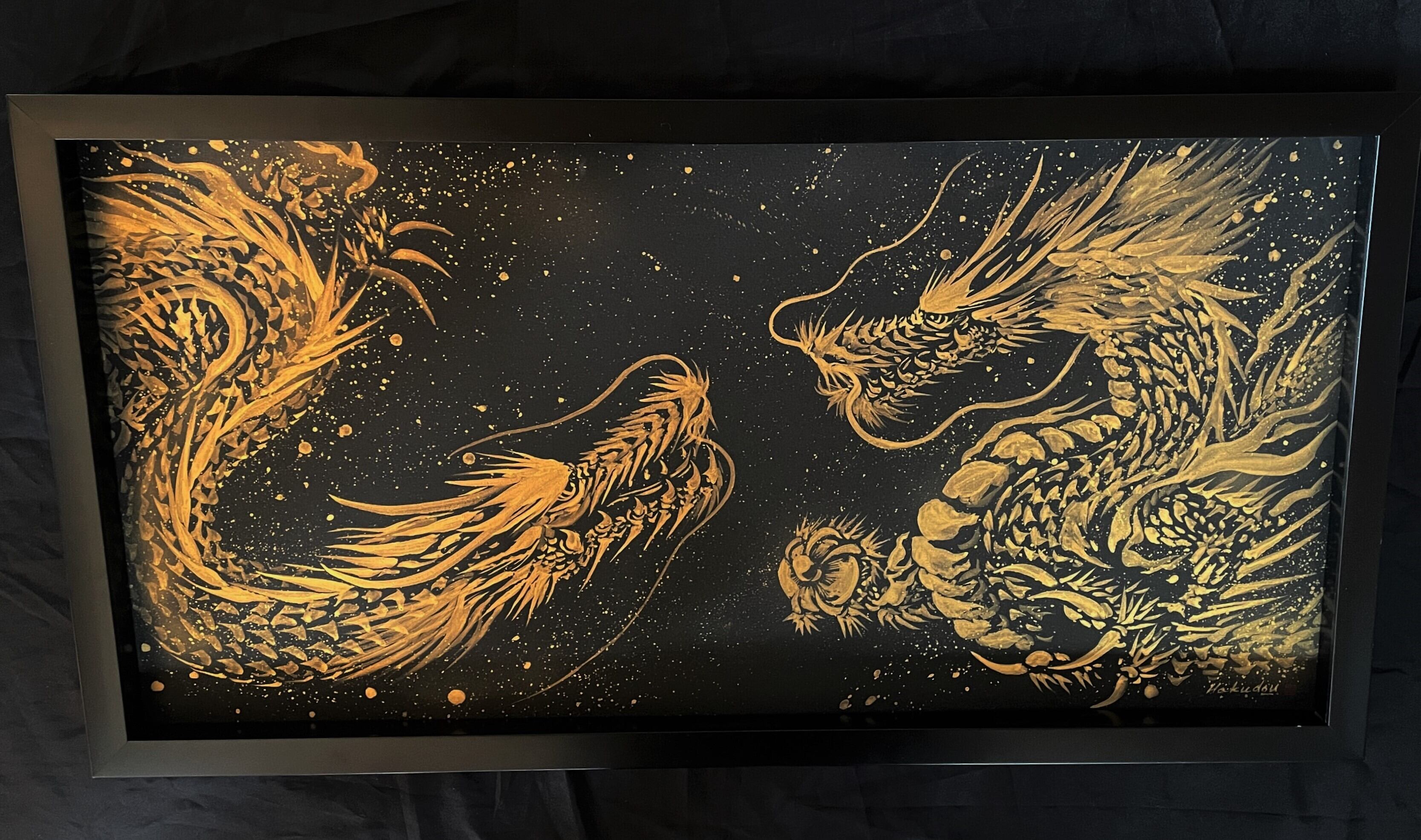 ☆絵師白道 「金双龍」直筆作品 真筆証明書付 高級額装 箱あり/Hakudouroom. ART 絵 絵画 高級額装 龍
