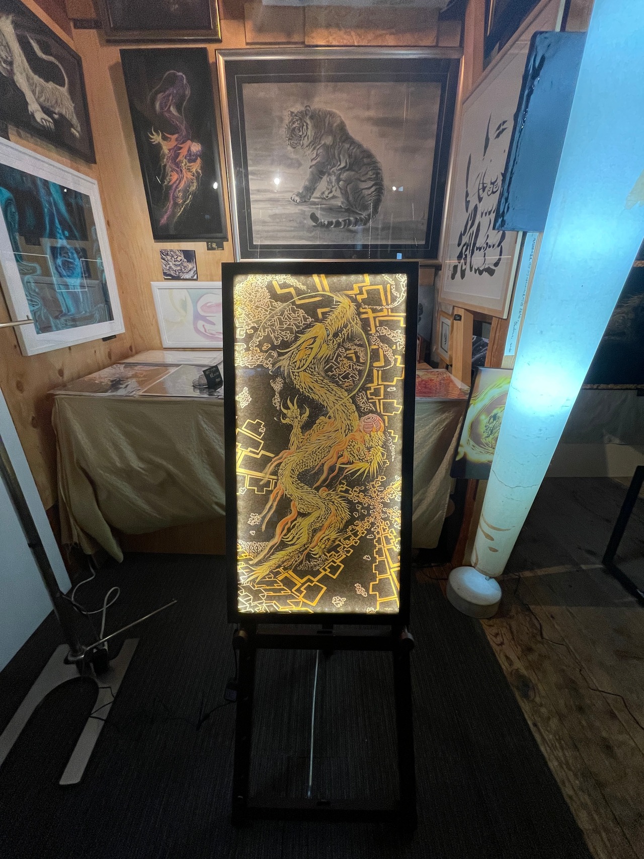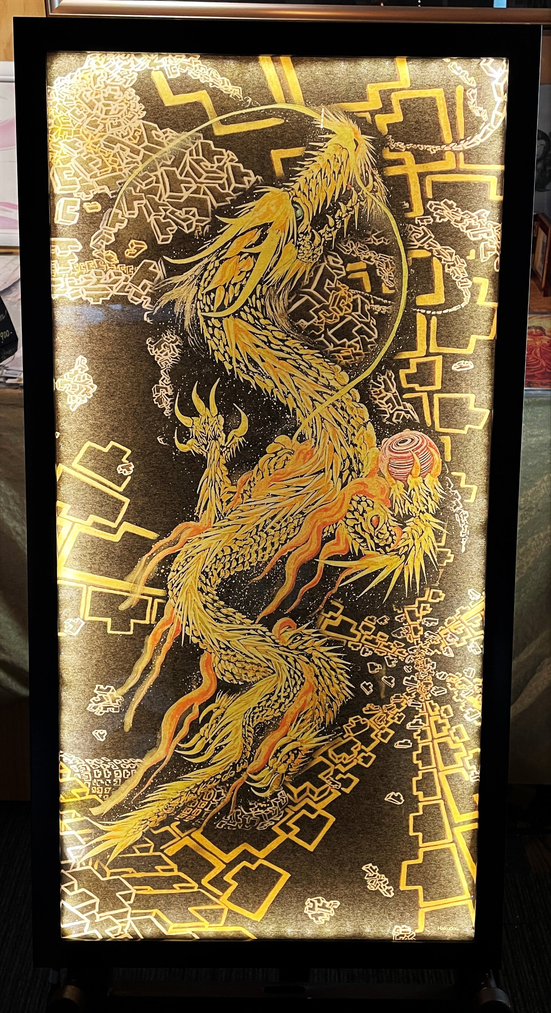 絵師白道 LEDで光る!!美濃和紙 Light UP BOX ART「凸凹Logic黄龍」/ Hakudouroom.ART